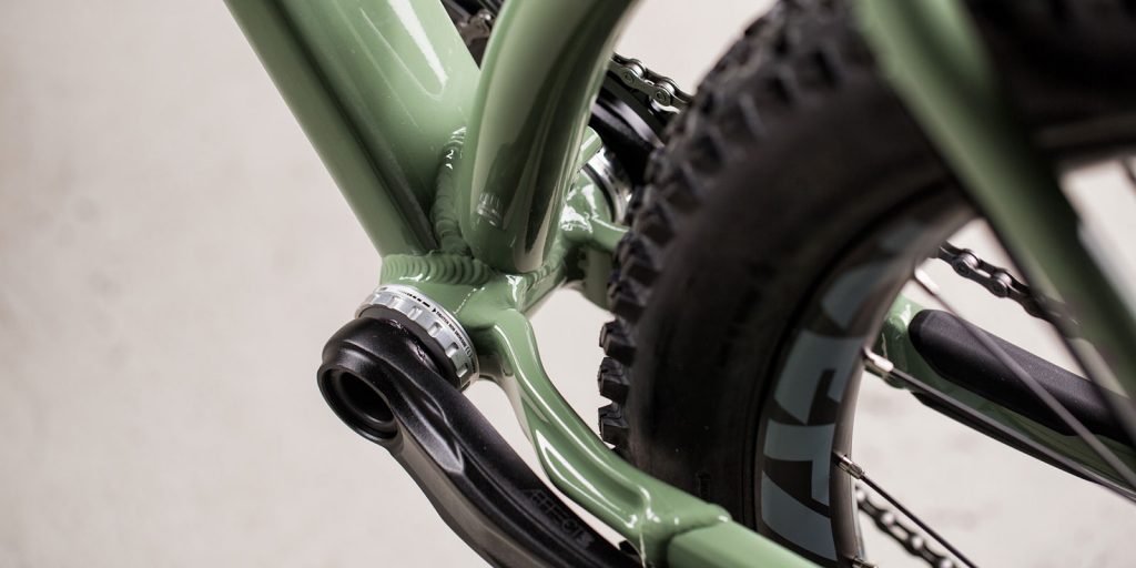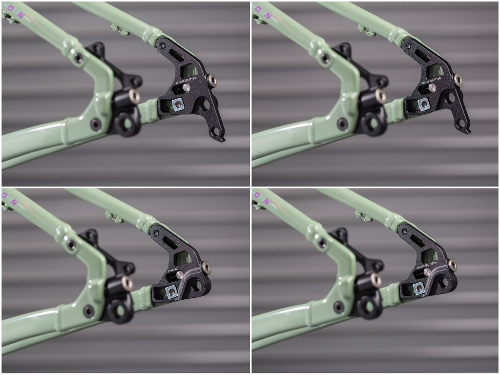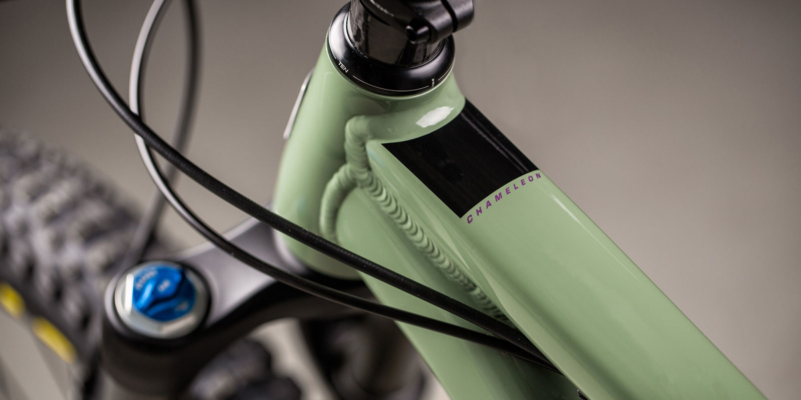 Le Chameleon se dote d’une compatibilité 27,5+ et 29 pouces, deux formats de roues particulièrement pertinents autour d’un cadre semi-rigide. A chaque pilote de faire son choix, selon son feeling et ses priorités. Dans tous les cas, le franchissement, le grip et même le confort, si relatif soit-il en l’absence d’amortisseur, en sortent améliorés. Le cadre accepte des pneus de 27,5 x 3,00. Les pattes interchangeables permettent toujours aux fans de singlespeed d’envisager ce Chameleon. En singlespeed, l’entraxe arrière mesure 142mm. Il passe en Boost (148mm) en configuration multi-vitesses. La géométrie est conservée grâce aux différentes pattes, que l’on utilise des roues de 27,5+ ou 29″.