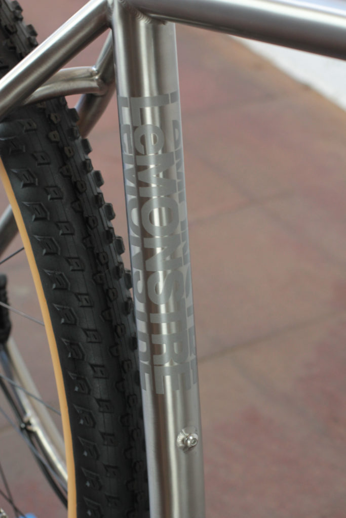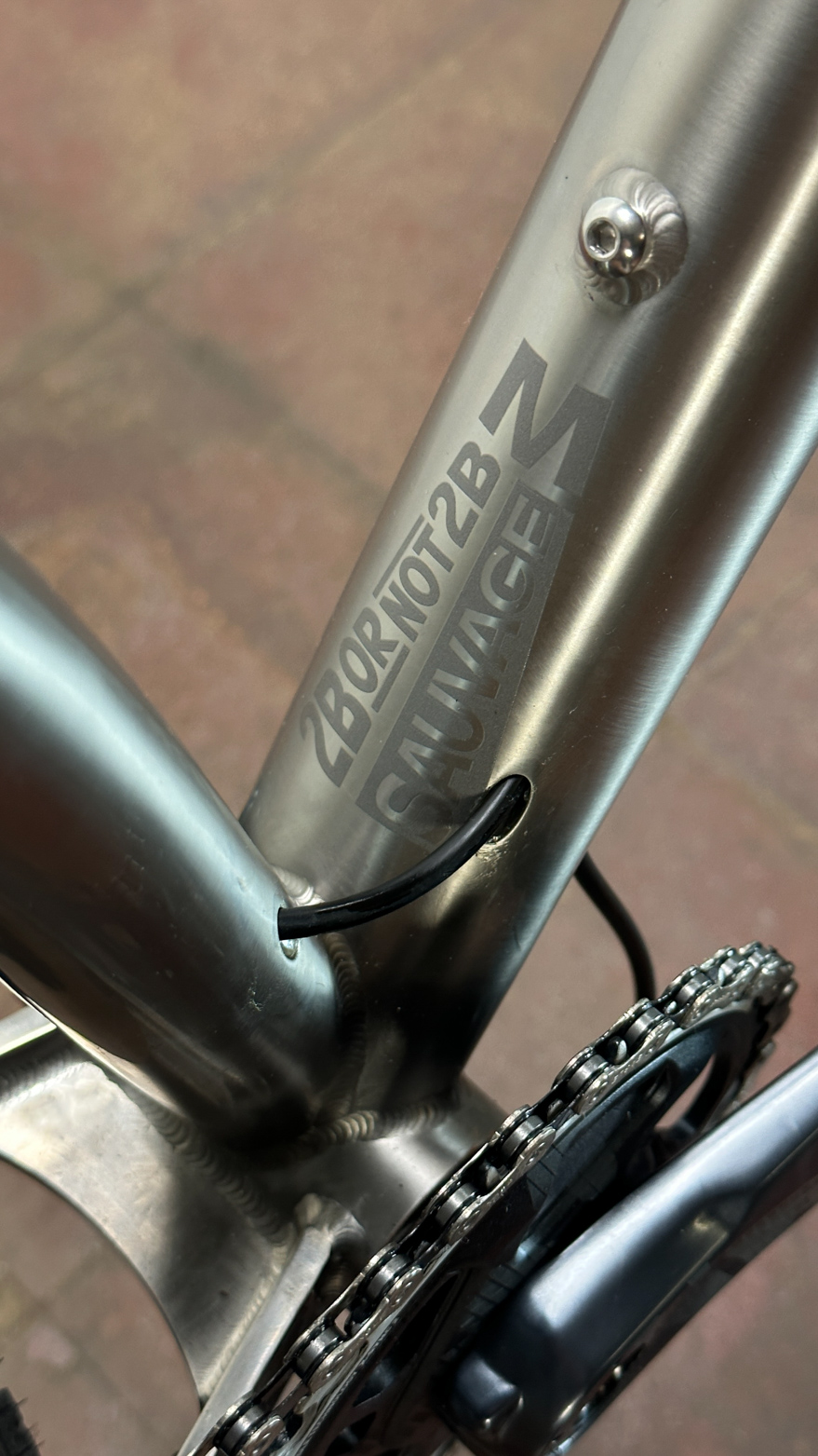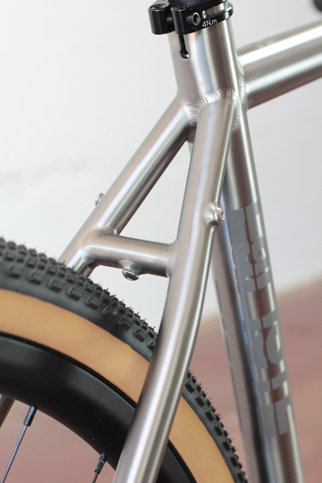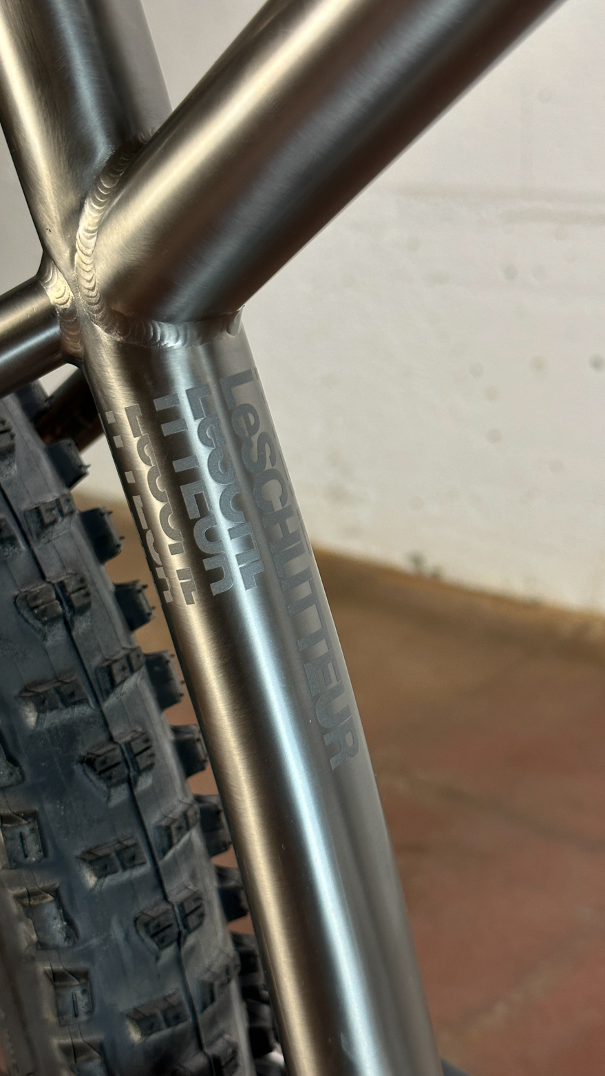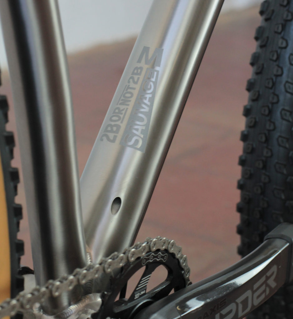 Au-delà des soudures particulièrement jolies de ce cadre en titane, une attention particulière a été portée aux détails et finitions. Sauvage explique que ceux-ci sont directement gravés au sein du cadre. Si une tige de selle fixe en 31.6 mm est prévue sur ce LaPiste, la marque française explique que pour les utilisations plus radicales, un passage interne pour une tige de selle télescopique peut également être demandé par le client.