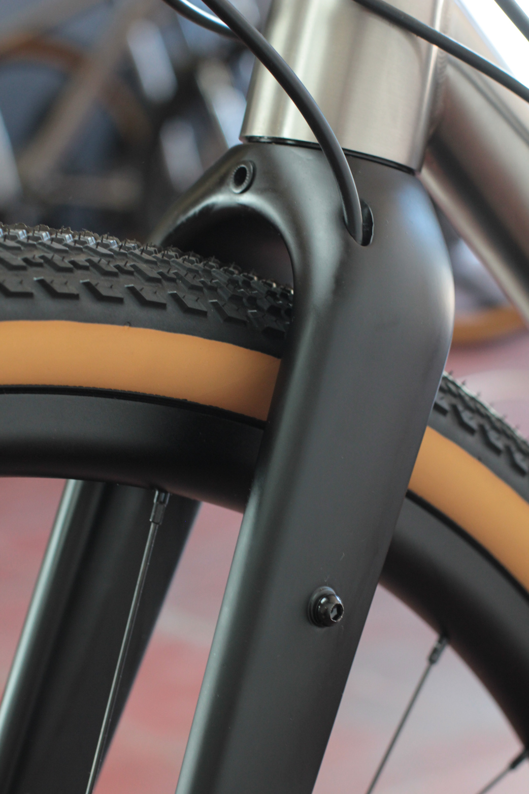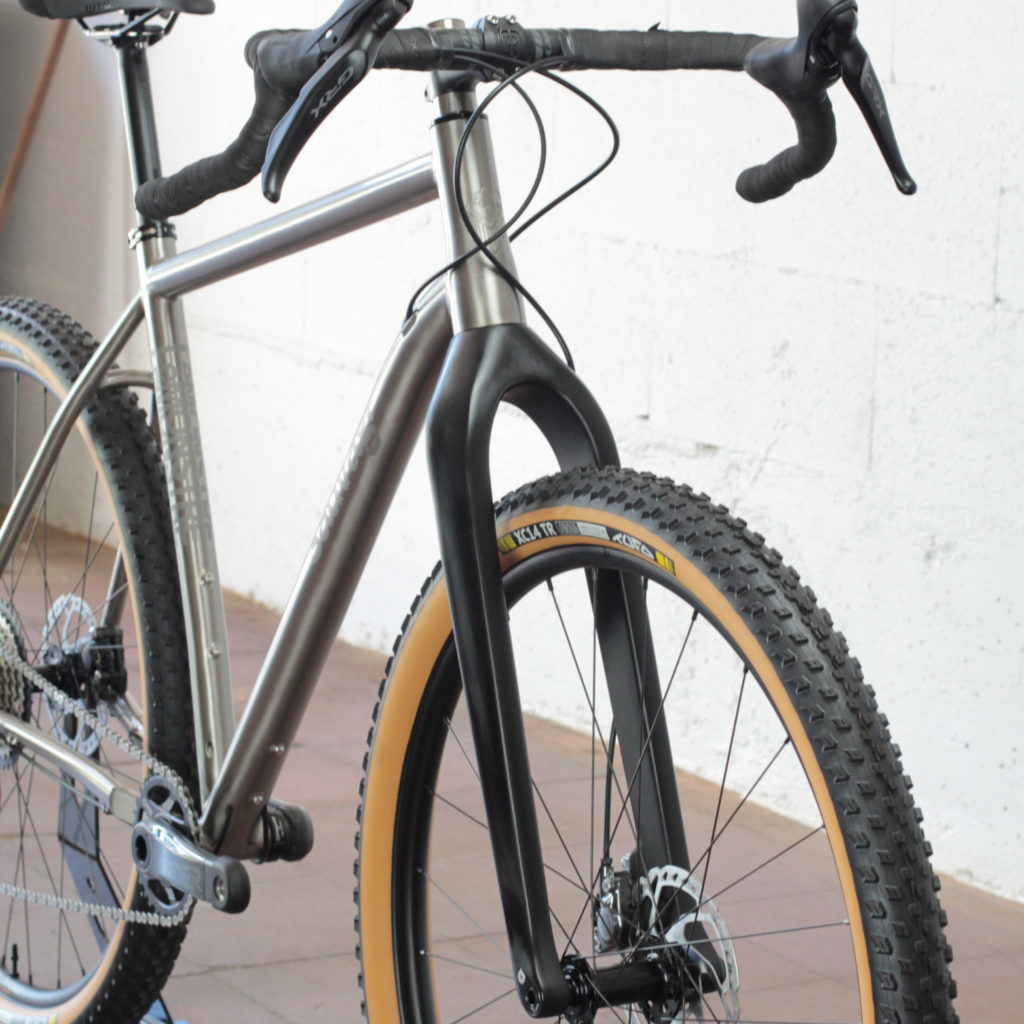 Sauvage propose une fourche tout en carbone propre à la marque et dénommée « 88 Aventure ». Annoncée à 510 g, elle est équipée d’oeillets de montage afin d’accueillir divers accessoires de bike-packing. Afin de connecter un moyeu dynamo, un passage interne est également prévu au sur cette fourche.