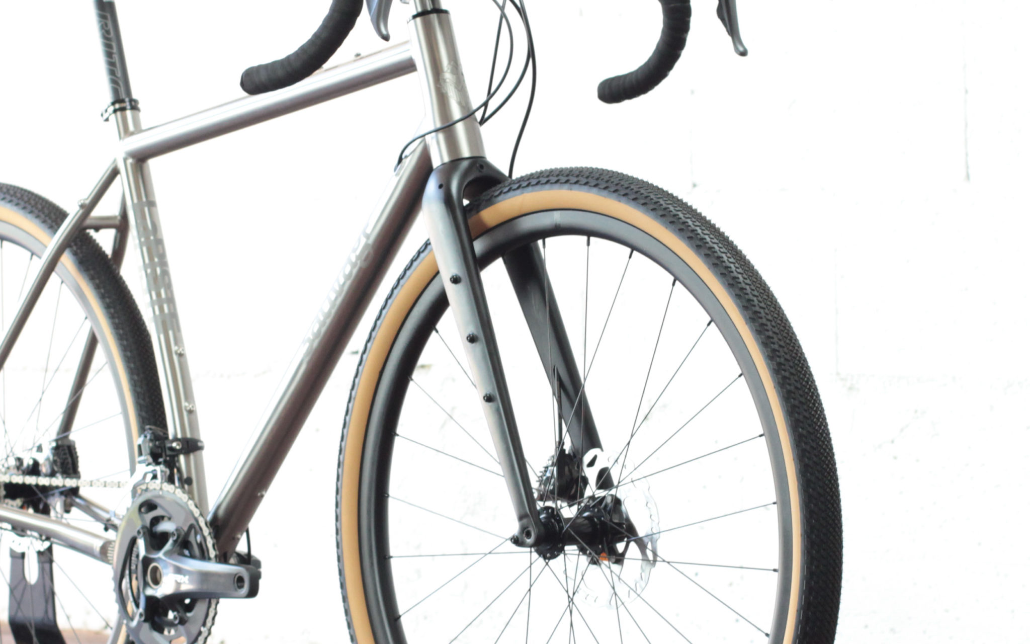 Polyvalence est le maître mot de ce modèle destiné à s’épanouir tant sur le bitume que durant des aventures gravel. Le cadre, en titane évidemment, affiche un poids de 1 690 g (en taille 53). Nous avions déjà eu l’occasion de l’essayer et il nous avait plutôt convaincus : Test | Sauvage La Piste : gravel, titane et anti-conformiste
