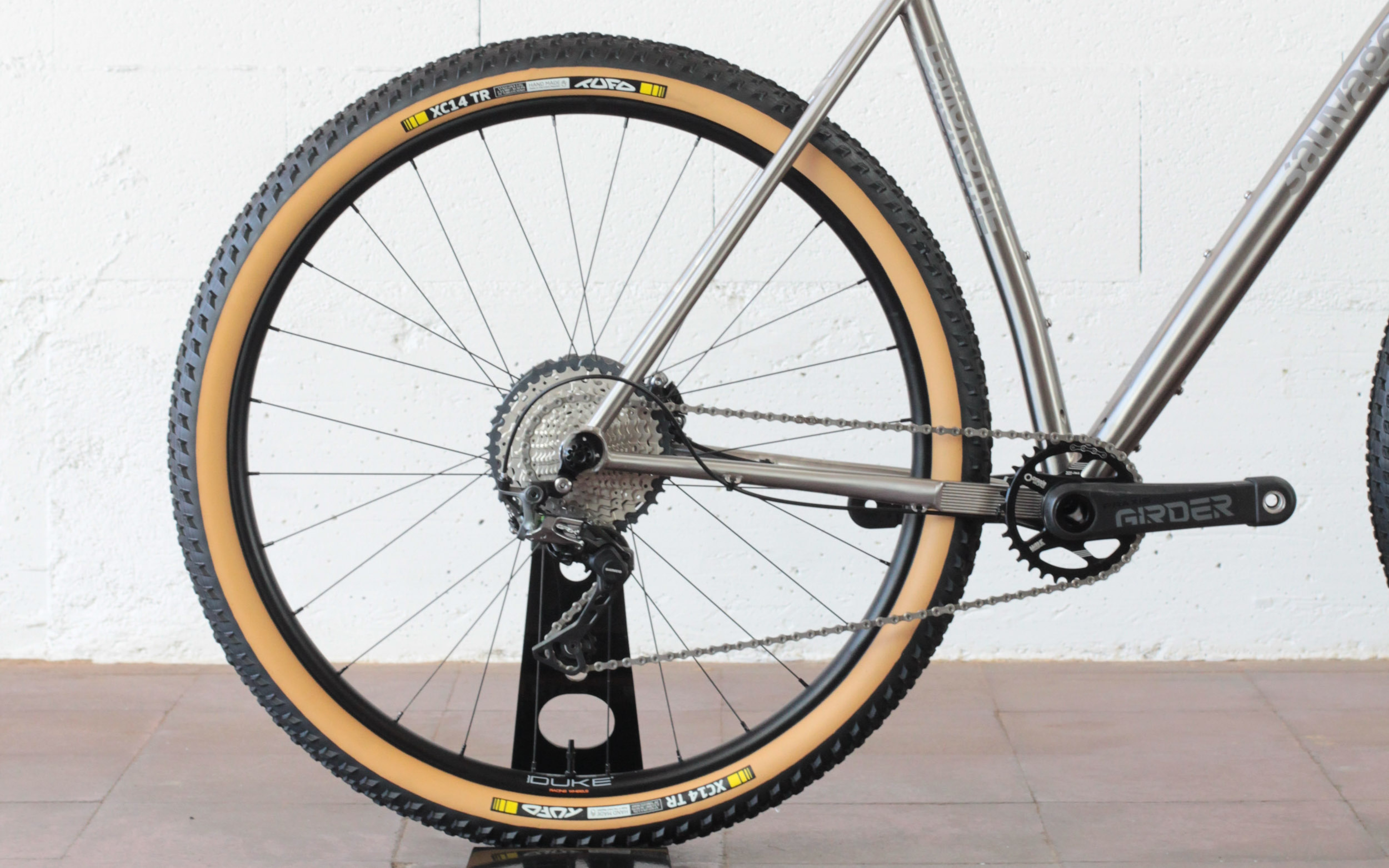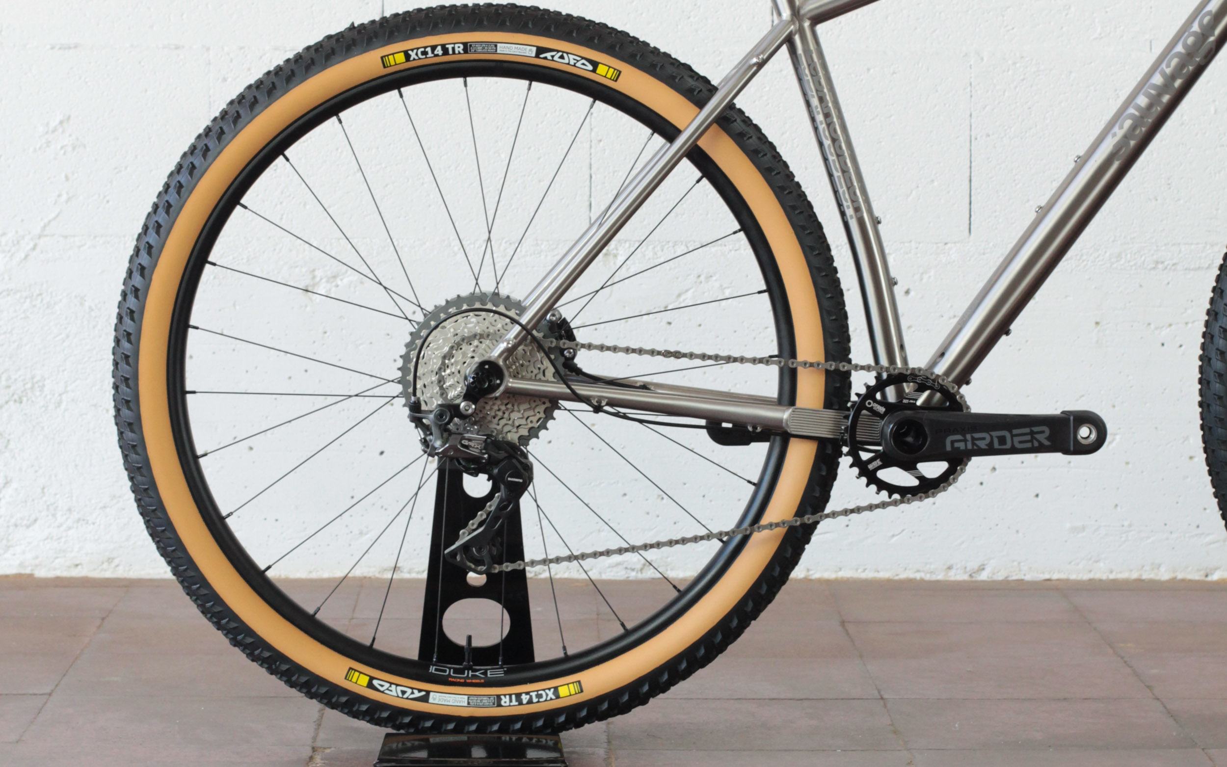 Les roues, sur base de jantes Duke Lucky Star et moyeux Bitex, sont chaussées de pneus Tufo au choix lors de la commande. La conception du cadre couplé au format « boost » de l’axe arrière permet l’adaptation de pneus en 29 x 2.4 ou 27.5 x 2.8 maximum. Les différents périphériques sont finalement en provenance de chez Ritchey.