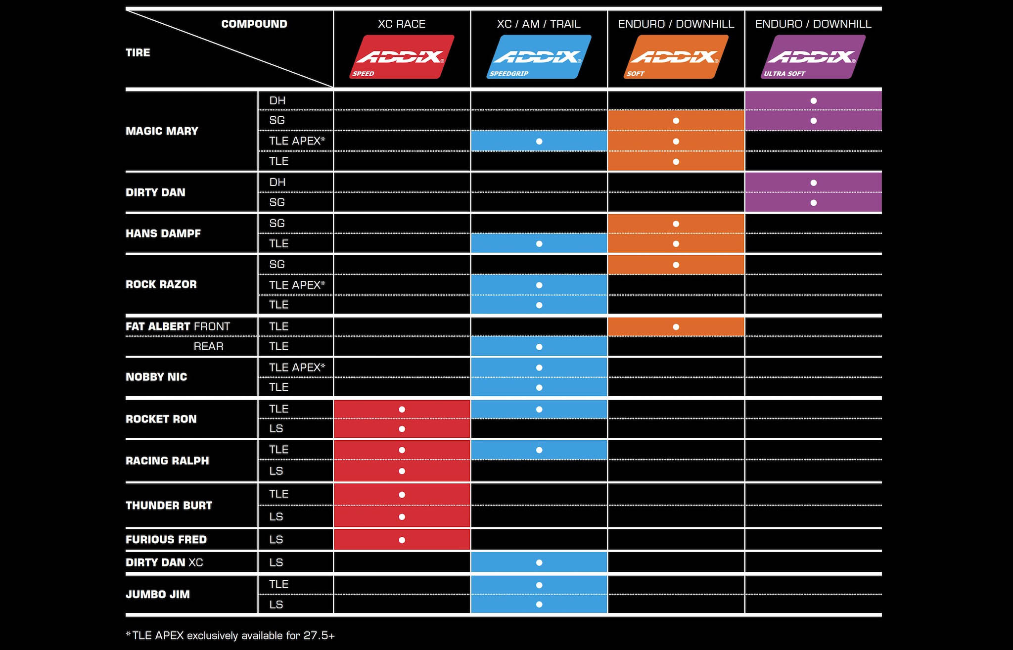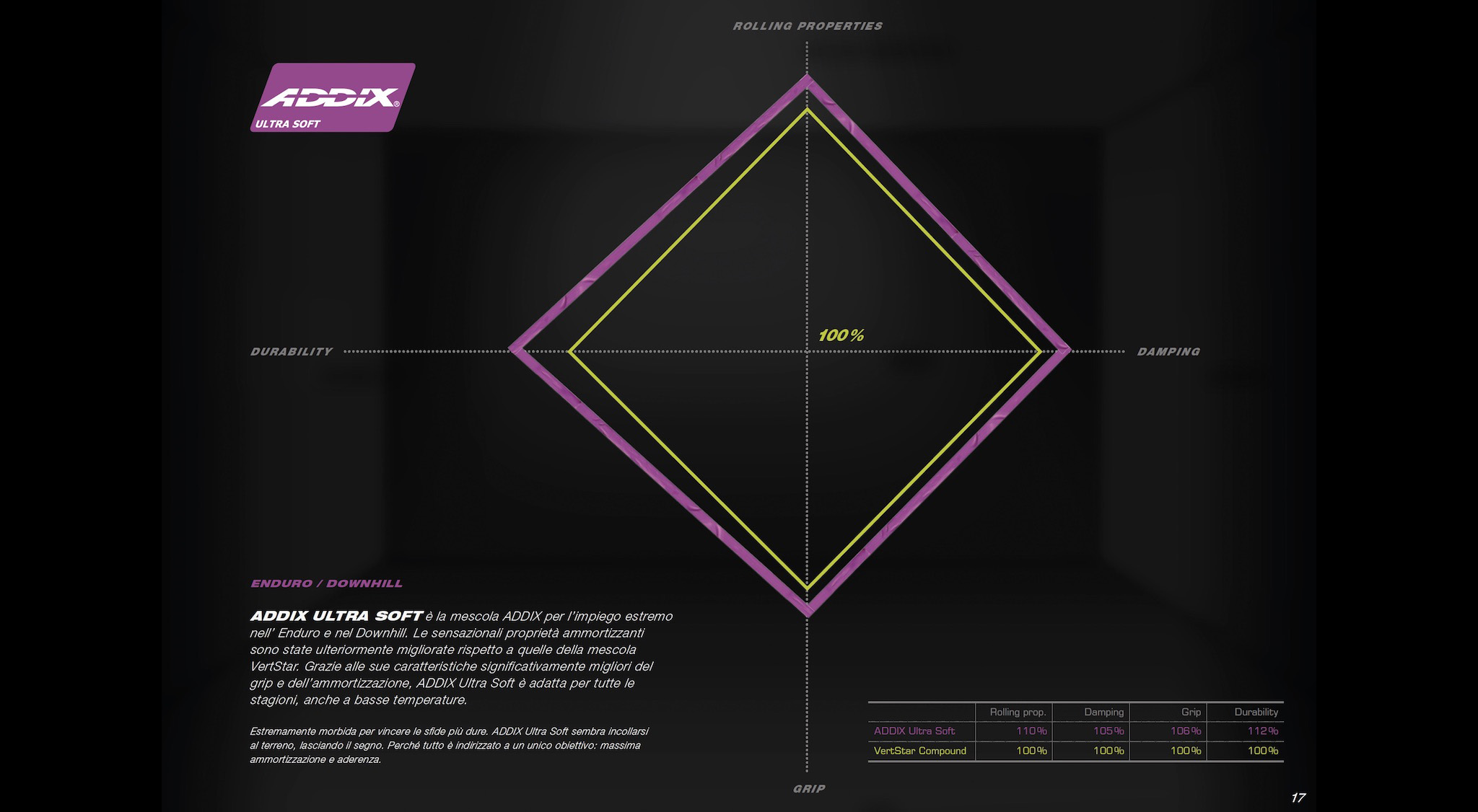 Enfin, la gomme Addix Ultrasoft (violet) va encore plus loin dans les disciplines gravity et dépasse les performances des enveloppes Vertstar actuelles.