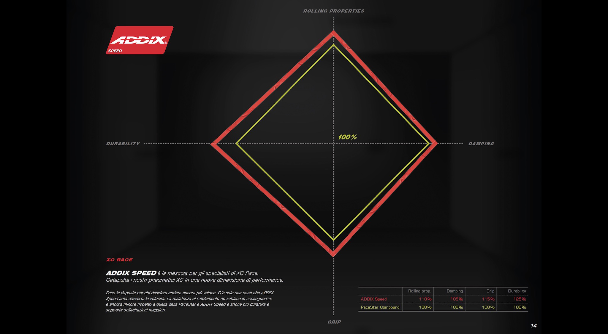 Ce premier essai concerne le Nobby Nic, dans les sections 2.60 et 2.80. Nos confrères ont noté un grip de grande qualité en version Speedgrip. Ils ont aussi apprécié le comportement du pneu et sa déformation « maîtrisée ». Sans parler d’une révolution, l’avantage par rapport à la gomme Pacestar semble clair. Le pneu donne davantage confiance, même sur roches humides. En terrain sec, les testeurs se sont régalés avec ces modèles à grand volume, ne touchant les freins qu’au dernier moment avant les virages. On peut imaginer que les versions Soft et Ultrasoft vont littéralement coller le vélo au sol ! La gomme Addix et ses quatre variations sont attendues dans les magasins pour début juin.