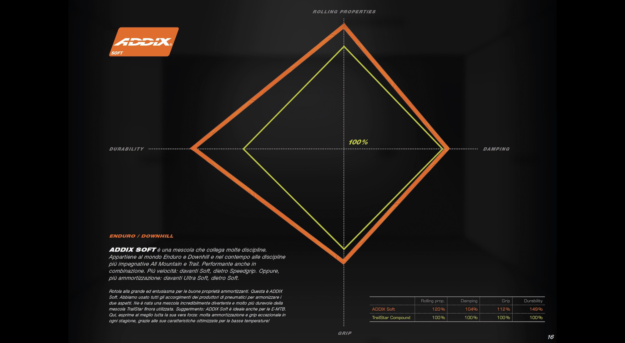 Destinée à l’enduro et la descente, la déclinaison Addix Soft (orange) est plutôt comparée à la gomme Trailstar.