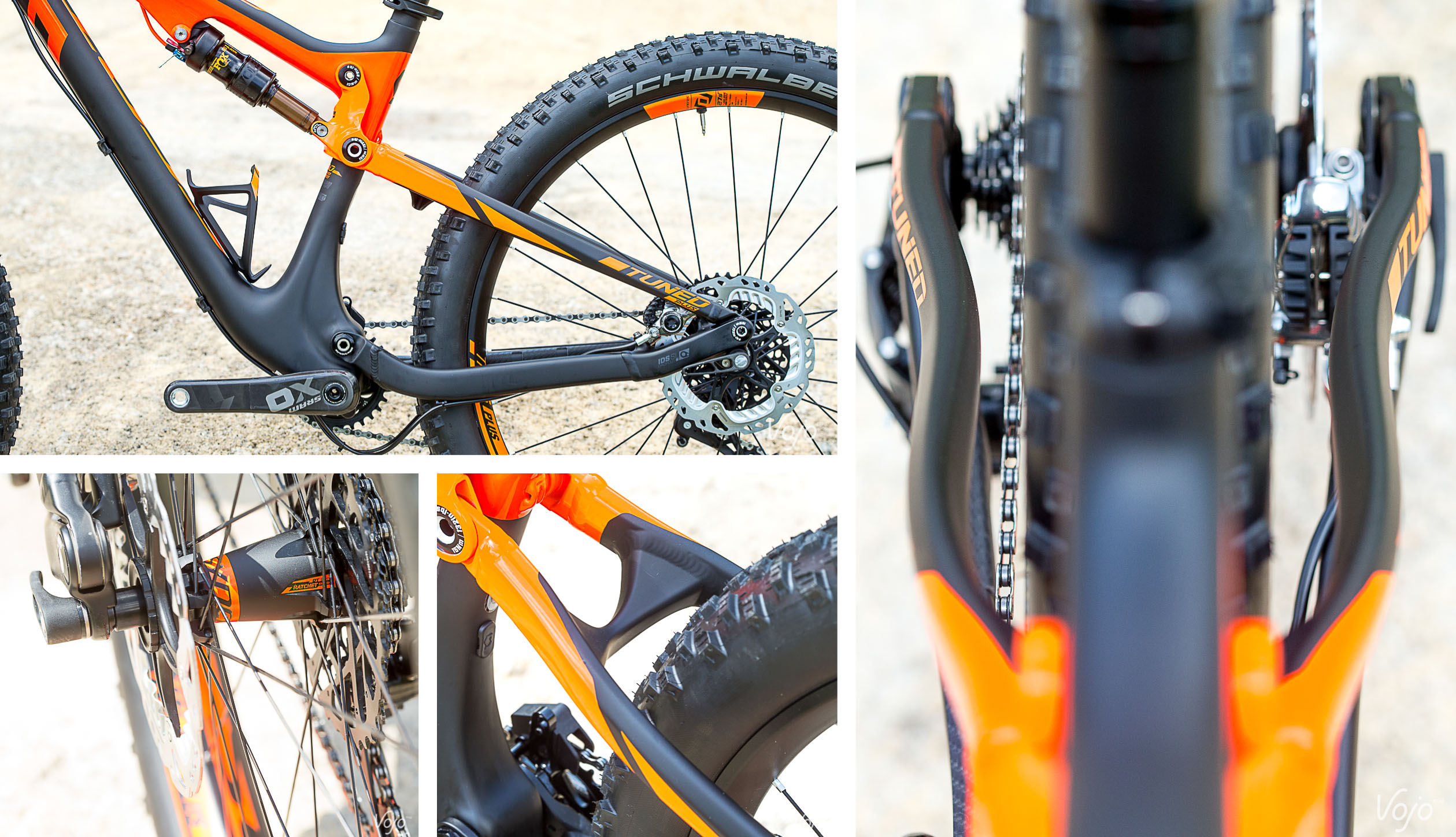 Le Genius Plus reprend le même triangle avant que le Genius 900 (en 29 »), en carbone sur les deux modèles haut de gamme, et en aluminium sur le modèle d’accès. Il offre 130mm de débattement arrière et 140mm à l’avant.