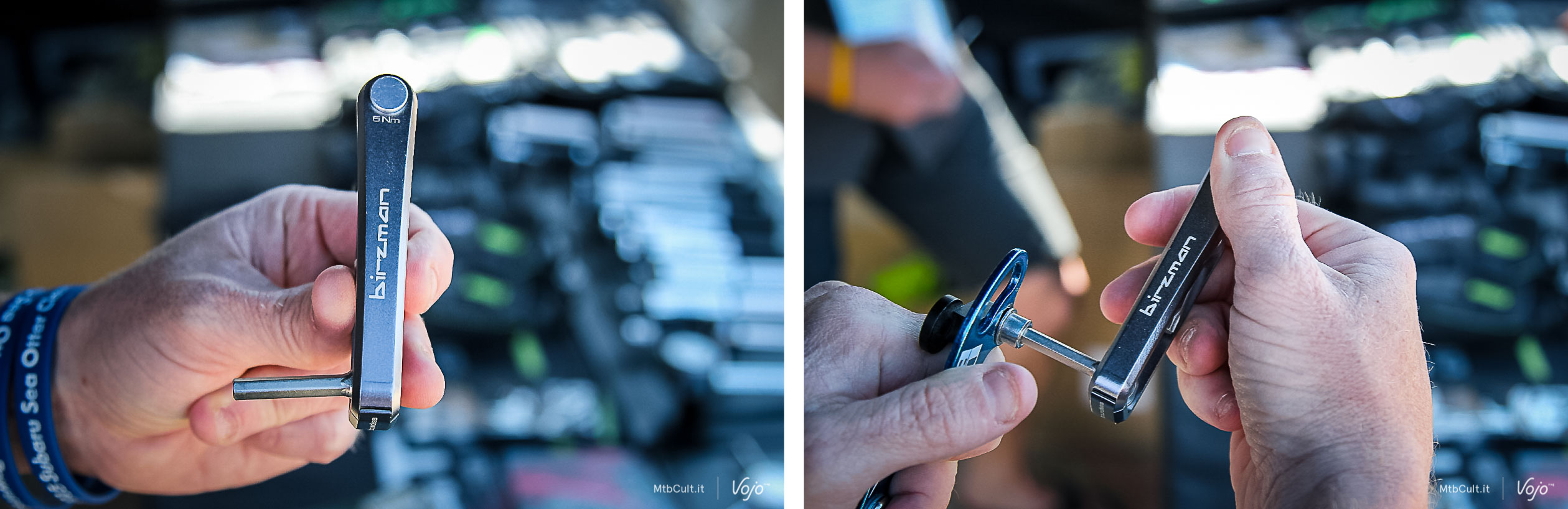 La marque au design très léché, Birzman, nous a montré un nouvel outil compact particulièrement intéressant. Il s’agit en fait d’une clé dynamométrique de poche calibrée à 5Nm. L’idéal pour pouvoir faire ses réglages sur le terrain, surtout quand on dispose de composants carbone qui supportent très mal tout excès de force ! Encore à l’état de prototype, il comprend actuellement des clés Allen de 4 et 5mm, ainsi qu’une Torx T25.