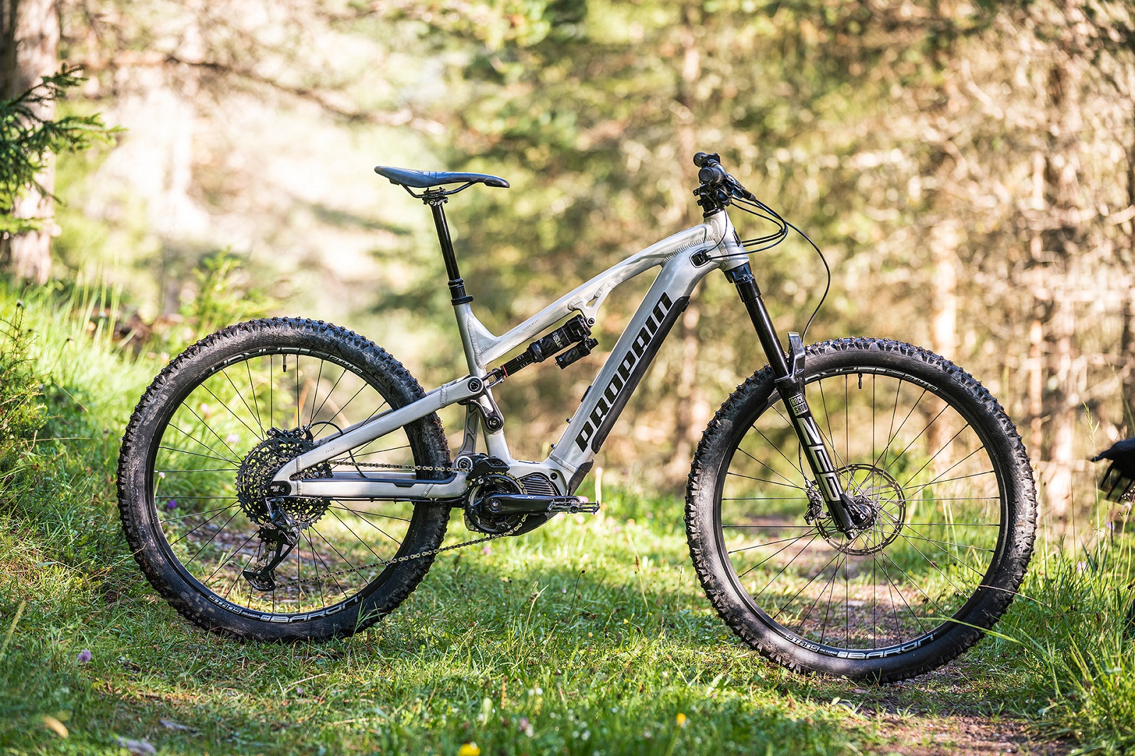 Les allemands de Propain présentent également une version mise à jour de l’Ekano, leur e-bike en 165/170 mm, taille de roues aux choix (29/29, 27,5/27,5 ou 27,5/29) et batterie 504 Wh. La géométrie ne change pas mais le vélo tire parti du format plus compact de l’EP8 par rapport au Steps e8000 pour afficher de nouvelles lignes autour du berceau moteur, mieux intégré au reste du cadre et moins massif.