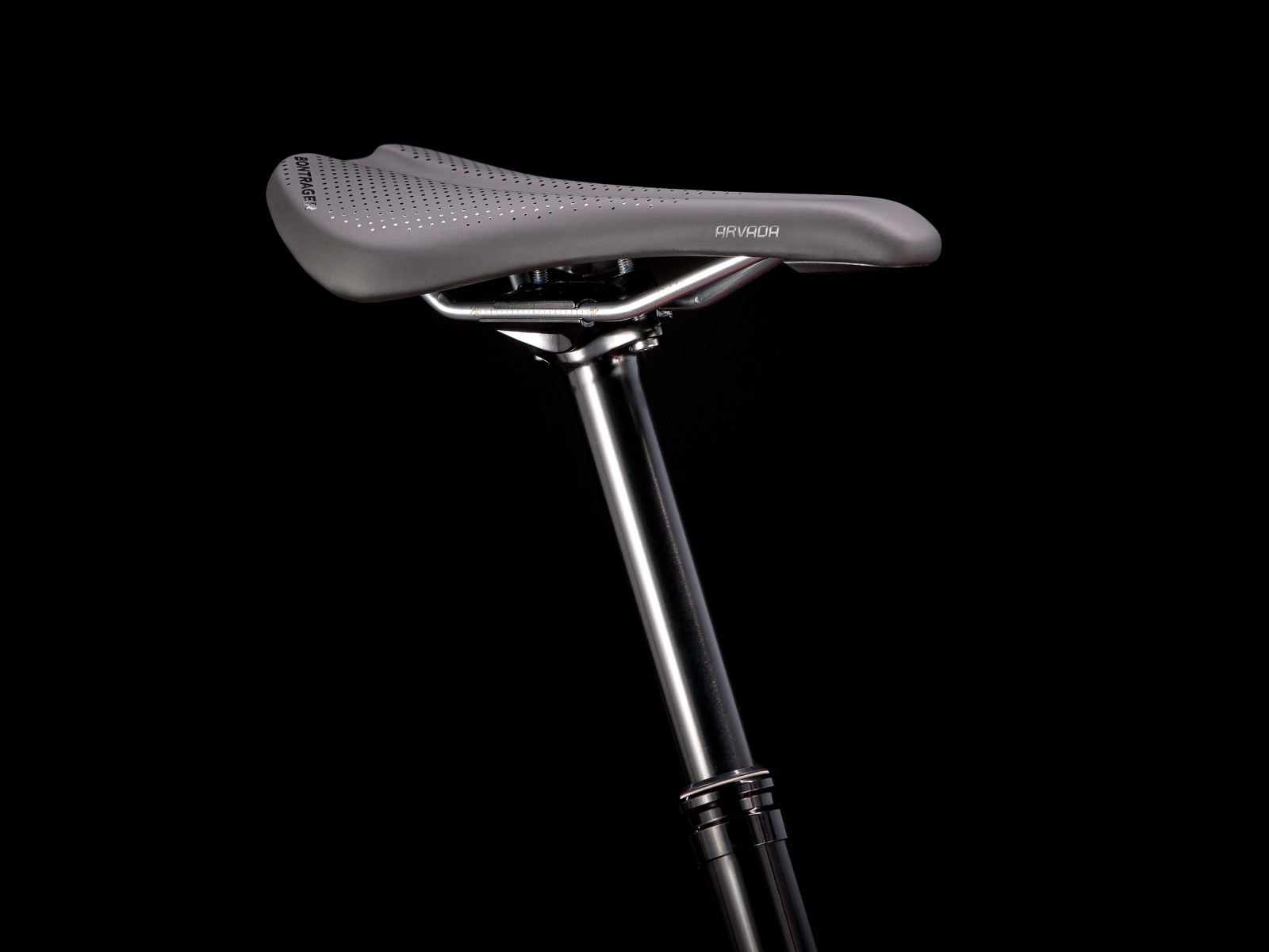 Enfin, en ce qui concerne les standards on note le passage à un tube de selle en 34,9 mm de diamètre (31,6 mm sur l’ancien modèle) pour accueillir une tige de selle télescopique Bontrager revue, rigidifiée et dotée d’une nouvelle cartouche pour un fonctionnement plus rapide, tandis que le boîtier de pédalier abandonne le pressfit pour du BSA 73 (vissé).