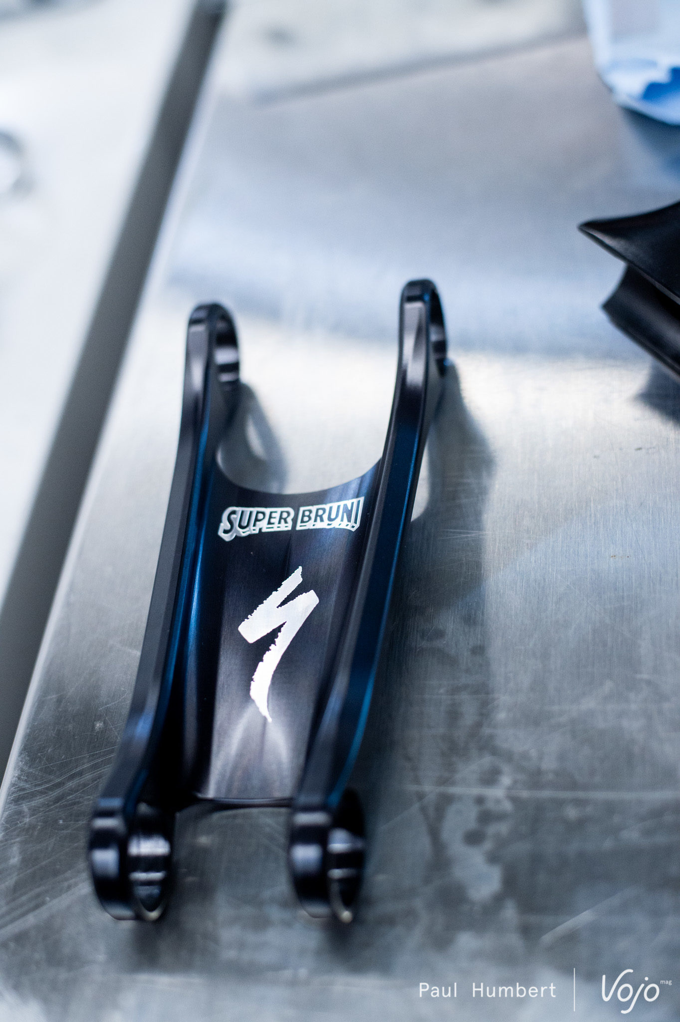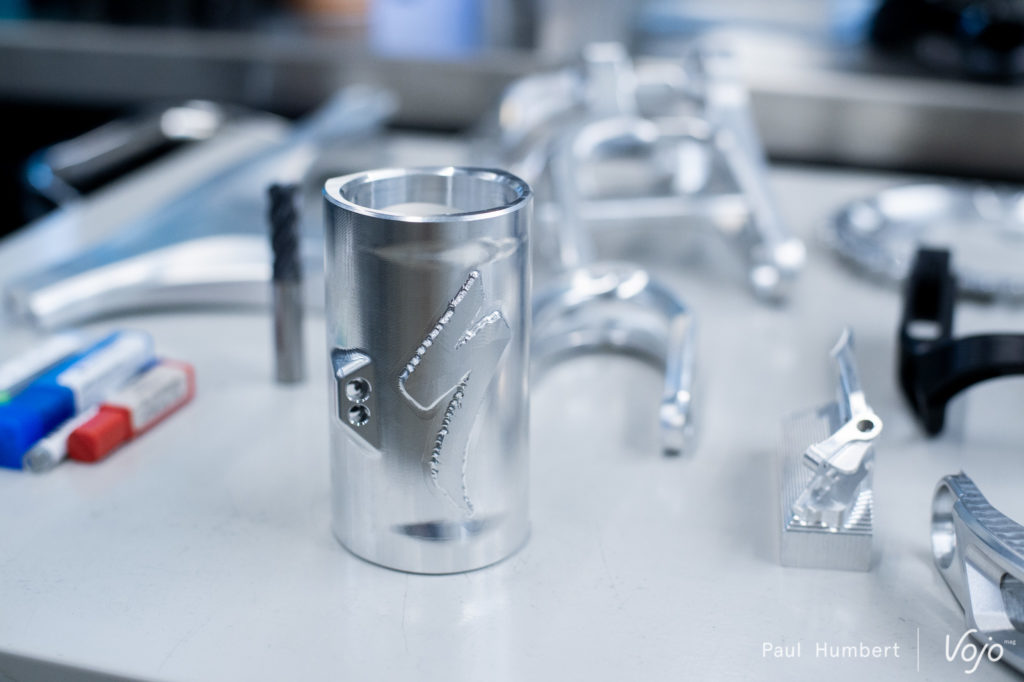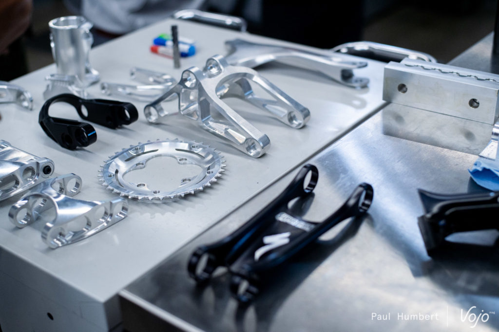 Au coeur des bureaux de Specialized, on retrouve une énorme machine de conception de pièces pour prototypage. On y repère également des pièces qui trouveront directement leur place sur les vélos de l’équipe.