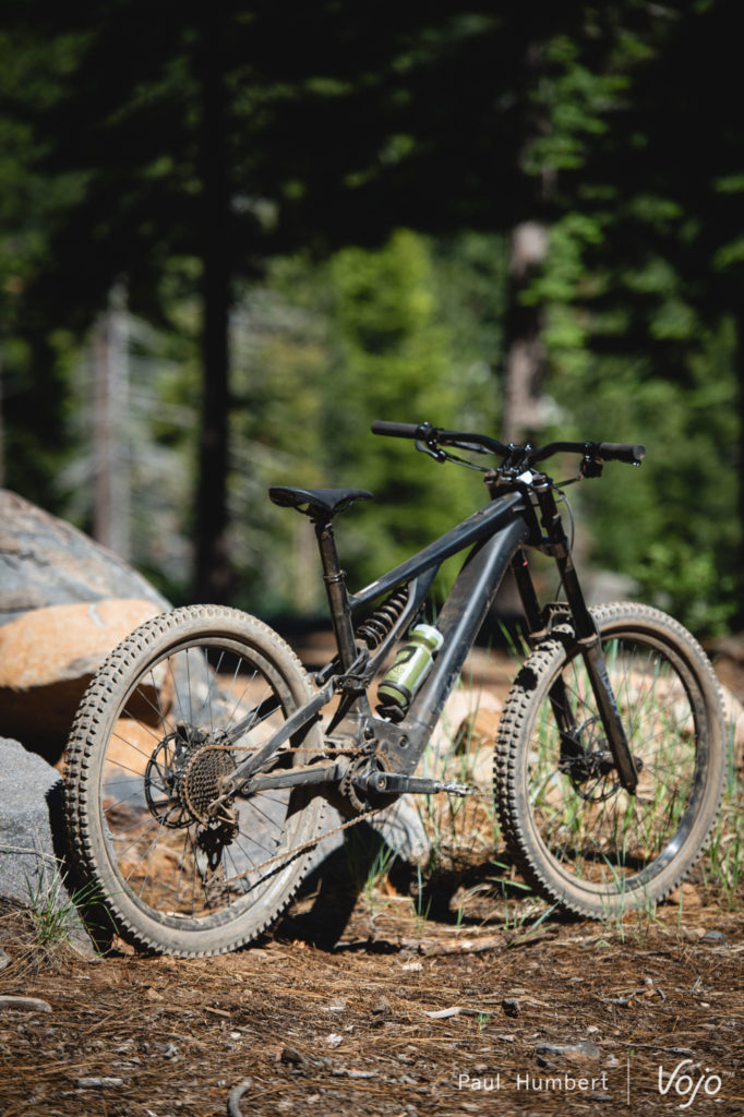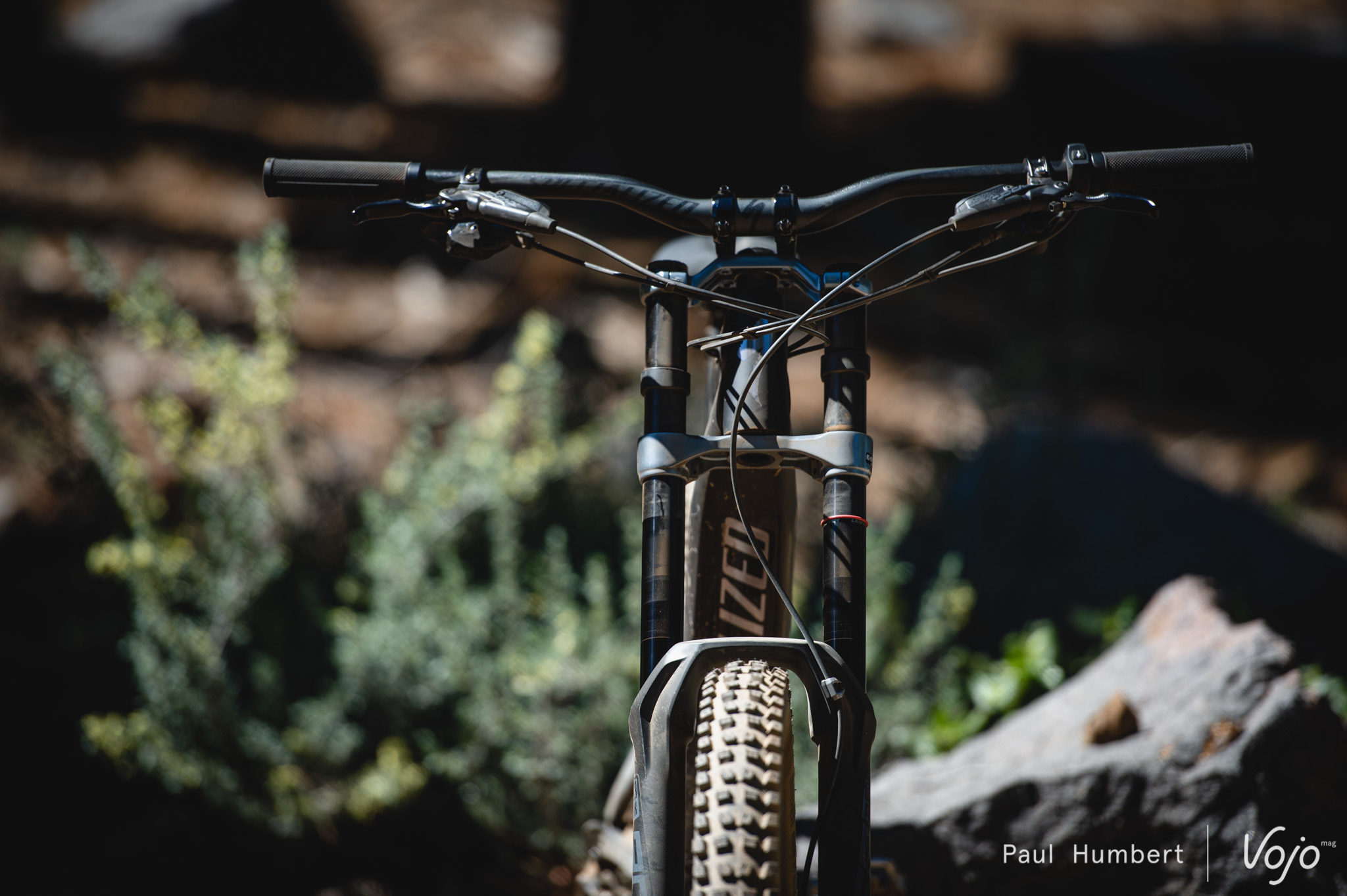 Specialized met une nouvelle fois en avant la notion « d’axle path » présentée avec le nouveau Demo puis l’Enduro qui met en avant le recul de la roue arrière dans les portions défoncées pour permettre au vélo de « s’allonger » plutôt que de « s’accrocher » dans les trous, ralentissant ainsi la machine et créant de l’inconfort.
