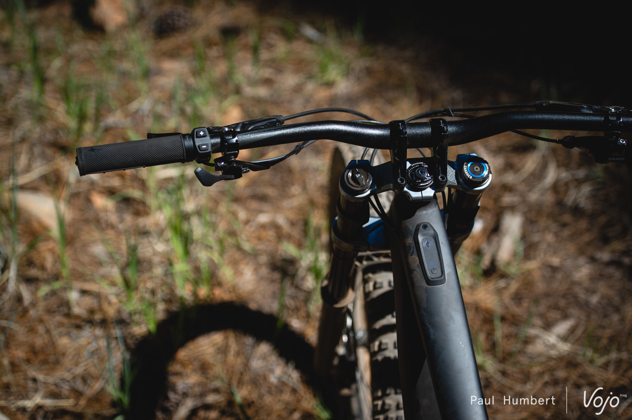 À l’instar de nombreux vélos de la catégorie, le Kenevo s’ouvre et s’allonge, tout en offrant un tube de selle un peu plus redressé. Et comme les autres gros vélos de la marque, Specialized passe au « S sizing » et s’affranchit des dénominations traditionnelles en ce qui concerne les tailles de ses cadres. Pour rappel, Specialized met en avant l’utilisation de tiges de selles à grand débattement qui permettent de conserver un tube de selle court pour toutes les tailles et d’augmenter le reach du vélo. L’utilisateur est ainsi amené à choisir une taille associée à ses préférences et à son style de pilotage, plutôt qu’à une « simple » hauteur de selle. Ce choix est intéressant mais n’est pas sans désavantages (on vous donne notre point de vue dans l’article consacré au Specialized Enduro 2020 : https://dev.vojomag.com/test-nouveaute-specialized-enduro-2020-retour-dans-la-bataille/ )