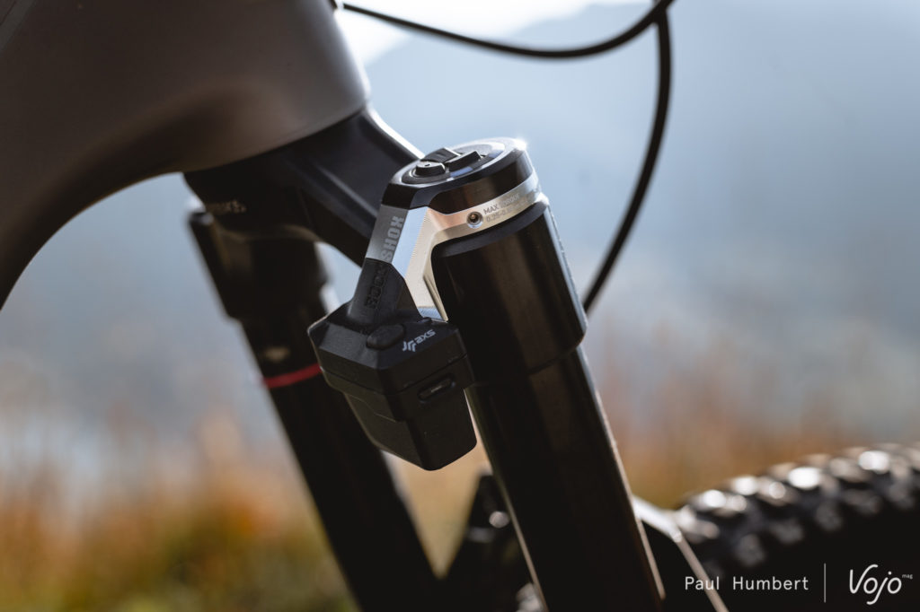 Pour rappel, le Flight Attendant est apparu sur le marché à l’automne 2021 sur les RockShox Pike, Lyrik et Zeb. Composé d’une unité centrale sur la fourche, d’un capteur dans le pédalier et d’une unité « satellite » sur l’amortisseur, le système est capable de passer de façon autonome la fourche et l’amortisseur en mode intermédiaire ou fermé suivant le profil du terrain, simultanément ou indépendamment. Par défaut les suspensions restent en mode ouvert, contrairement au Fox LiveValve qui avait défriché la voie des suspensions à gestion électronique. Pour plus de détails, on vous invite à relire notre article publié à sa sortie : Test nouveauté | RockShox Flight Attendant : autorisation de décoller ?