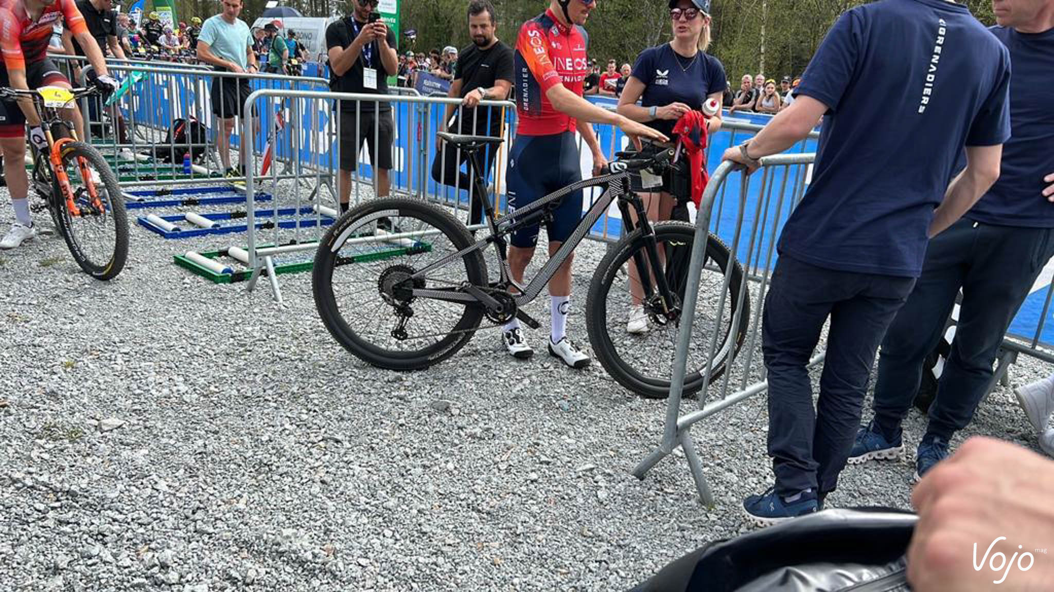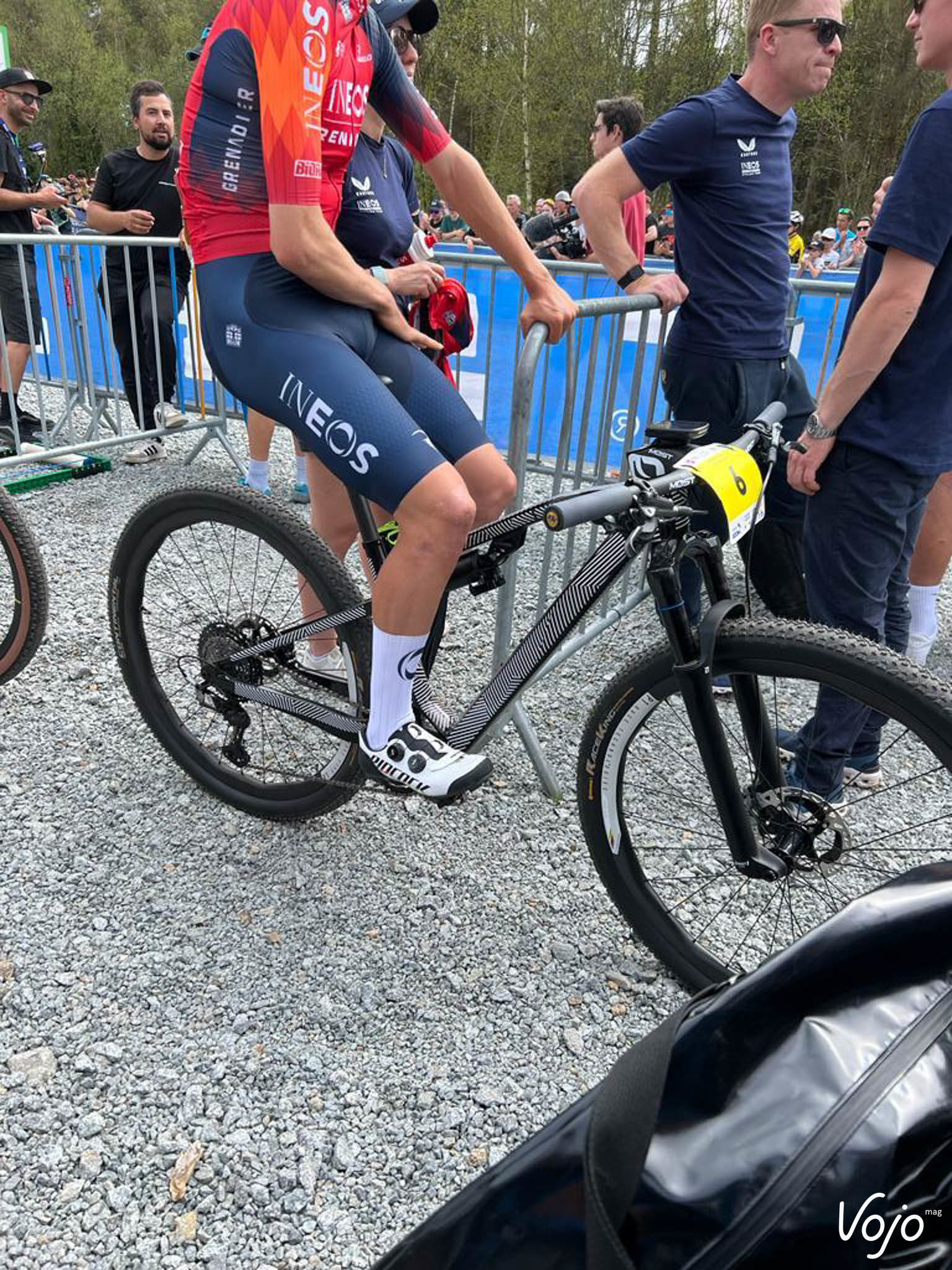 Enfin des réponses ! Cela faisait plusieurs mois qu’on se demandait sur quels vélos allaient rouler Tom Pidcock et Pauline Ferrand-Prévot, passée chez Ineos cet hiver, pour la saison 2023. Les années passées, le pilote britannique courait sur un BMC Fourstroke débadgé mais cette année, des rumeurs faisaient état d’un prototype Pinarello. Ce week-end, les deux pilotes font leur « rentrée » sur le VTT à l’occasion de la deuxième manche de la coupe de France, à Guéret, et on a pu apercevoir leur monture ! Voici les premières images :