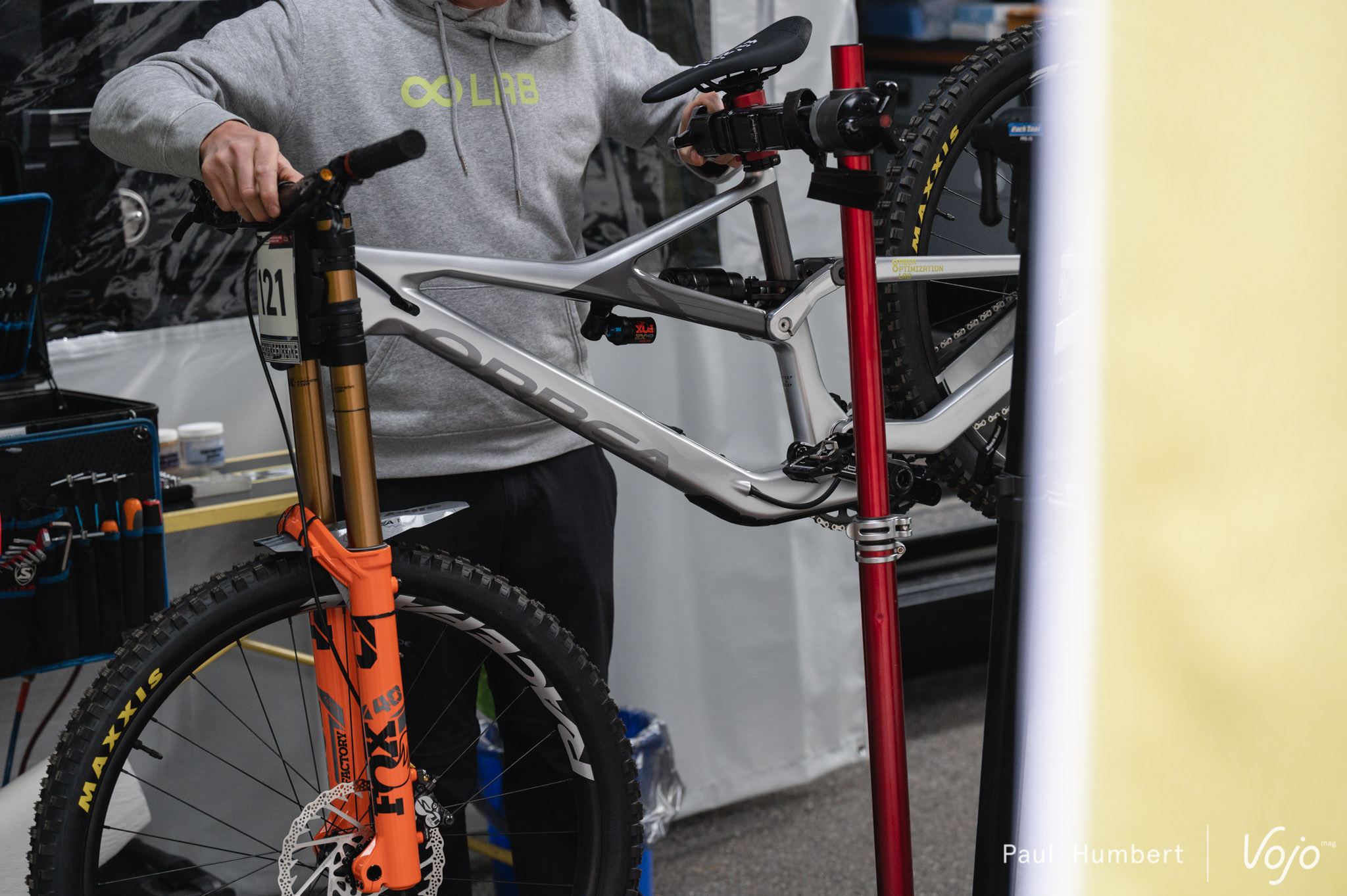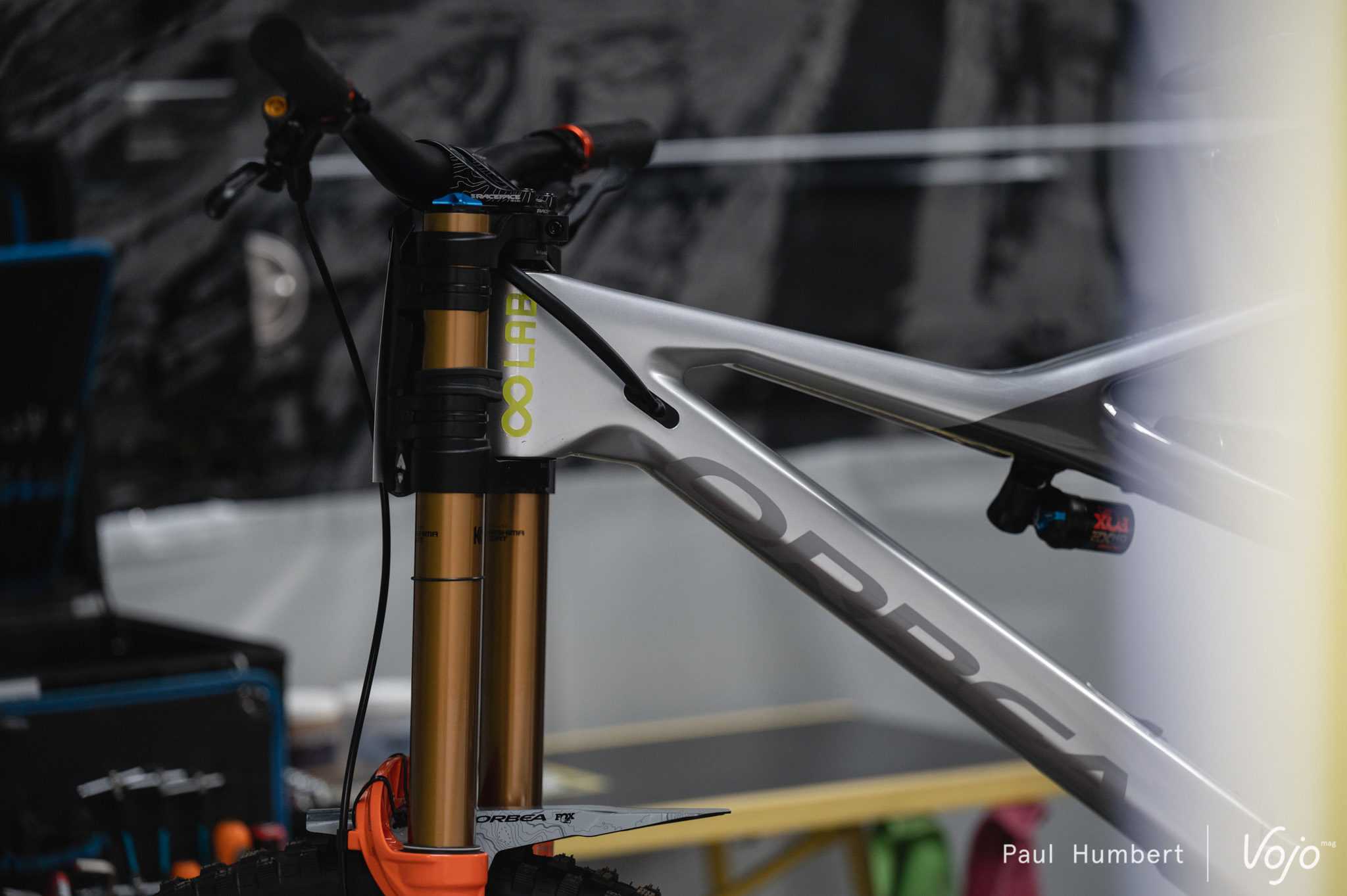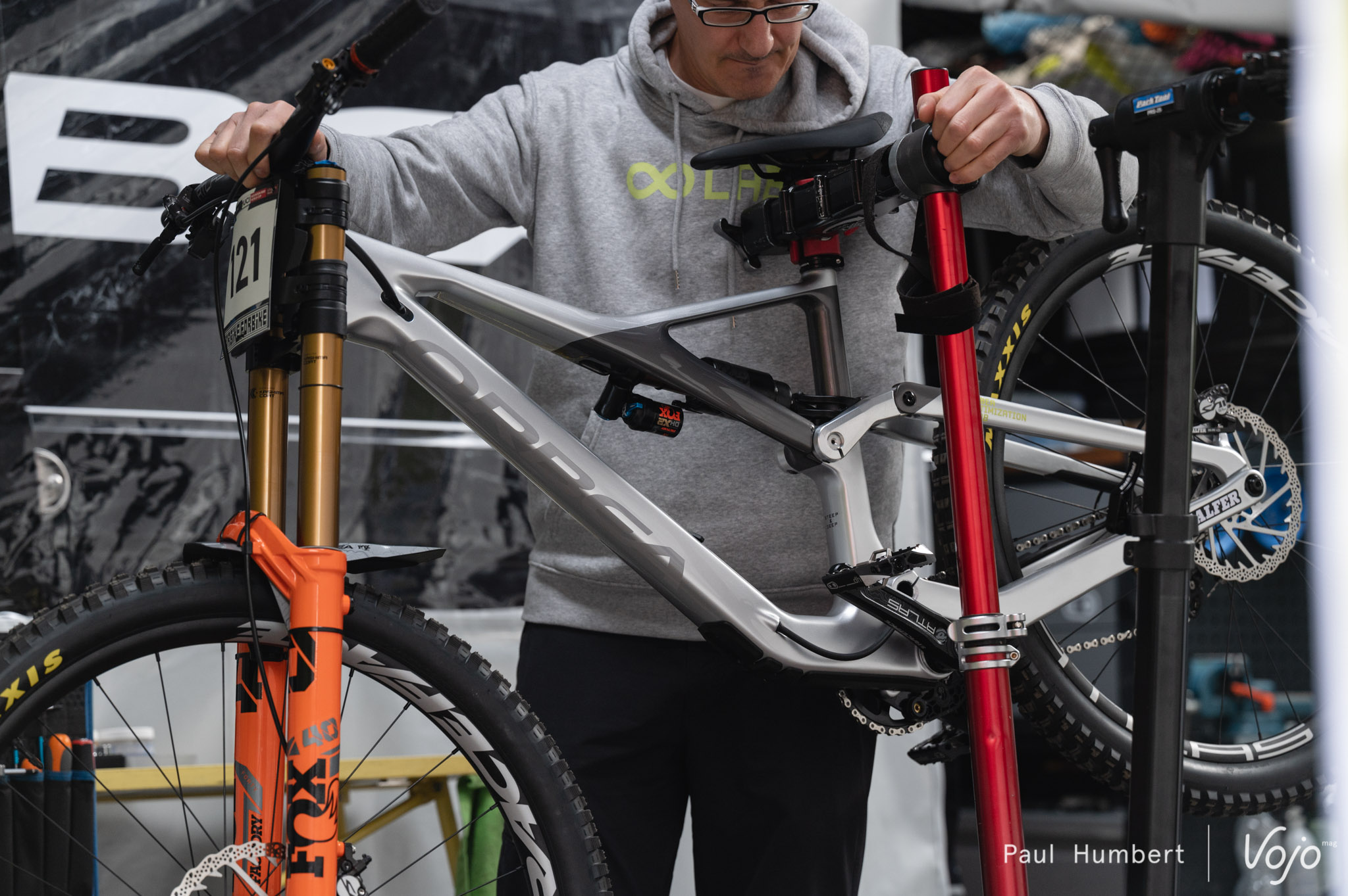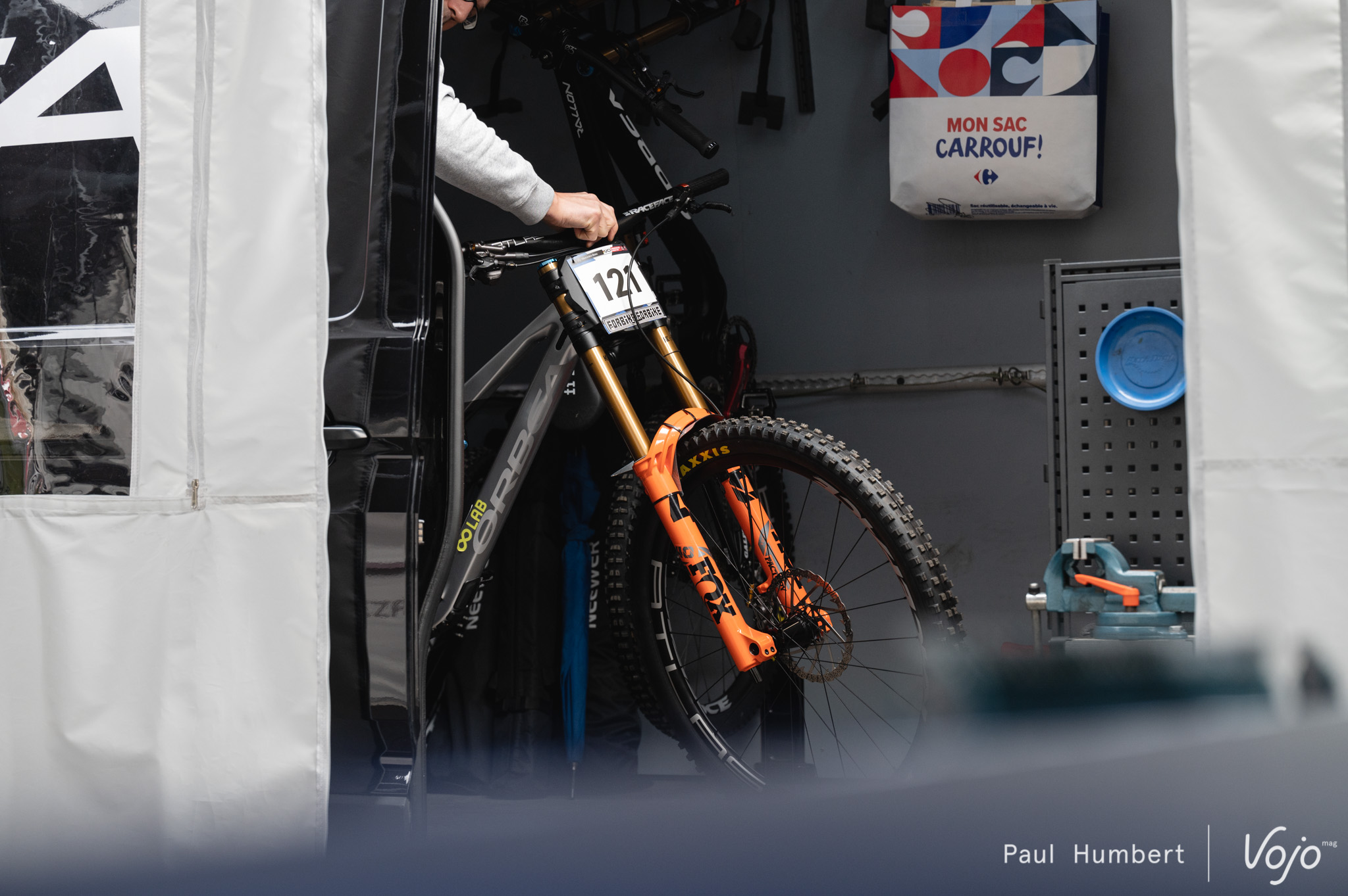 Jusque-là, il n’y avait rien de concret, mais en arrivant sur la coupe de monde DH de Lourdes, nous avons découvert le nom de Martin Maes dans la liste des partants et un stand « OO Lab » dans les paddocks avec, à l’intérieur, un Rallon transformé en vélo de descente !