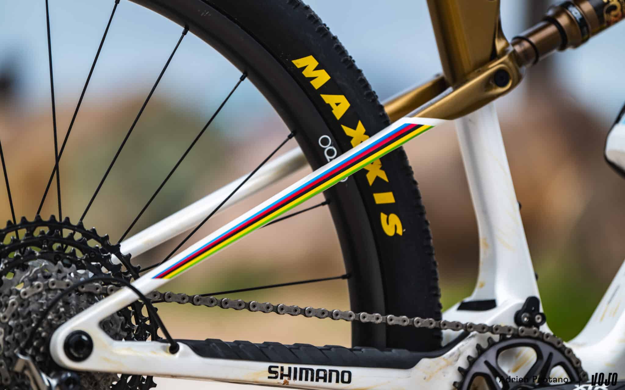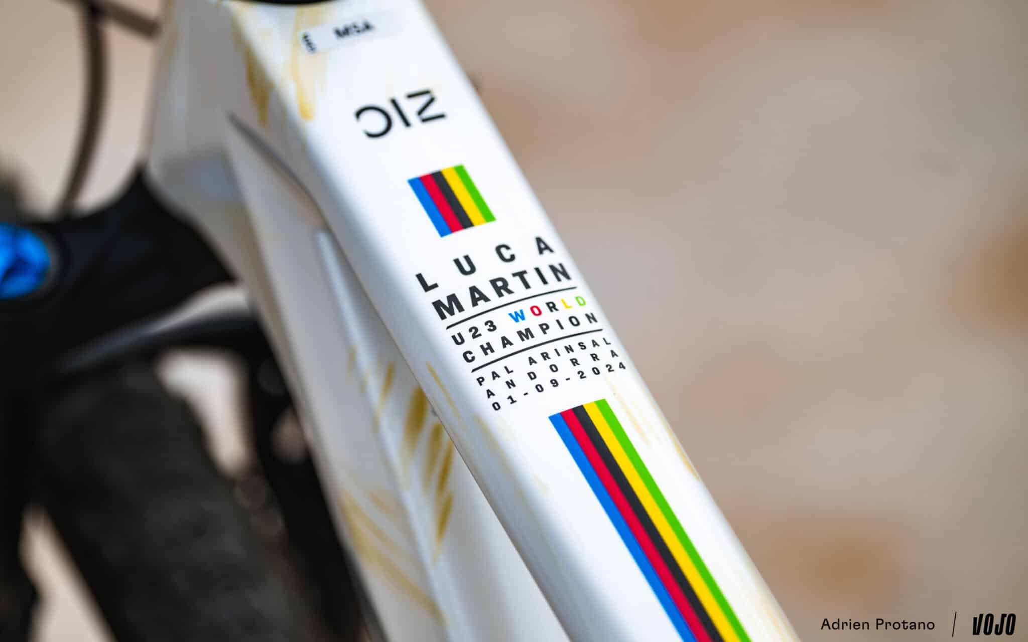 Couronné champion du monde de cross-country olympique U23 en septembre dernier à Pal Arinsal, l’Orbea Oiz du Français Luca Martin avait ensuite reçu une magnifique livrée en hommage à son titre mondial, comme d’accoutumée désormais pour les pilotes obtenant le fameux maillot irisé. Rappelez-vous, c’est à son guidon que le pilote de l’Orbea Factory Team s’est aligné sur les deux dernières manches de la saison lors de la tournée nord-américaine.