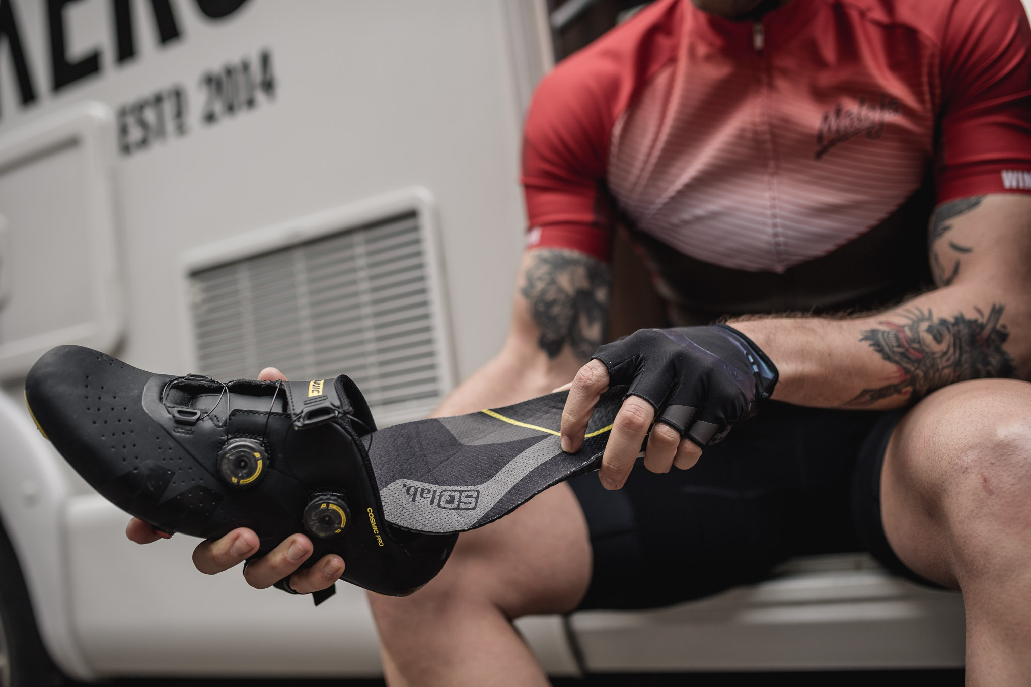 SQ Lab se concentre sur les points de contact de manière générale, on retrouve donc au catalogue des selles, des poignées et des cintres, mais aussi des cuissards (à la peau de chamois particulièrement dense et dure, pour ne pas s’affaisser sur les longues sorties), des pédales et des semelles.