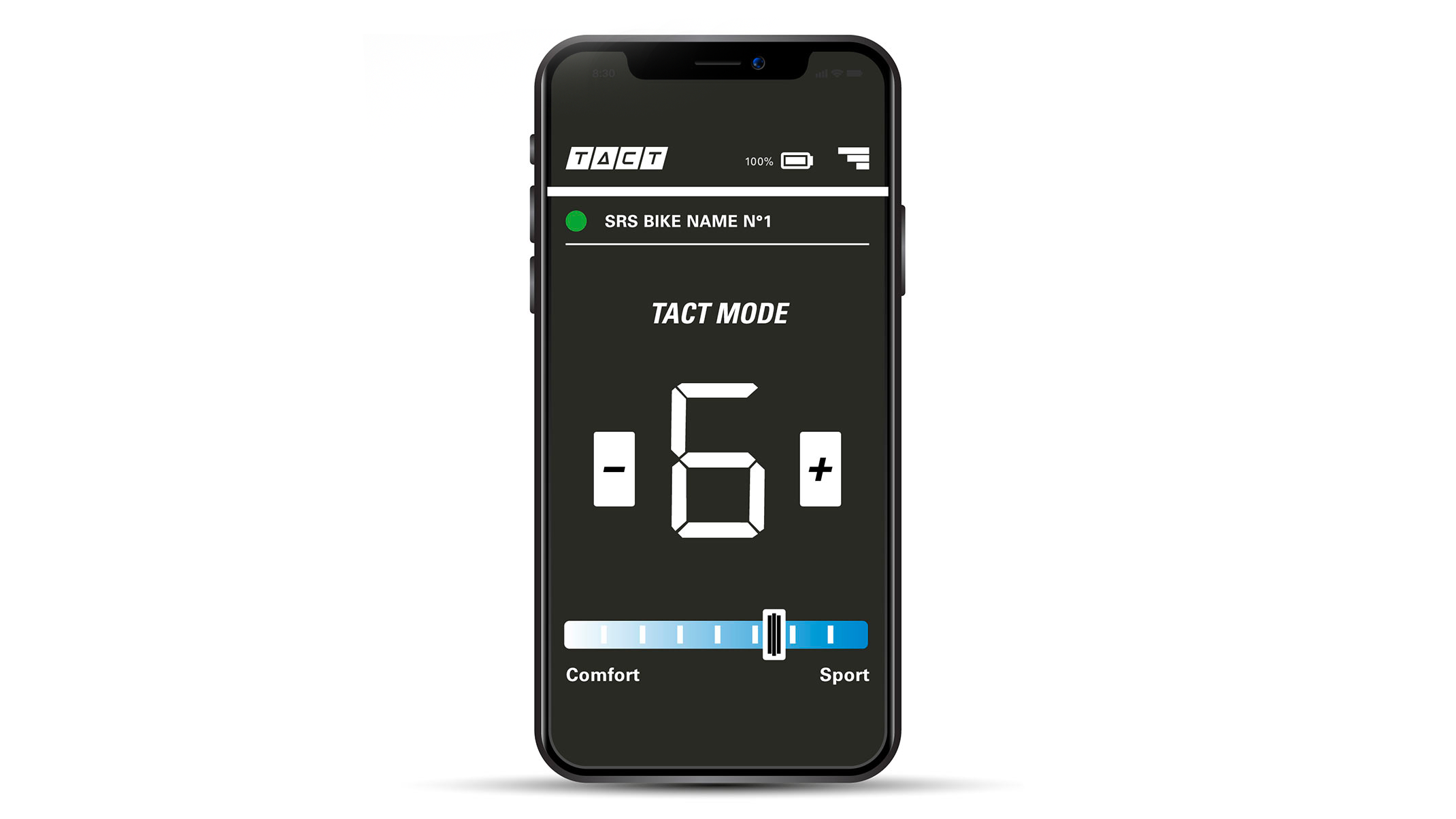 Bien que le système soit automatique, l’application smartphone « Tact » de SR Suntour permet d’ajuster le système sur huit niveaux de réglage différents : le niveau 1 offrant le plus de confort tandis que le niveau 8 se destine davantage à une efficacité maximale.