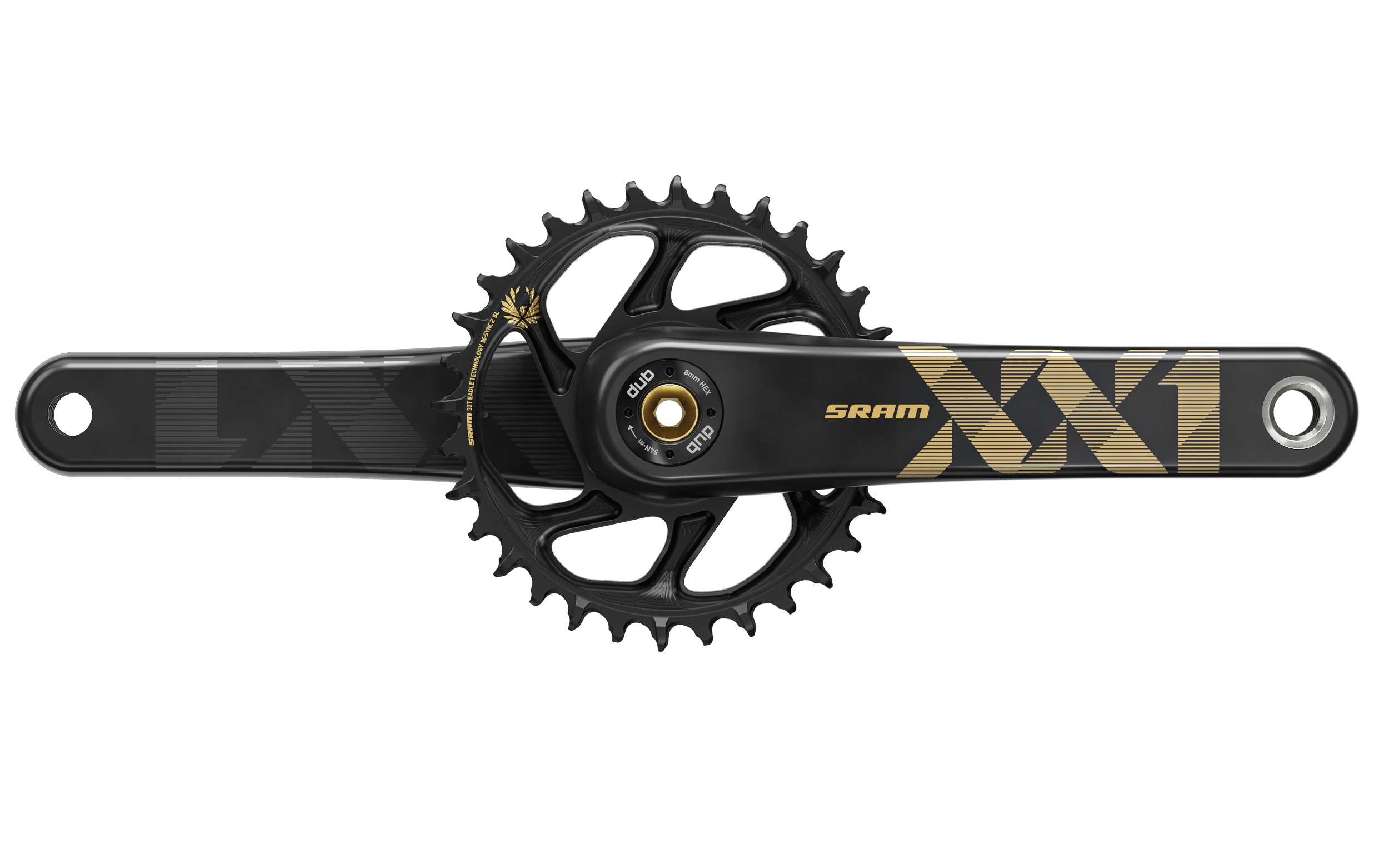 Quand on rentre dans le concret, qu’est-ce que c’est, le Sram DUB ? Extérieurement, dur de faire la différence avec un pédalier classique, à l’exception d’un marquage sur l’écrou qui relie l’axe et les manivelles. Par contre, au niveau de l’axe, on voit le changement. Il est désormais en aluminium, ce qui permet de gratter un peu de poids. A titre d’exemple, on parle de 498g annoncés pour un pédalier Sram XX1 DUB avec BB et plateau de 32 dents, contre 576g pour son homologue en GXP… ou encore 518g pour un Race Face Next SL G4, son concurrent tout désigné.