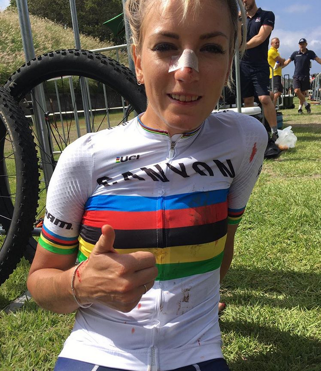 Chez les Françaises, Loana Lecomte termine à une belle 8e place devant des pilotes comme Maja Wloszczowska ou Catharine Pendrel. Pauline Ferrand-Prévot a en revanche dû abandonner après une chute dans un pierrier en tout début de course (fracture du nez).