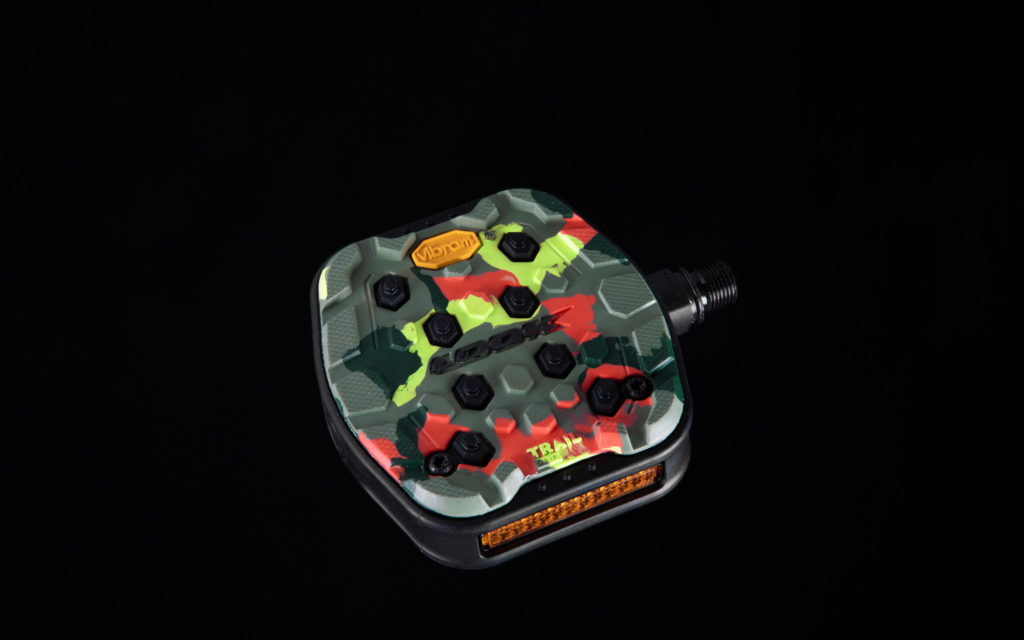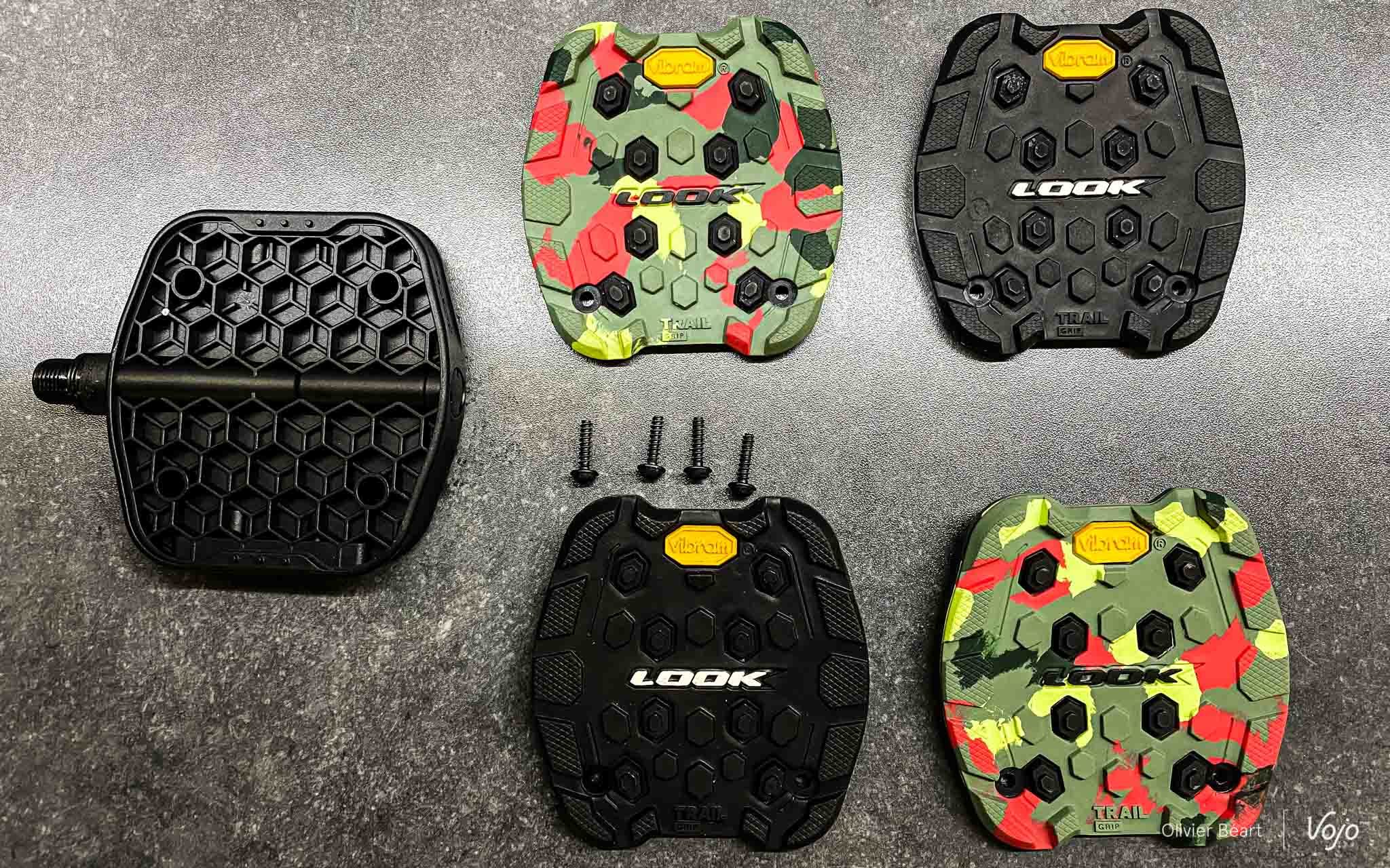Outre les possibilités de personnalisation au niveau de la couleur, disposer d’une face externe interchangeable leur permet aussi de s’adapter à différents usages. Ainsi, en troquant leur face lisse par une autre plus cramponnée (y compris quelques pics rigides), les Look Trail Grip deviennent d’originales pédales adaptées à un usage VTC/VTT rando, voire un peu plus si affinités.