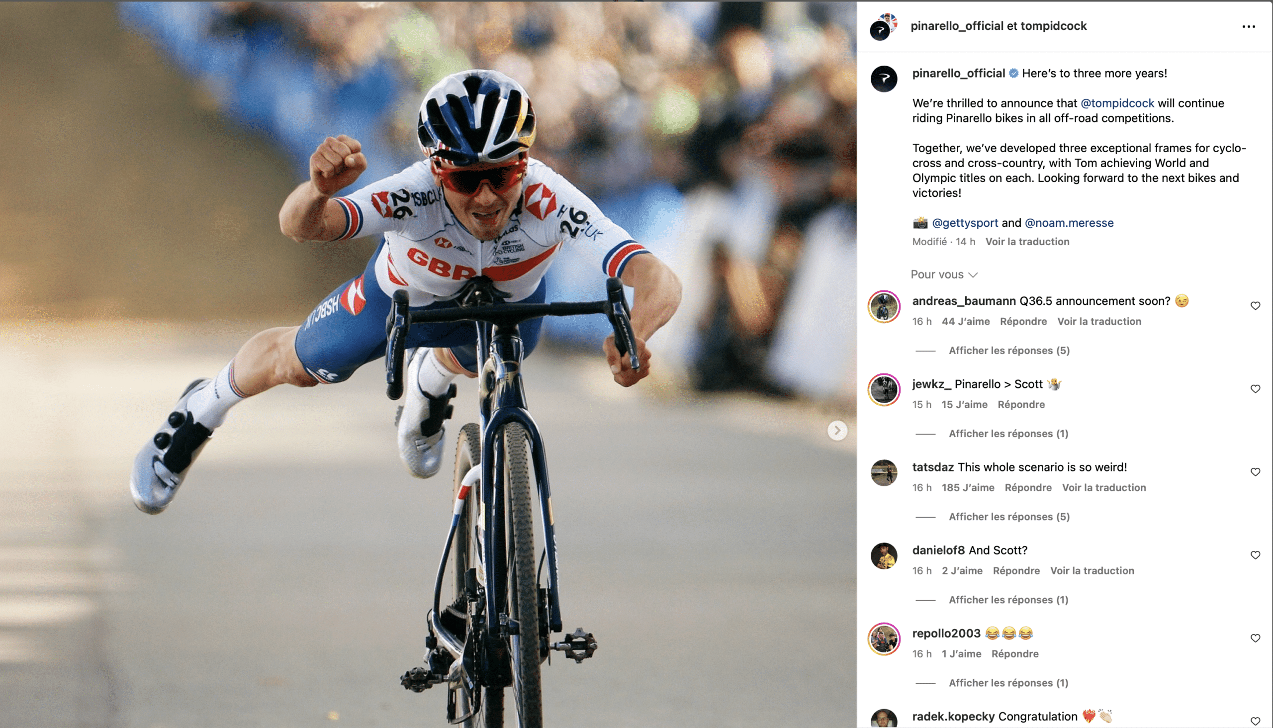 La saison des transferts est officiellement ouverte, et c’est nul autre que le champion olympique de XCO qui lance les hostilités ! Tom Pidcock a annoncé son départ de la formation Ineos Grenadiers pour rejoindre les rangs de l’équipe Q36.5… mais avec une spécificité : il continuera de rouler sur des vélos Pinarello lors des compétitions tout-terrain. Explications :