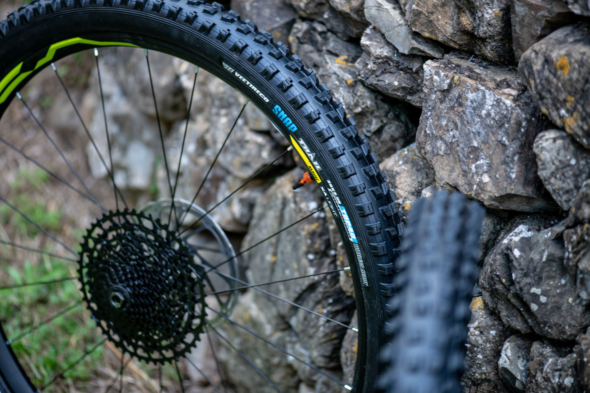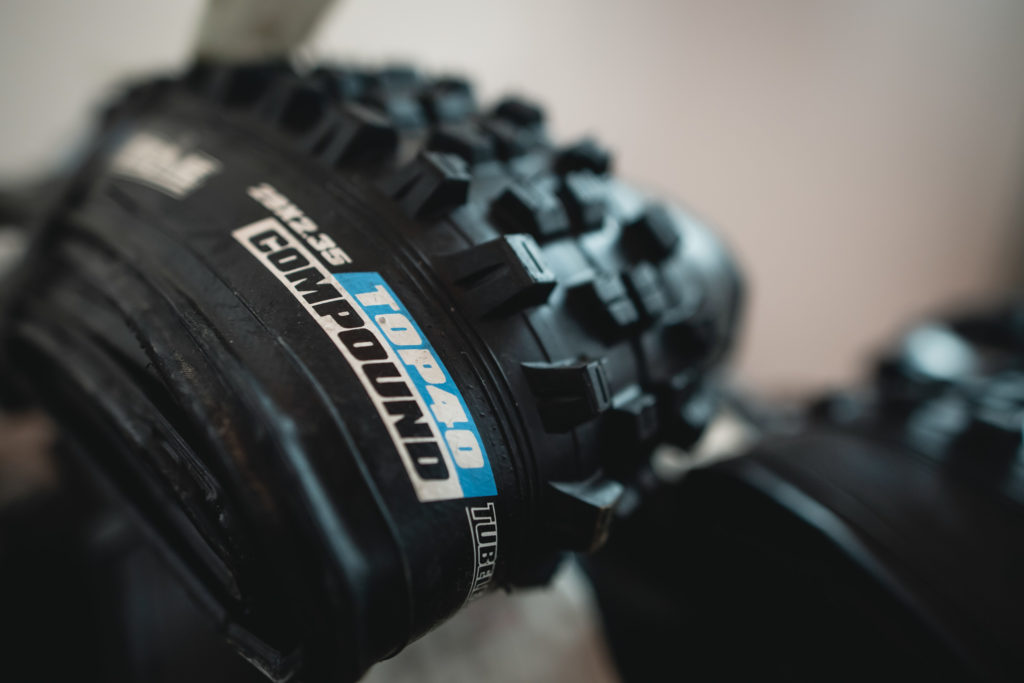 Le point commun reste la gomme tendre, baptisée Top40, et présentée à 42 Shore (+/-2) et l’unique section 2.35 disponible pour le moment (une section 2.5 est prévue). Sur le dessin du pneu, Vee annonce avoir travaillé la bande de roulement pour la rendre plus efficace que sur le Snap WCE, tout en laissant aux crampons latéraux une bonne dose de grip.