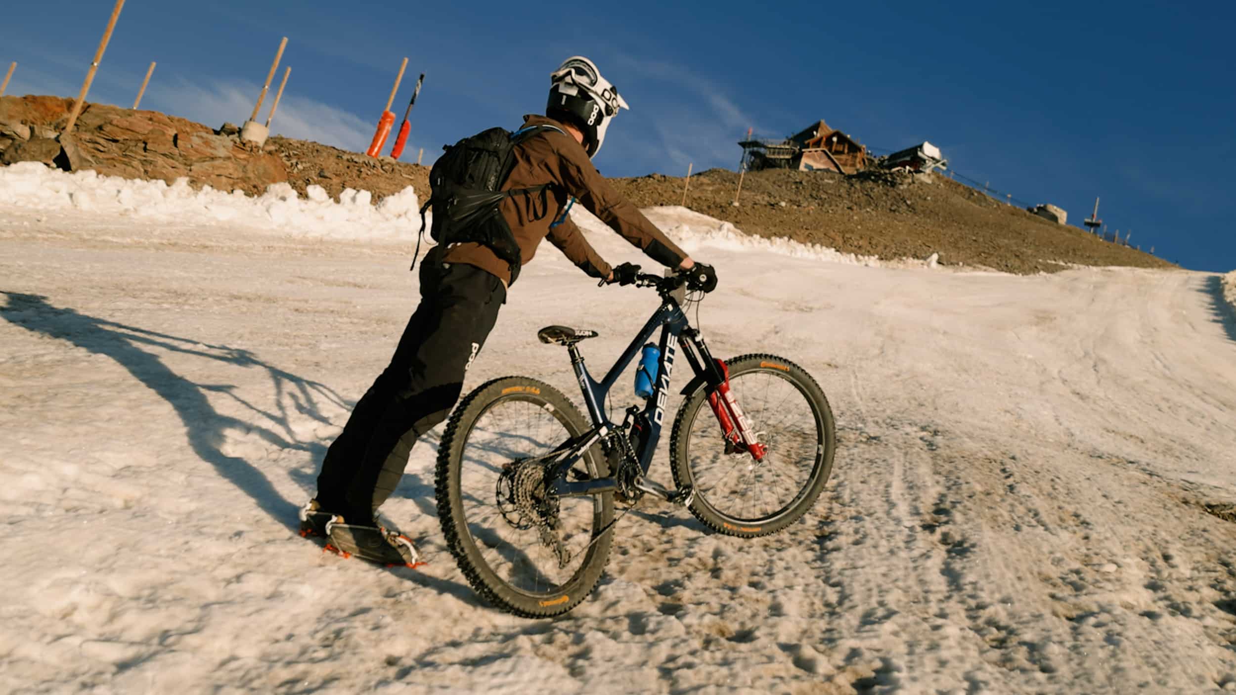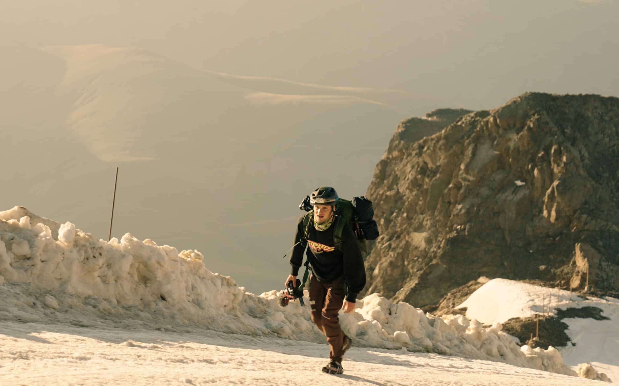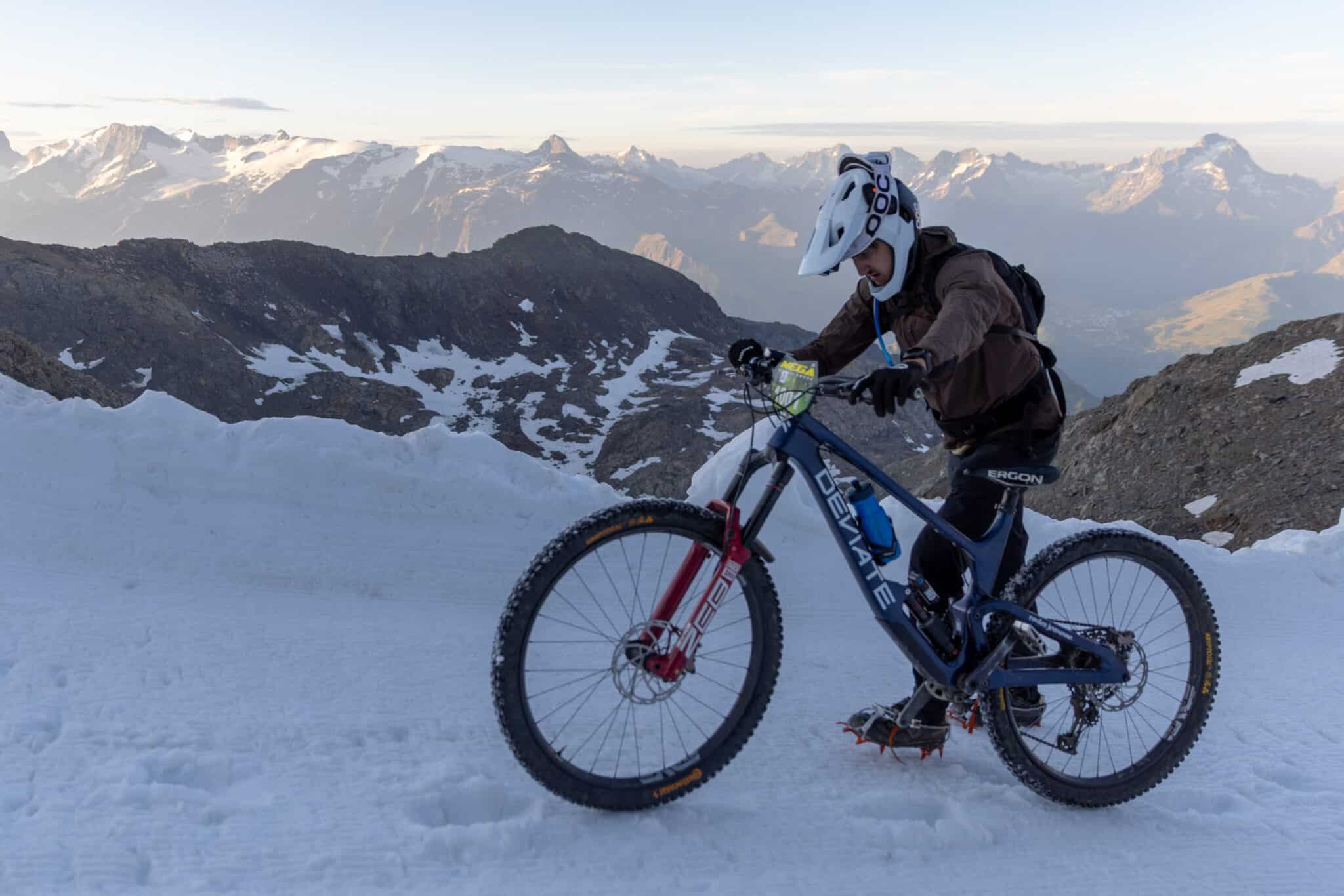 Avec un départ en mass-start à 3 300 m d’altitude sur un glacier pour 22 km de descente, la Mégavalanche, course « marathon de descente », est déjà un joli défi en soi. Maël Feron, lui, a eu une autre idée : grimper au départ de la course à la pédale, la nuit précédant l’épreuve. Il nous raconte ce que l’on ne voit pas dans le documentaire :