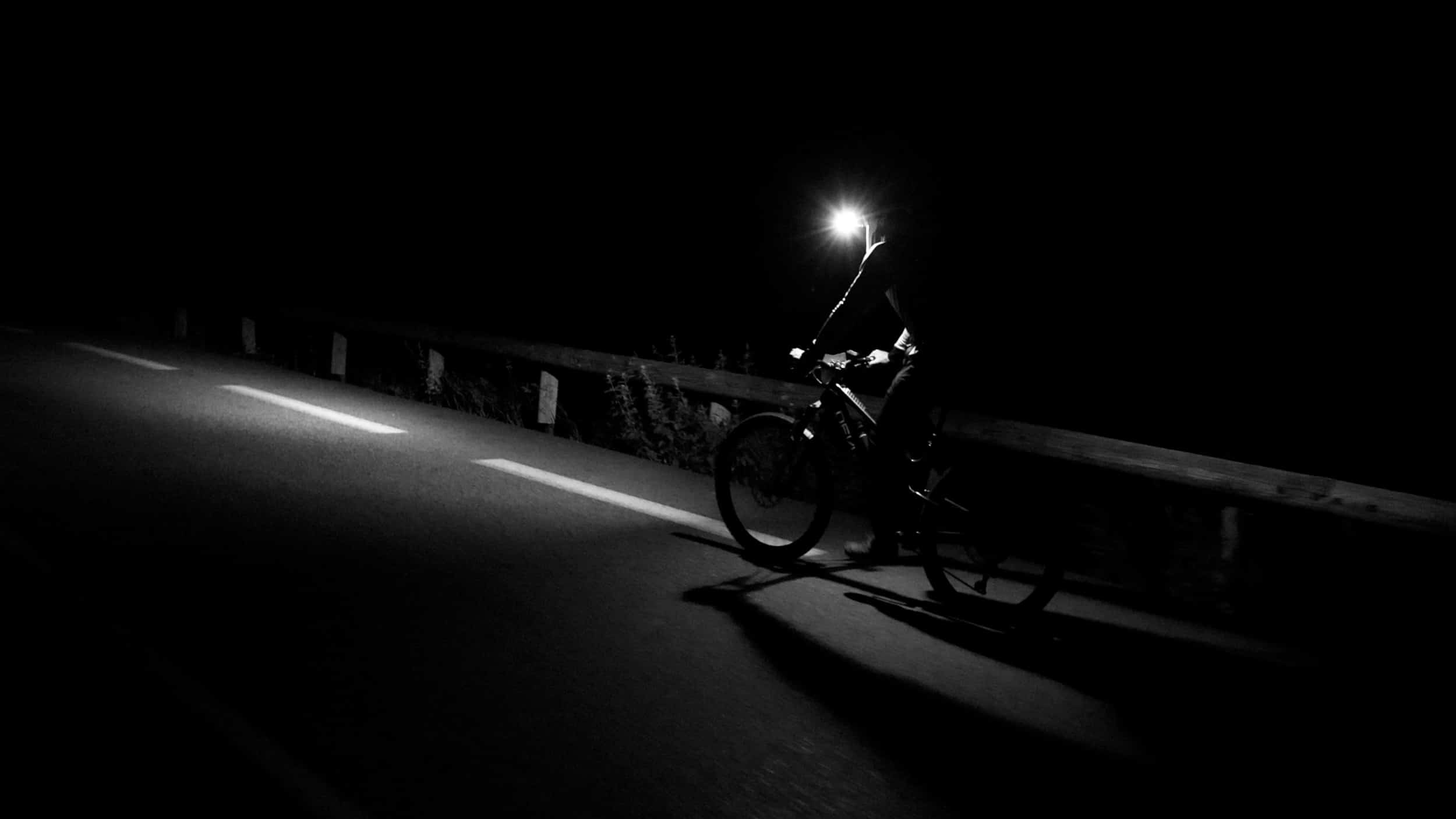 Pour ne rien rater de l’ascension, Téo m’a réellement suivi toute la nuit au guidon d’un vélo électrique… avec deux batteries : une pour monter les 21 virages de l’Alpe d’Huez, une pour la suite de l’ascension jusqu’au sommet. Sauf qu’en haut, quand tu attaques le tracé de la Mega à l’envers, dans les cailloux et la neige, l’assistance ne sert plus à grand-chose. D’autant plus qu’il avait aussi un sac de près de 20 kg avec tout le matos vidéo et de quoi tenir la nuit. Honnêtement, son défi à lui n’était pas loin du mien.