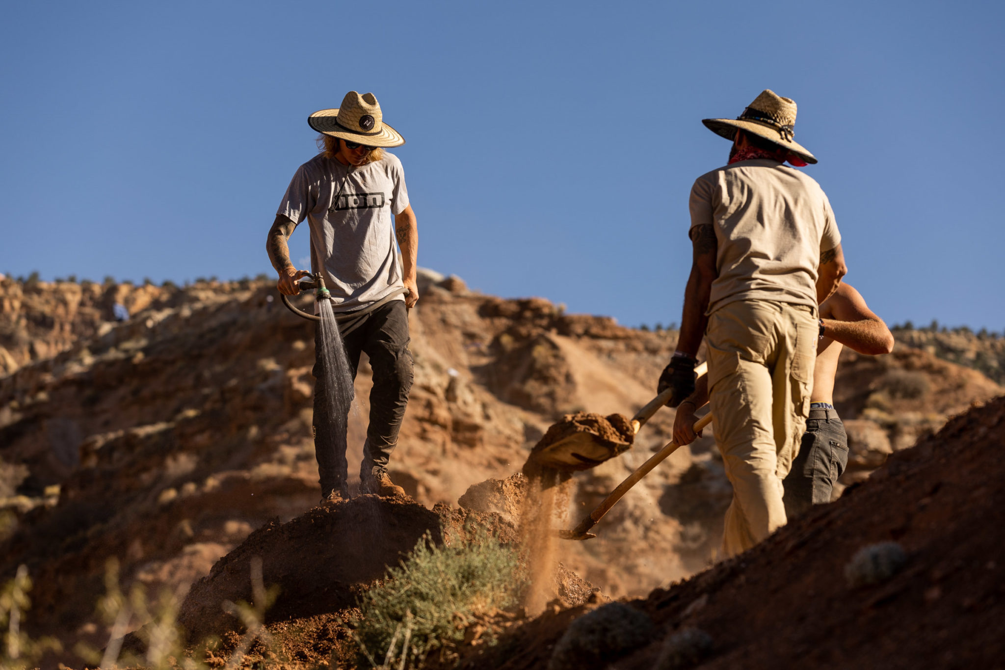 Pour construire leurs différents modules et sauts, les pilotes bénéficient d’une semaine, 75 sacs de sable, quelques outils manuels et surtout deux amis au choix.