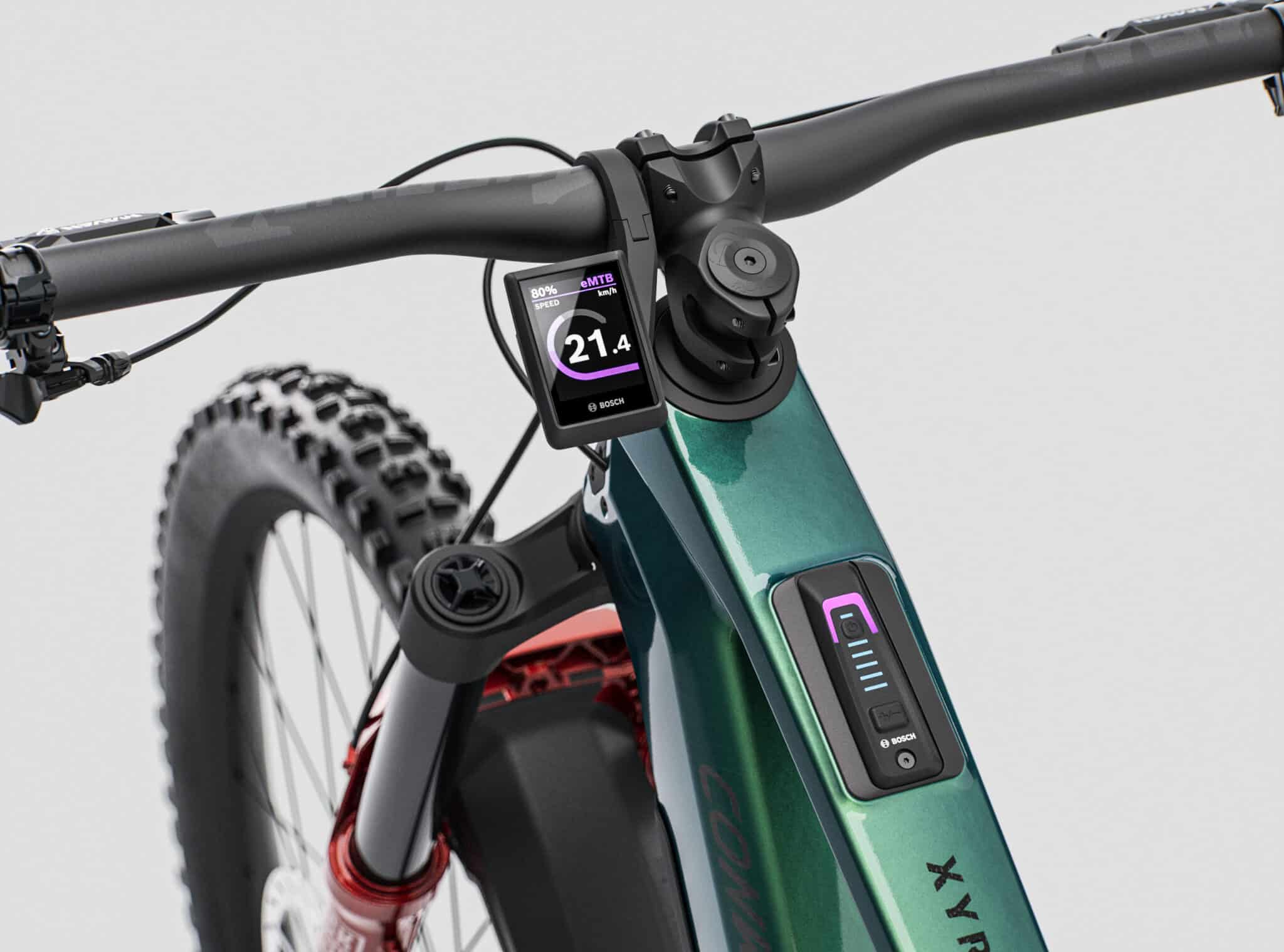 Ici, on parle uniquement de l’intégration du nouveau moteur puisque les vélos restent équipés d’une batterie amovible PowerTube 625 ou 750 suivant le niveau de gamme avec un écran Bosch Intuvia 100, qu’on a peu l’habitude de voir en VTT.