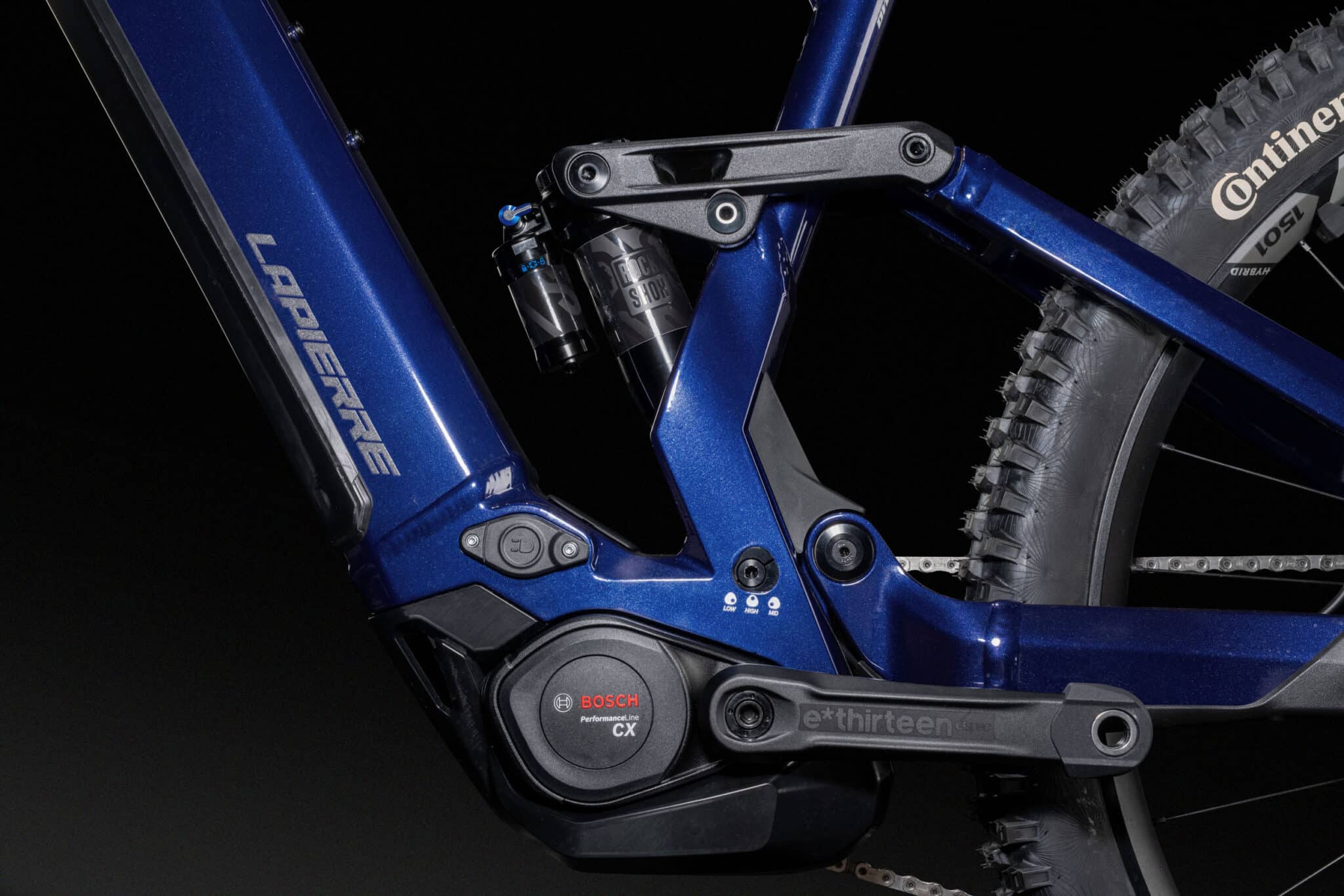 Même schéma chez Lapierre, où l’Overvolt change complètement de visage pour cette nouvelle génération. L’amortisseur, auparavant sous le tube supérieur, glisse en position verticale devant le tube de selle sur le modèle du dernier Zesty (lire Test nouveauté | Lapierre Zesty CF 7.9 : un bon fond).