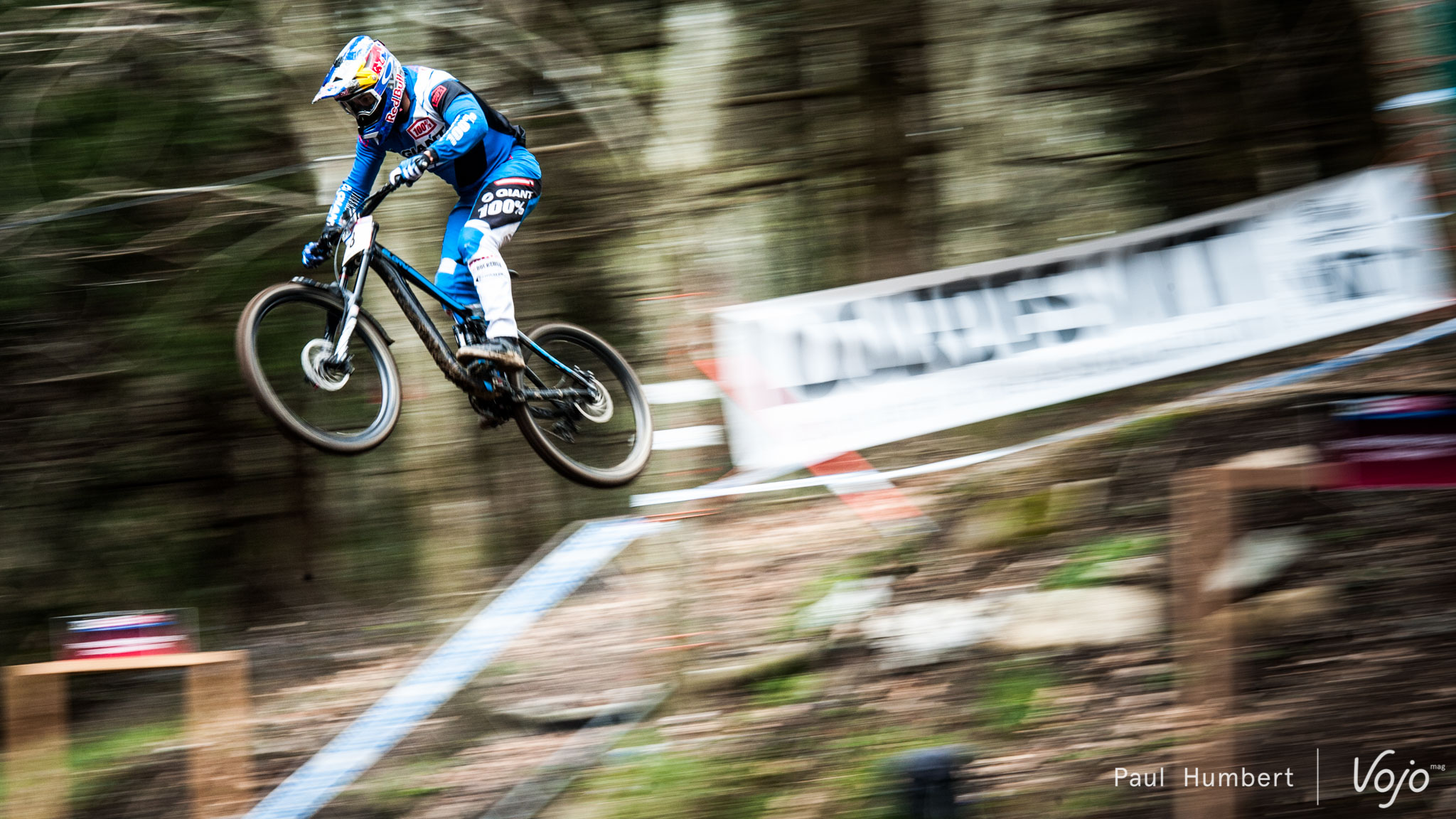 Loïc Bruni est au centre de toutes les attention mais il ne se démonte pas et enchaîne les passages sur la piste. Il a effectué au moins une descente sur un vélo équipé de matériel d’acquisition de données.