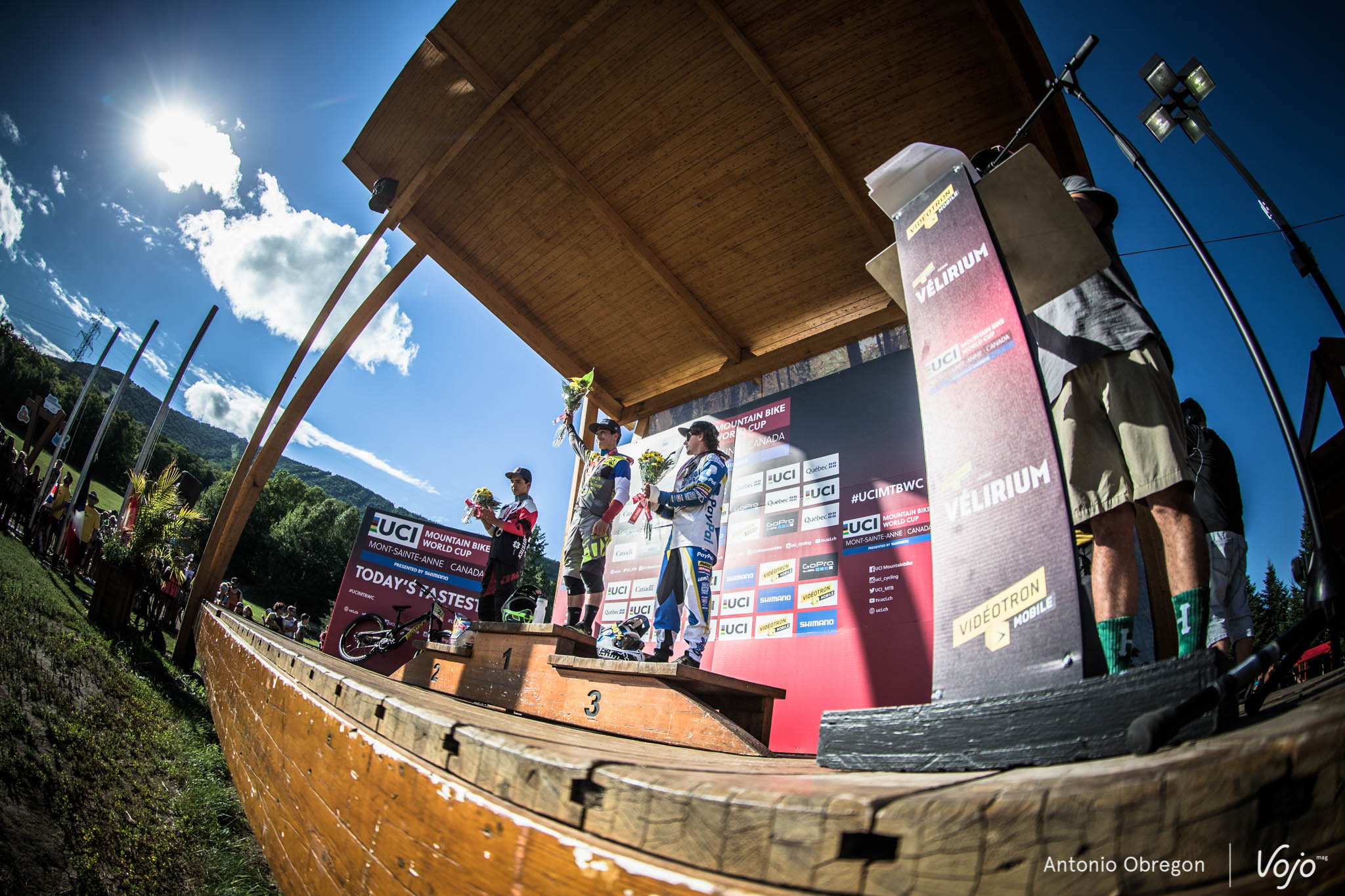 Direction le Canada ce week-end et le week-end prochain pour de la compétition de très haut niveau. Place d’abord à la descente et nous découvrons les noms des gagnants. Chez les hommes, Danny Hart prouve (si il fallait le prouver) que sa performance de Lenzerheide n’était pas due au hasard. Chez les dames, c’est l’ultra dominatrice Rachel Atherton qui s’empare une nouvelle fois de la victoire. Enfin, la marseillaise a retentit une fois pendant la cérémonie protocolaire pour souligner la performance de Gaetan Vige chez les Juniors. Avant notre grand portfolio, découvrez les résultats :