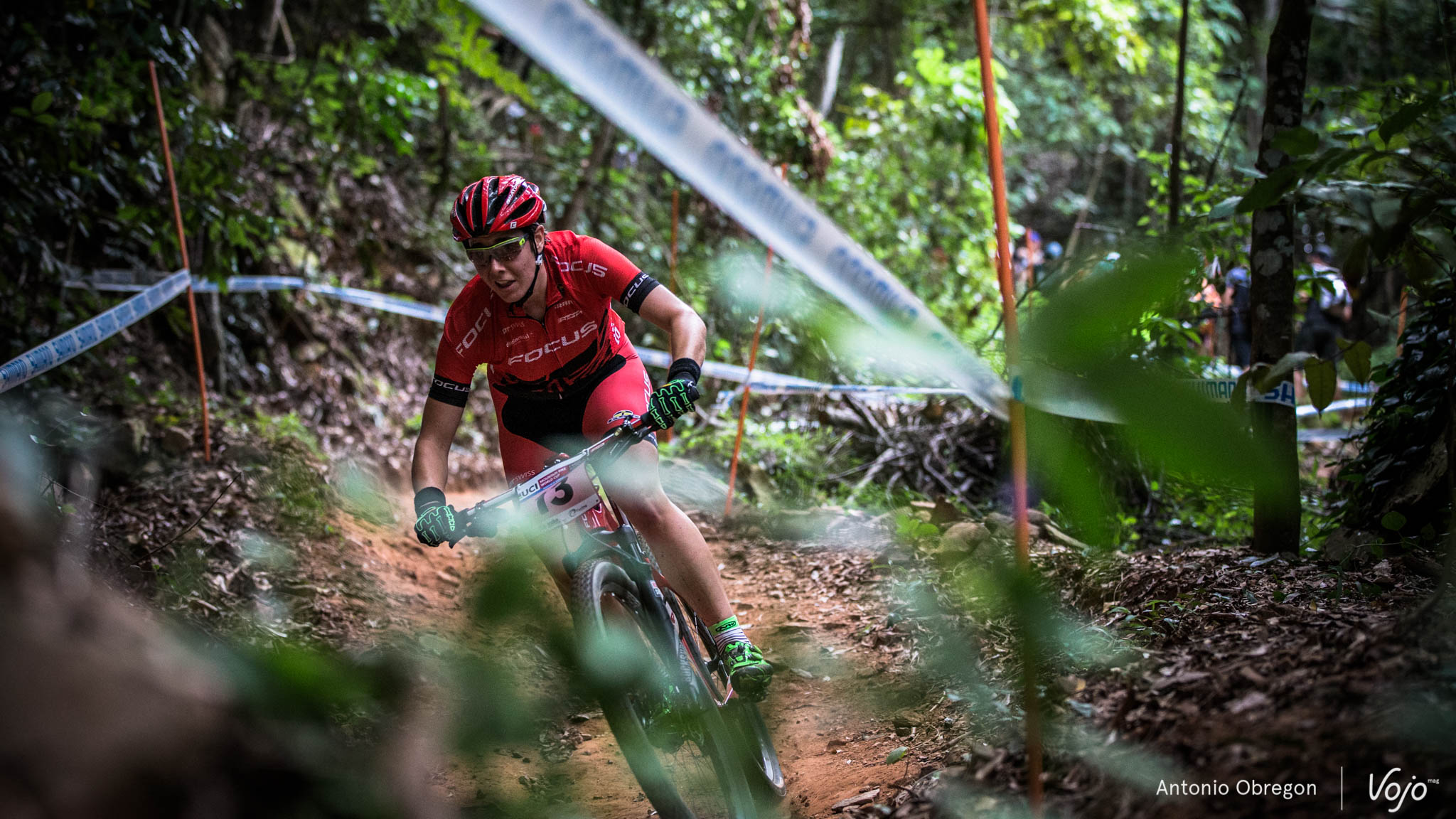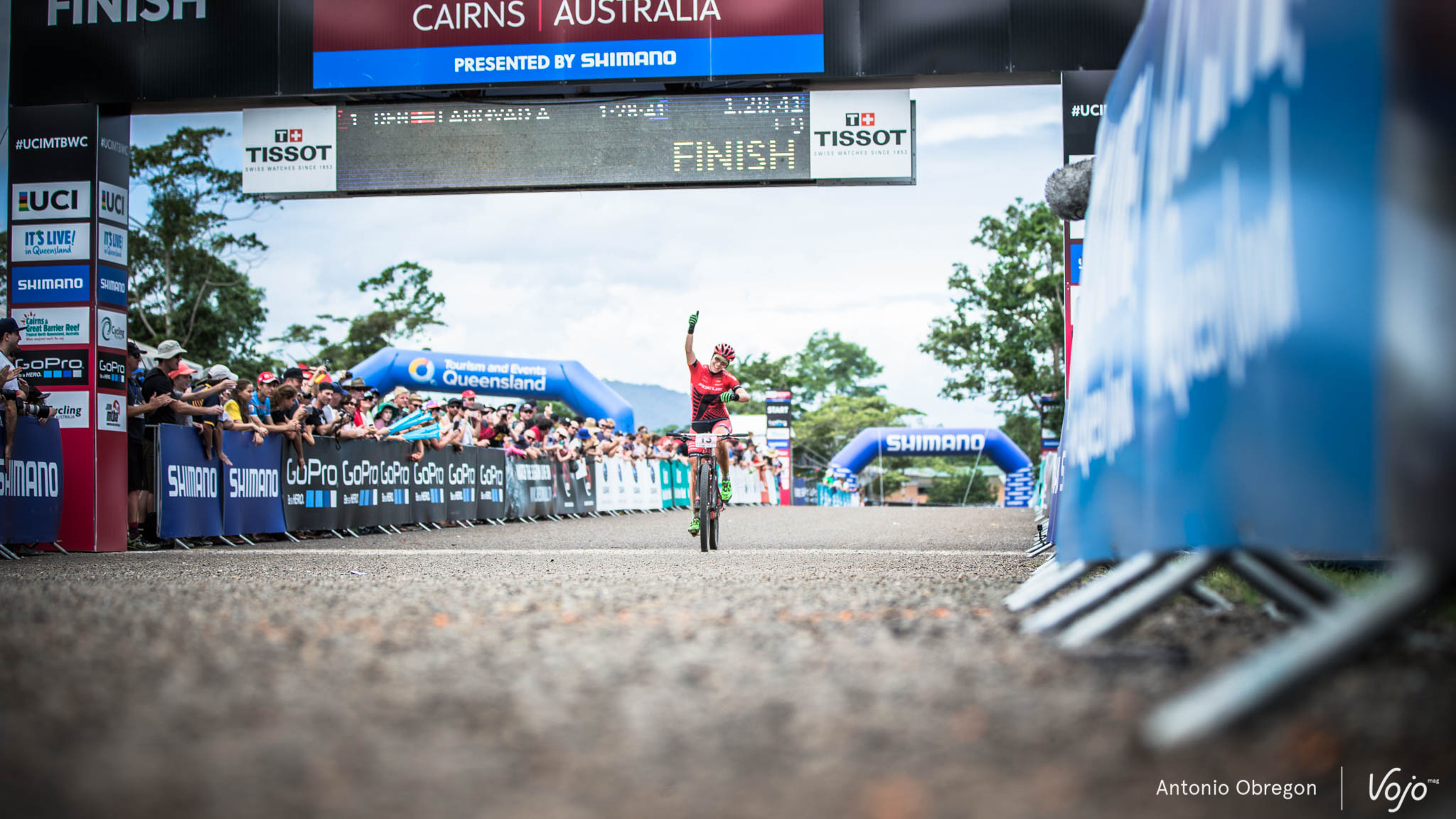 Superstar de la catégorie U23 l’an passée, Jenny Rissveds effectue sa rentrée dans la cour des grandes à Cairns et le moins qu’on puisse dire c’est qu’elle le fait avec la manière. Après un départ compliqué pendant lequel sa selle a été accrochée et s’est déréglée, elle a dû s’arrêter aux stands pour effectuer un changement de cet accessoire et elle est repartie à la 32ème position. Elle effectue ensuite une incroyable remontée jusqu’à la 9ème place. Chapeau, et à très vite au sommet !