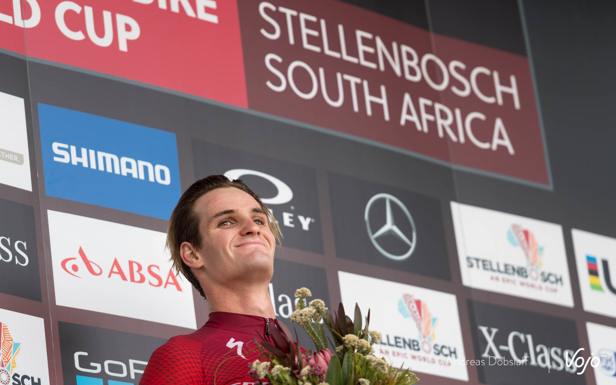 Double champion du Monde U23 en 2016 et 2017, le Néo-Zélandais a parfois vu sa progression retardée à cause de problèmes de migraines dont il souffre. Mais quand il est en pleine possession de ses moyens, il est absolument redoutable. Certains le surnomment même « le Kulhavy Néo-Zélandais » car il partage avec son équipier le même gabarit et un certain style sur le vélo. Le final de cette course fait d’ailleurs un peu penser à celui des JO de Londres en 2012, où Schurter avait justement été battu par Kulhavy. A ce détail près que Gaze n’a pas joué une course d’attente et a attaqué plusieurs fois Schurter auparavant. Une performance d’autant plus remarquable qu’à Stellenbosch, Nino Schurter joue presque à domicile, puisqu’il habite une bonne partie de l’année à quelques centaines de mètres du circuit. A sa décharge, Schurter a déclipsé dans le sprint final. Mais même sans cela, pas sûr que le verdict aurait été différent.
