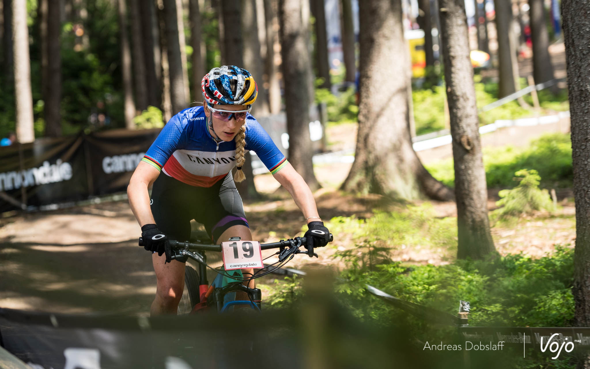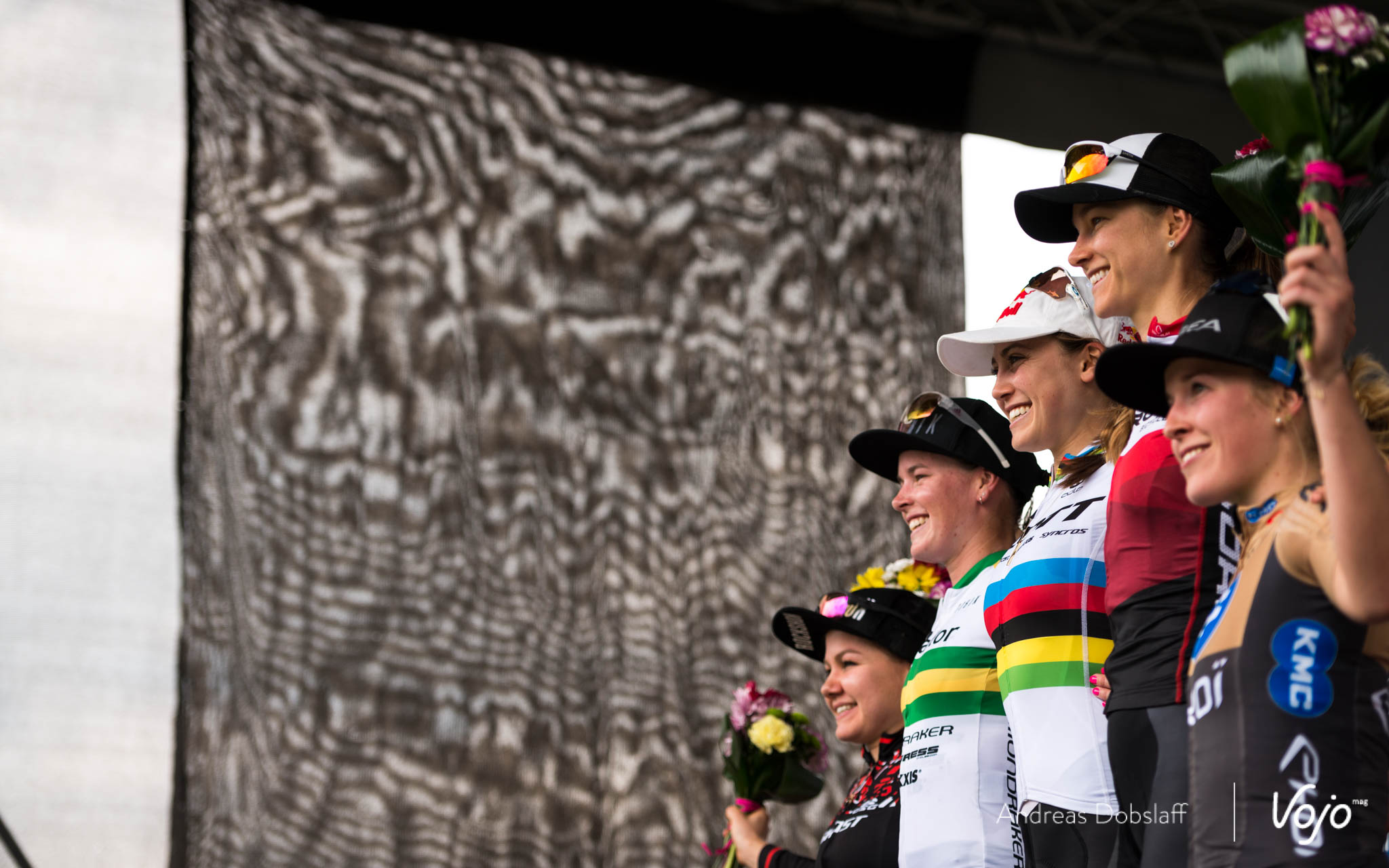 Derrière Courtney, le podium est complété par 5 filles qui signent chacune leur meilleure performance en coupe du monde. L’Australienne Rebecca McConnell (autrefois connue sous son nom de jeune fille, Henderson) est 2e, devant la Canadienne Haley Smith et deux petites jeunes qui débutent en Elite, Sina Frei et Malène Degn qui n’ont pas dû attendre longtemps pour monter pour la première fois sur le podium en Elite !