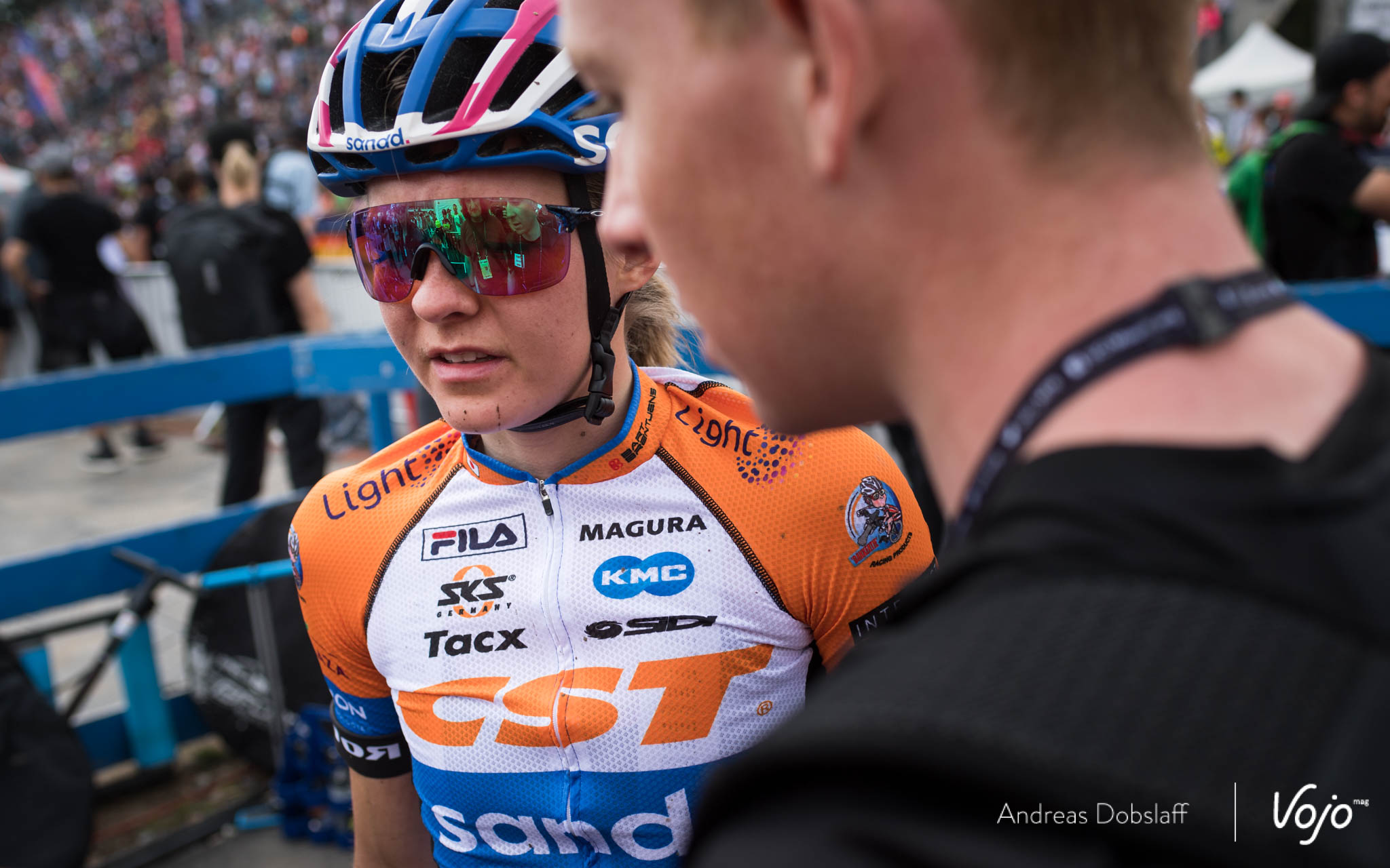 Hélas, dans la « Shimano Expert Climb », la jeune Néerlandaise a été victime d’une petite chute, qui lui fait perdre tout espoir de victoire et qui a privé les spectateurs d’un final probablement très explosif avec la championne du monde.