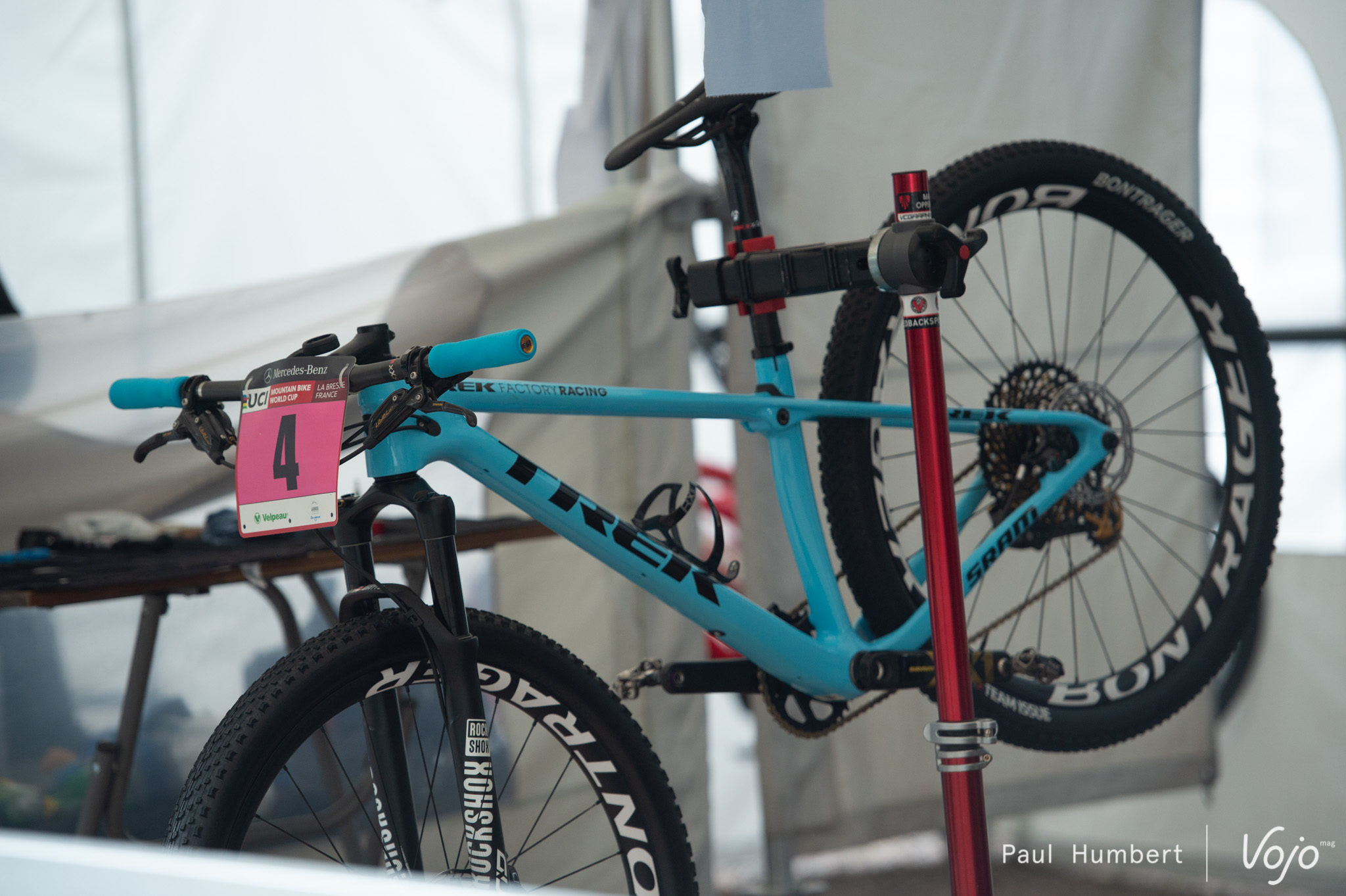 Du côté de chez Trek, le vélo d’Emily Batty semble prêt, tout comme celui d’Annika Langvad.