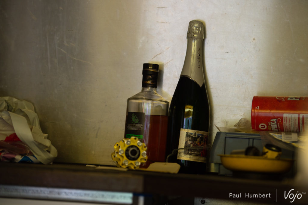 À côté, les mécaniciens de l’équipe Bianchi s’affairent. Il en va de même chez Sram.
