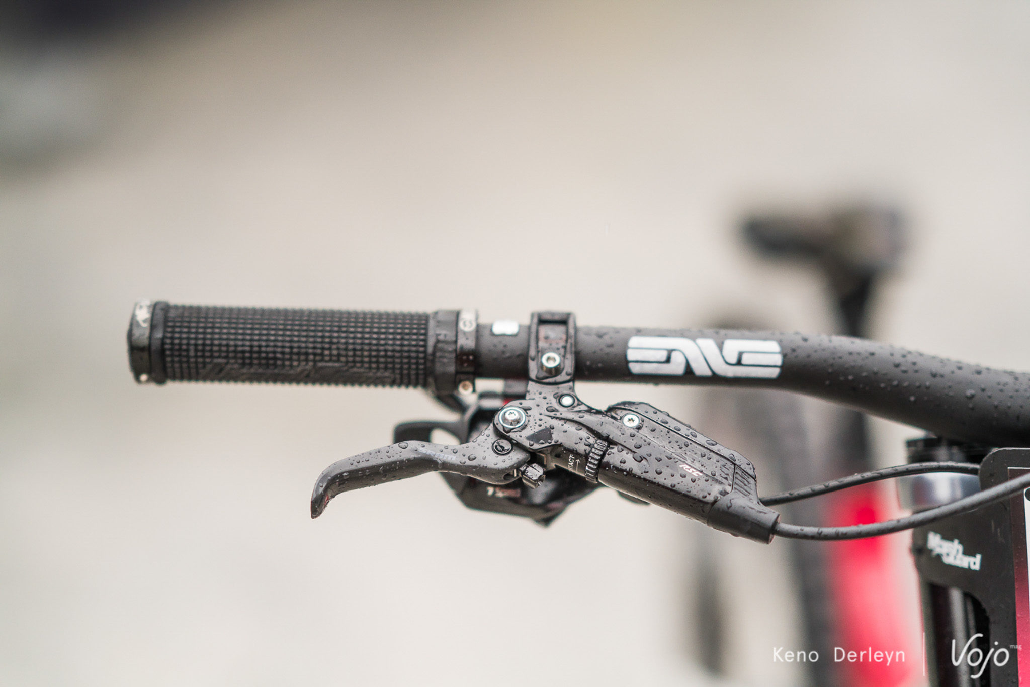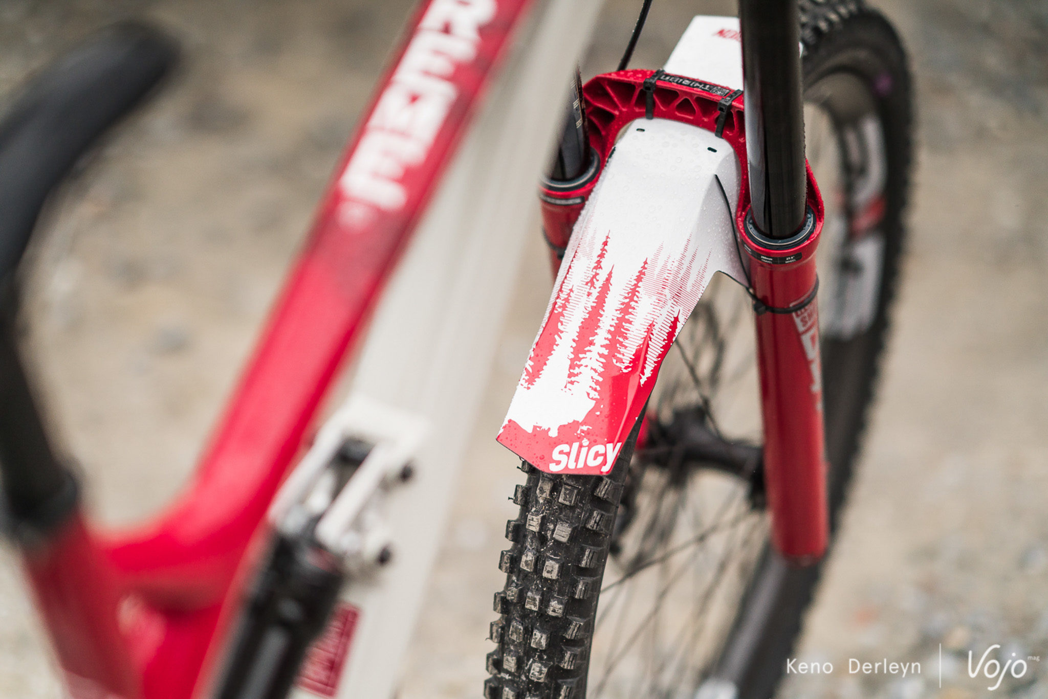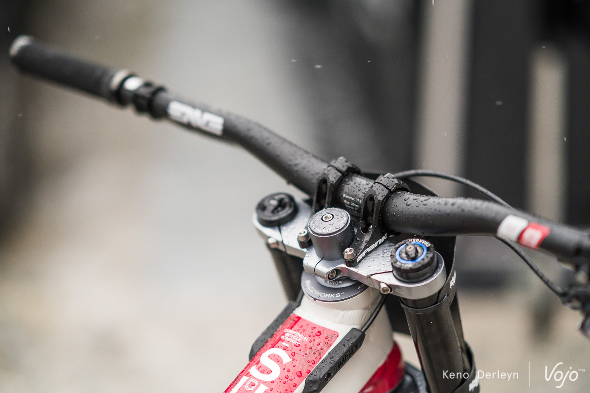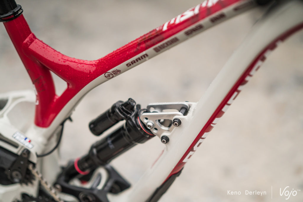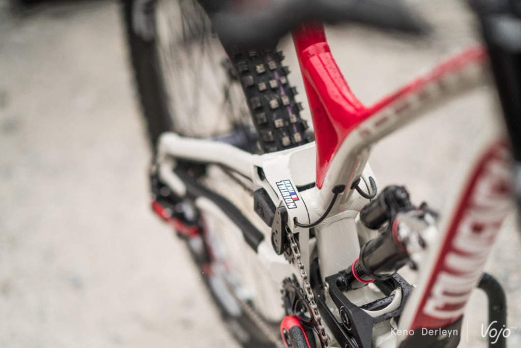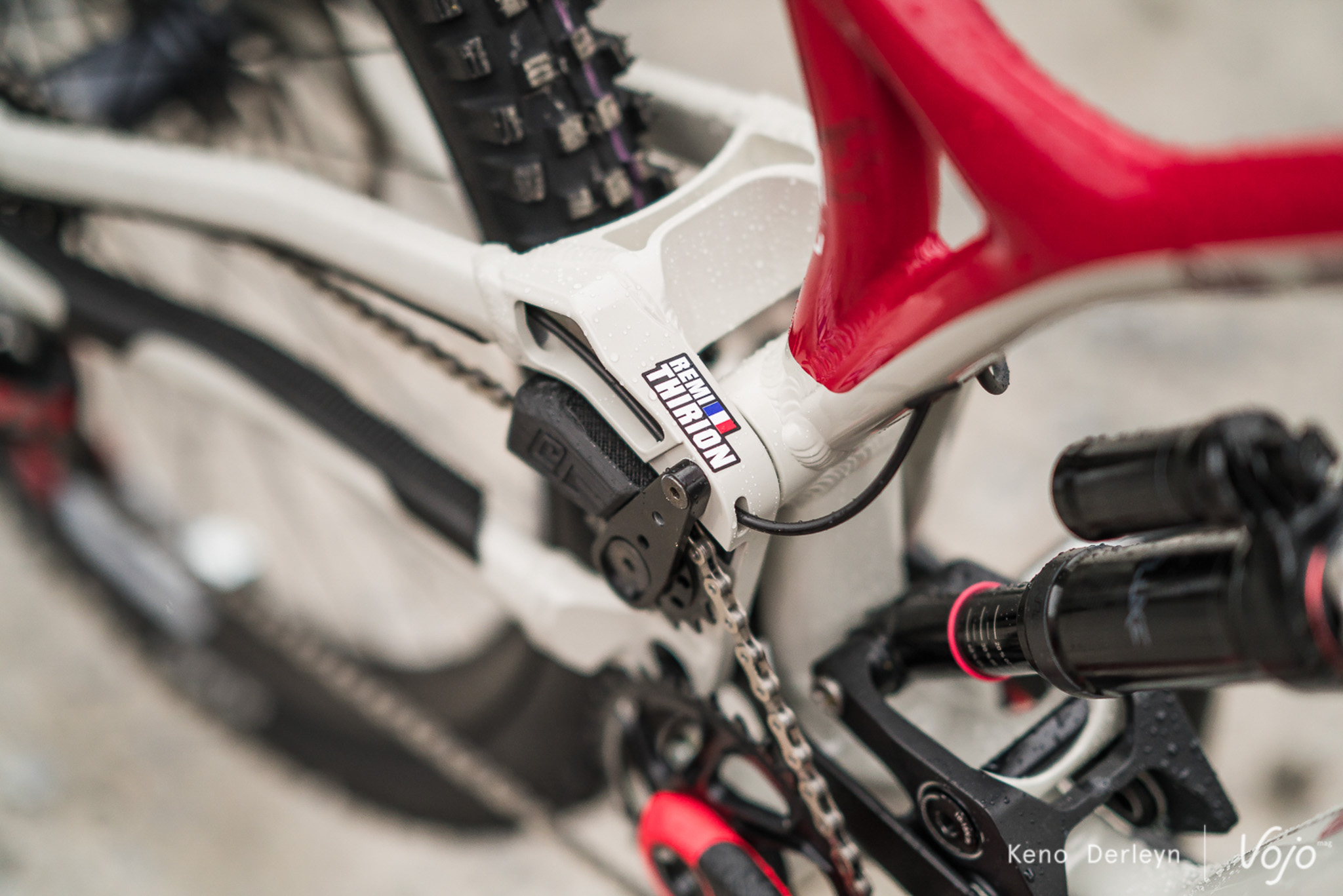 Difficile d’identifier la nouveauté au premier coup d’oeil quand on regarde le vélo de Rémi Thirion. Pourtant, son Commencal Supreme DH ne ressemble pas au modèle commercialisé par la marque, et c’est normal pour l’équipe : un vélo de coupe du Monde est un prototype en constante évolution. On devine donc certaines évolutions qui pourront attendre un futur modèle commercialisé, le Commencal Supreme V5 ?