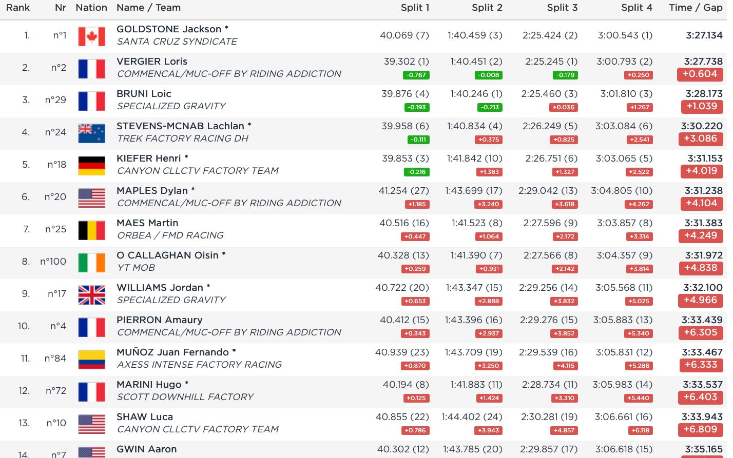 On notera également la très bonne 7e place de Martin Maes, la 10e place de Amaury Pierron, la 12e place du français Hugo Marini ou encore la 14e position d’un certain Aaron Gwin !