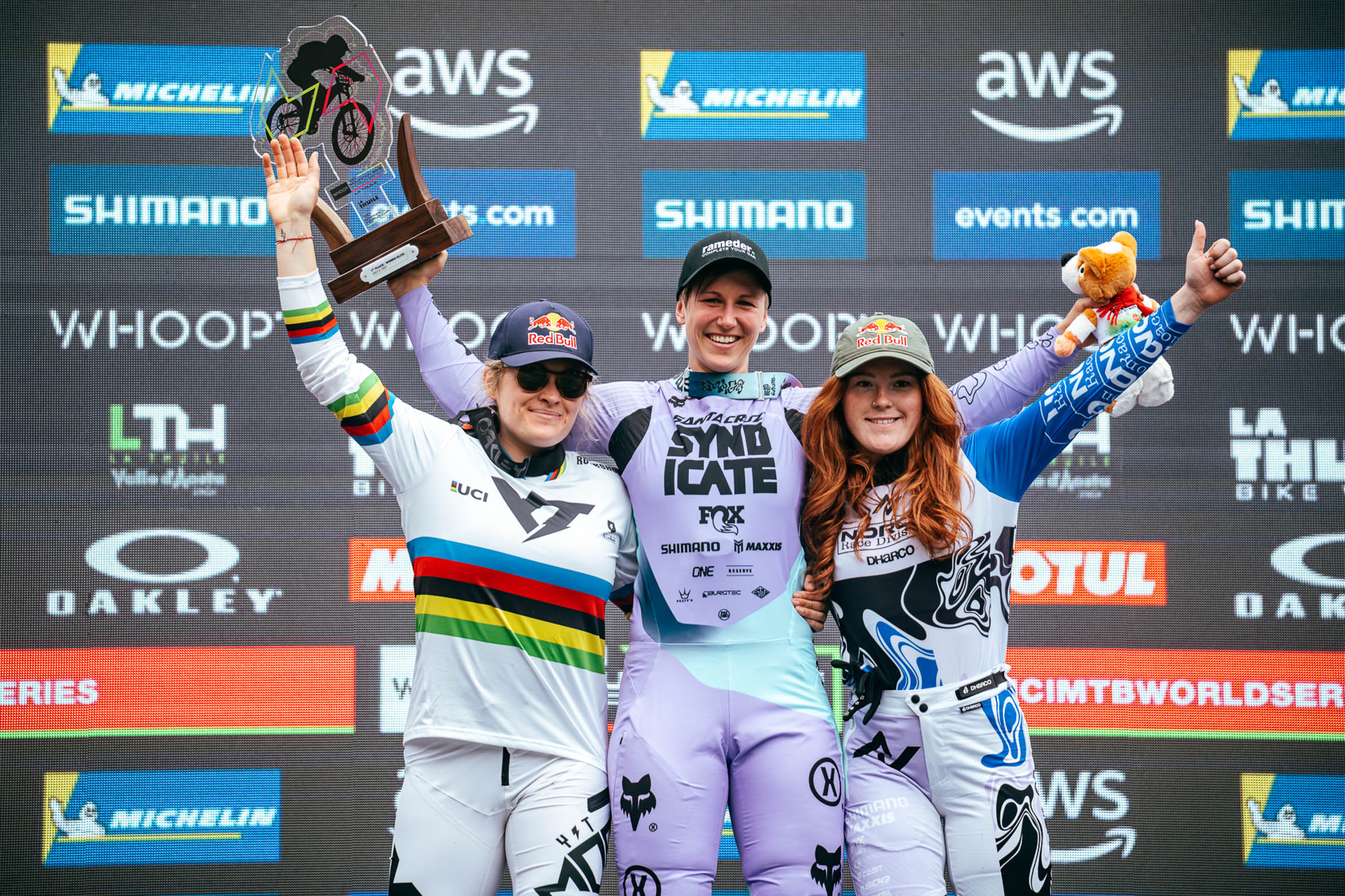 Une nouvelle station alpine au calendrier, une piste à la pente vertigineuse, des conditions changeantes et des écarts infimes… La manche de coupe du monde de DH de La Thuile n’a pas manqué de rebondissements. Et au terme d’un week-end haletant, ce sont Jackson Goldstone et Nina Hoffmann qui repartent avec les plus belles médailles autour du cou. Une journée parfaite pour le Santa Cruz Syndicate, tandis que les jeunes Till Alran et Aletha Ostgaard s’offrent leurs propres moments de gloire dans les catégories juniors.