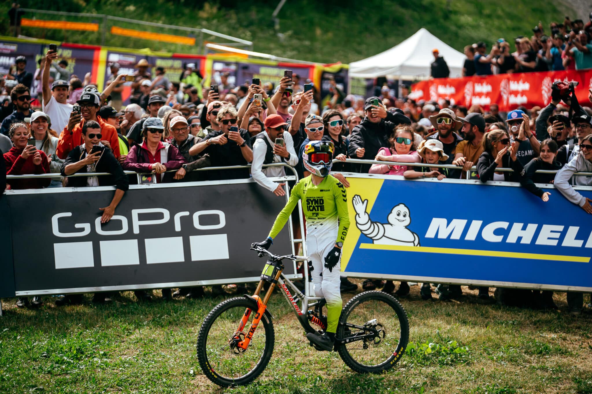 Le suspense a duré jusqu’au dernier run : Loris Vergier, champion du monde en titre, avait placé la barre très haut avec une descente millimétrée, rapide sur chaque split, pour finalement couper la ligne en 3:27.7. Derrière, Loïc Bruni se montrait incisif mais concédait quatre dixièmes.