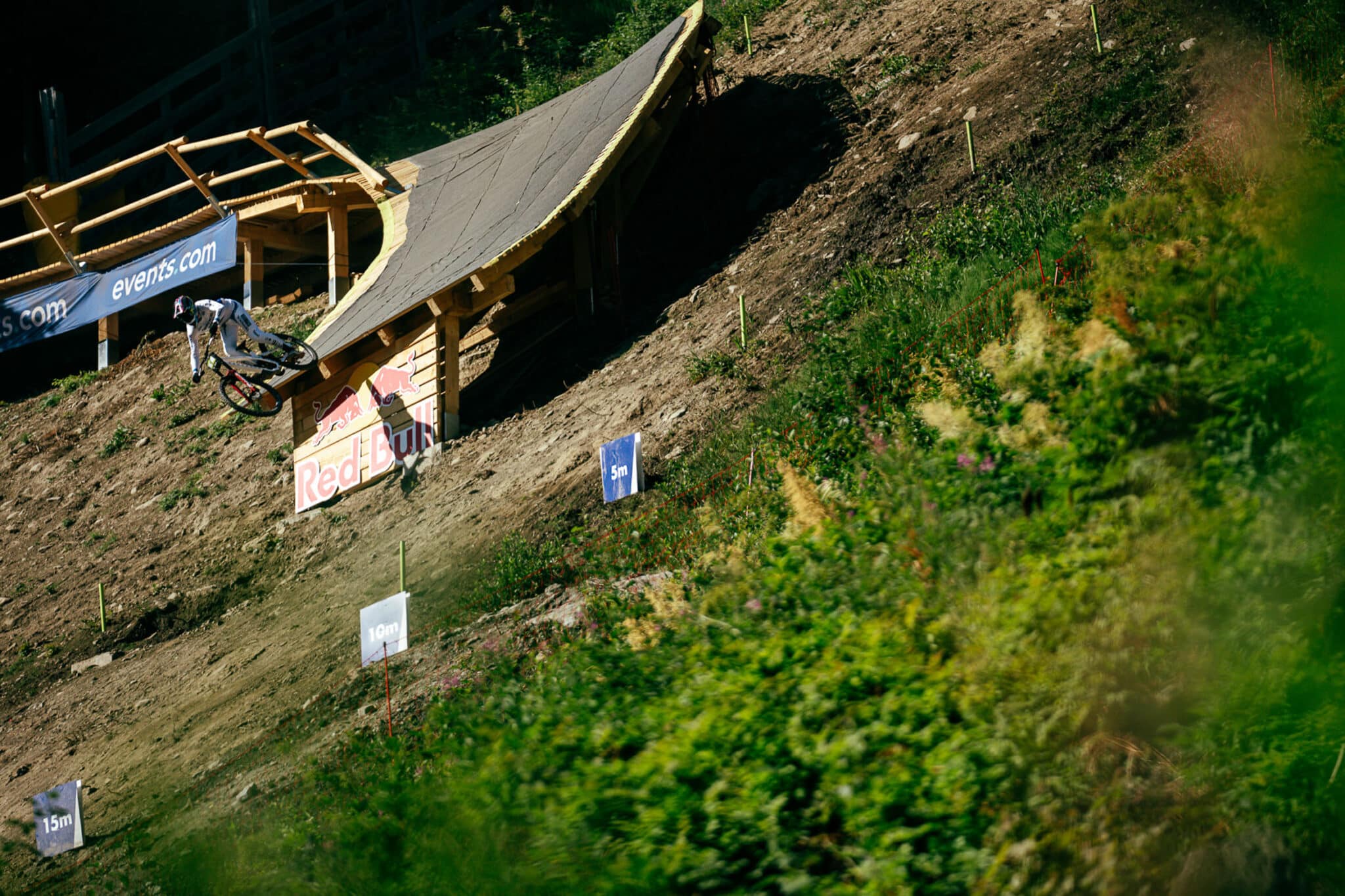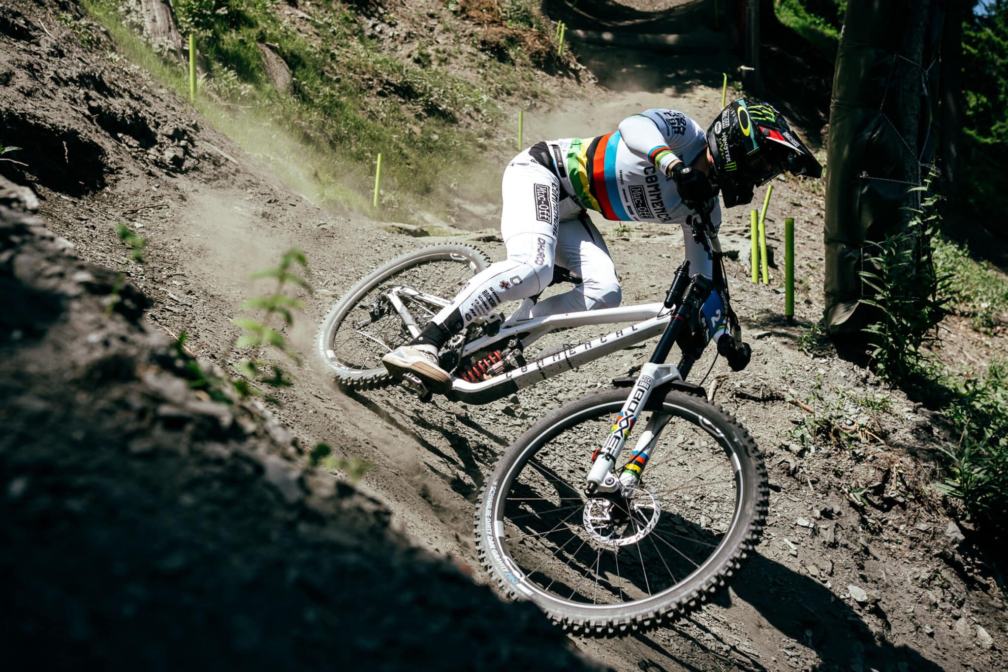 La station italienne de La Thuile – Valle d’Aosta accueillait pour la première fois une manche de Coupe du Monde de descente. Et le moins que l’on puisse dire, c’est que le tracé, ultra raide et physique, a tenu toutes ses promesses. Mélange de sections artificielles et de zones techniques rendues piégeuses par la pluie en fin de finale, ce nouveau tracé a mis à mal les pilotes les plus aguerris.
