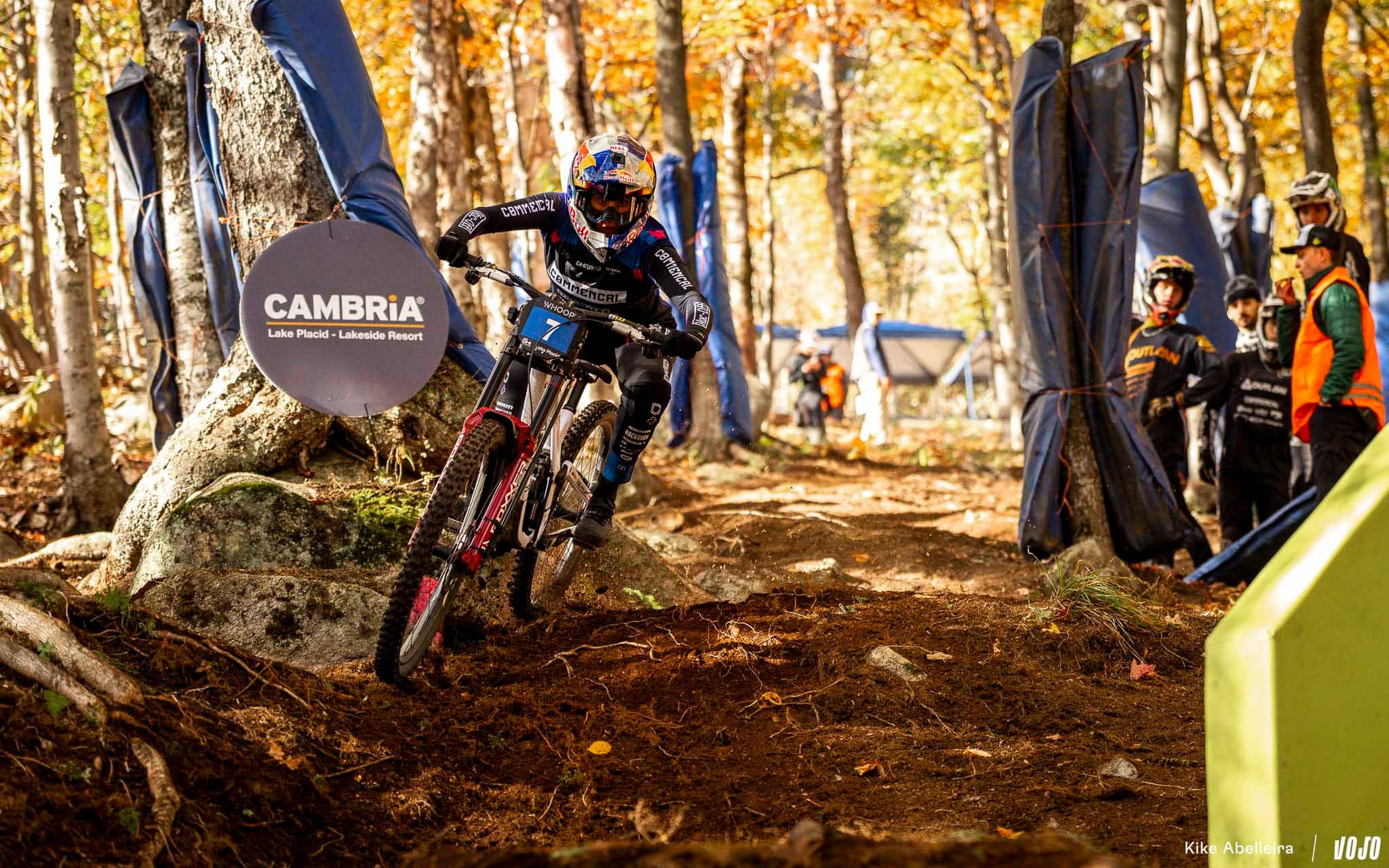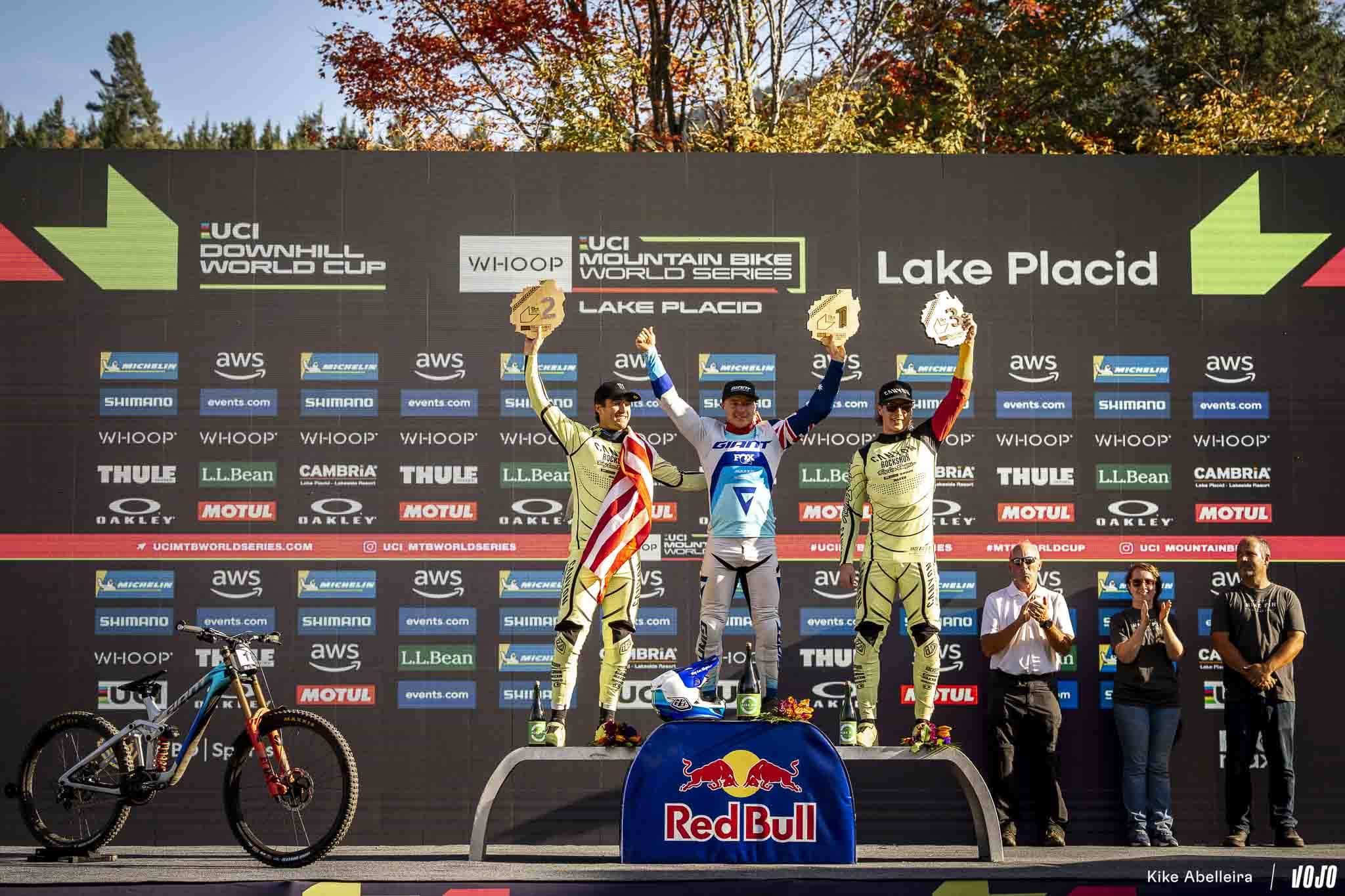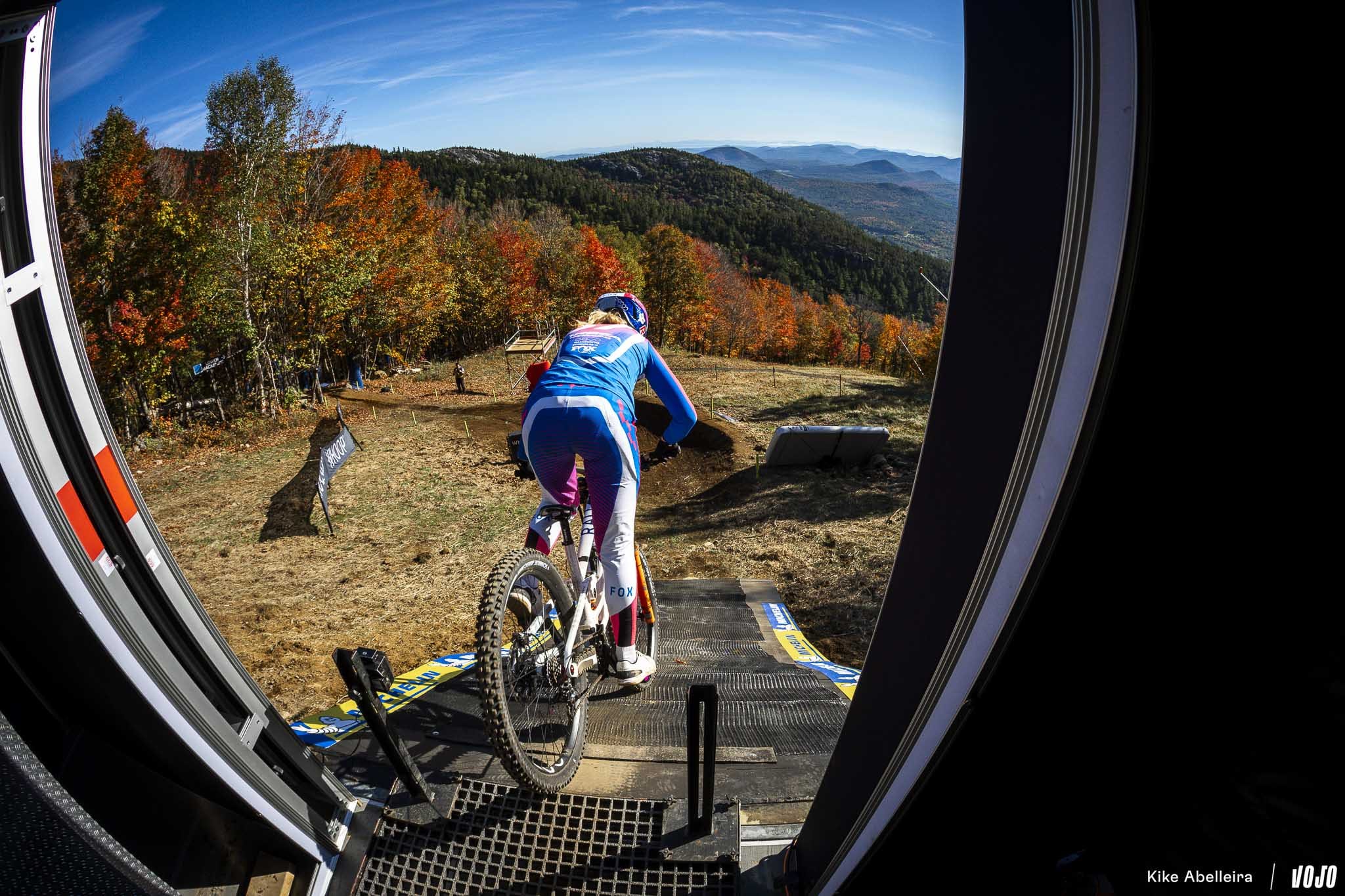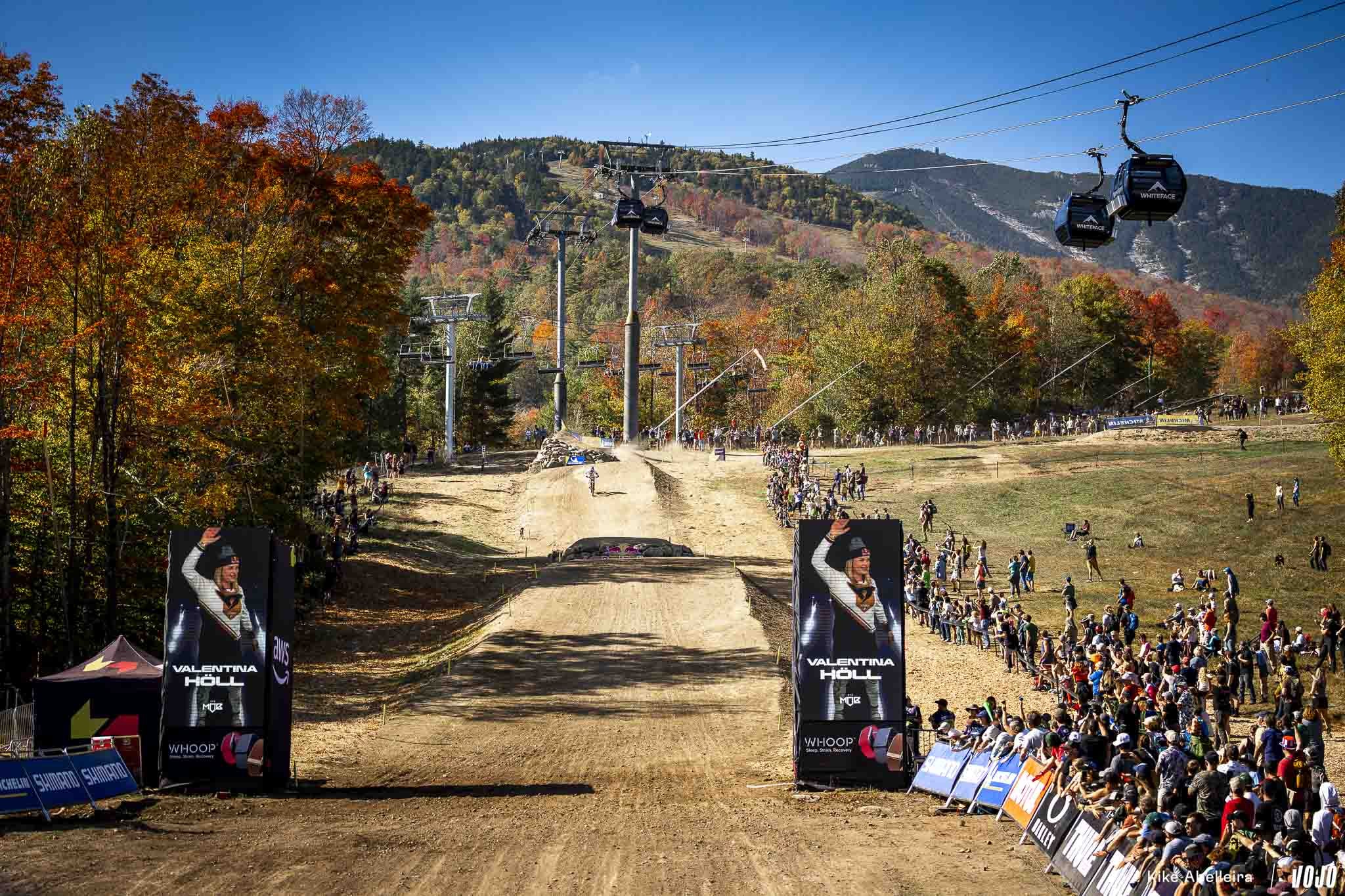 Pour sa deuxième année à accueillir la coupe du monde de VTT, Lake Placid introduisait pour la première fois la descente à son programme. Résultat : un parcours de deux kilomètres sur les flancs de Whiteface Mountain, caractérisé par un sol meuble, de gros trous et des blocs aussi traîtres que spectaculaires. Le tout dans le cadre majestueux des Adirondacks, et sous un ciel changeant typique de l’automne américain. Un terrain pour pilotes complets, où précision, sang-froid et gestion du risque faisaient loi.