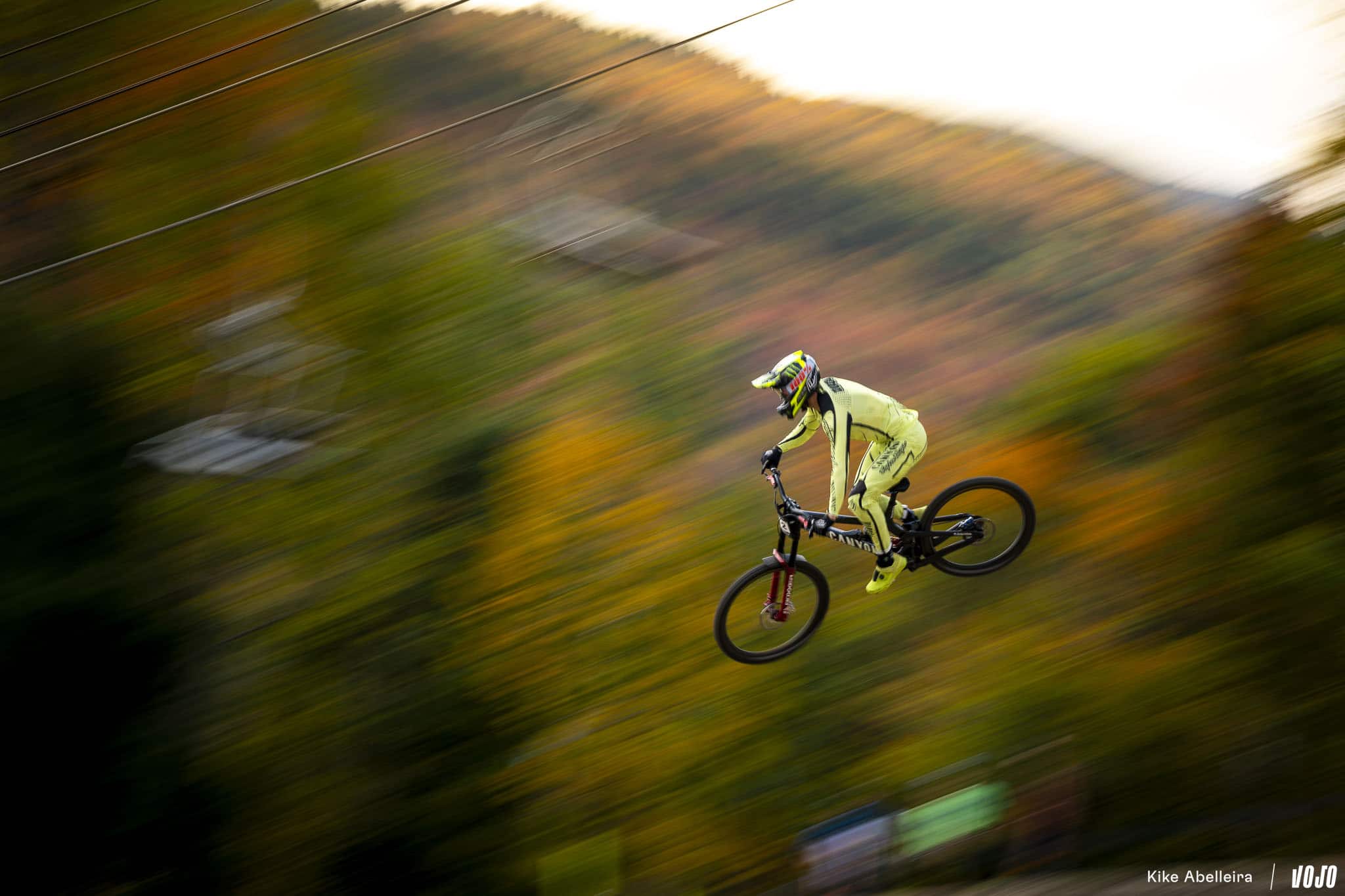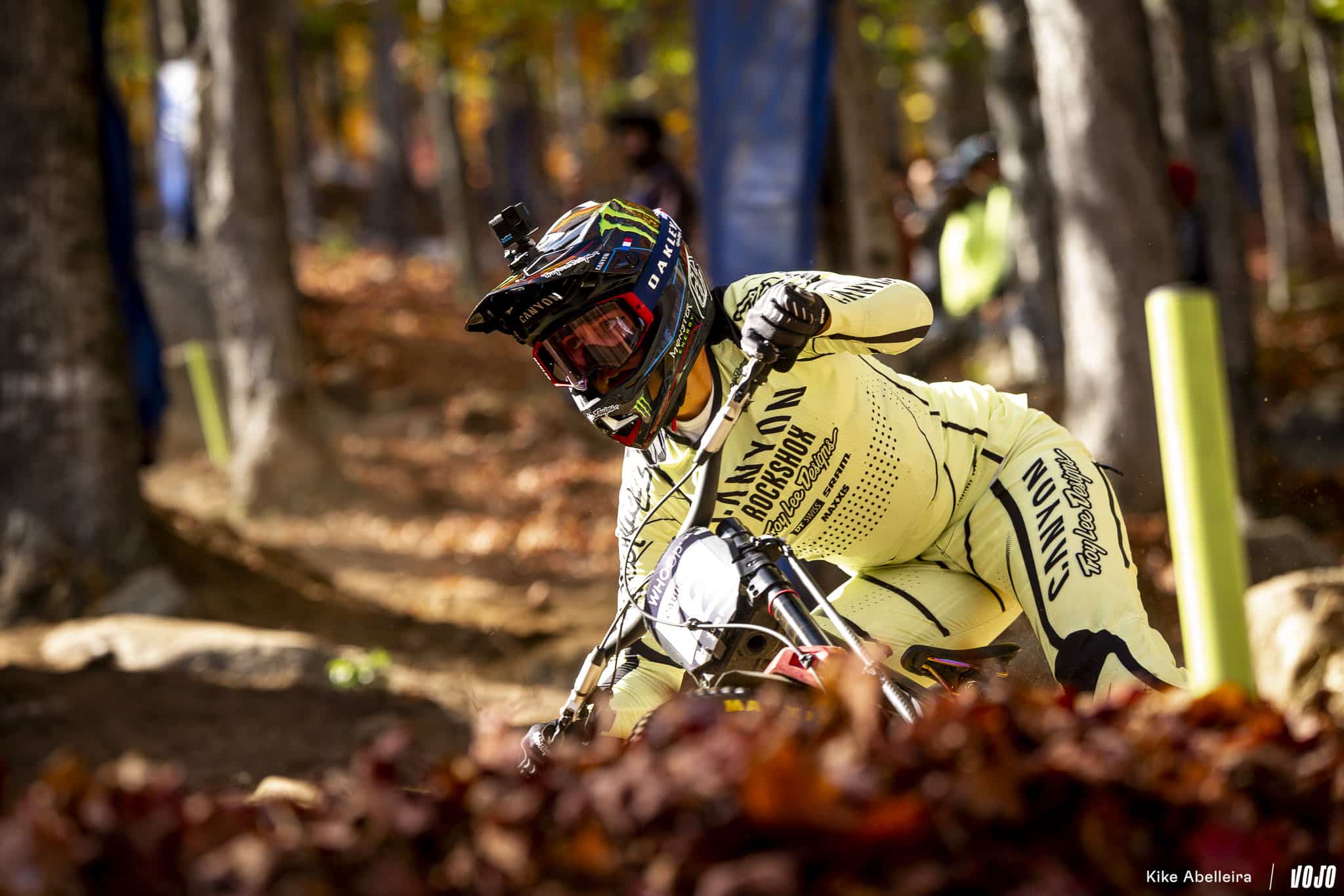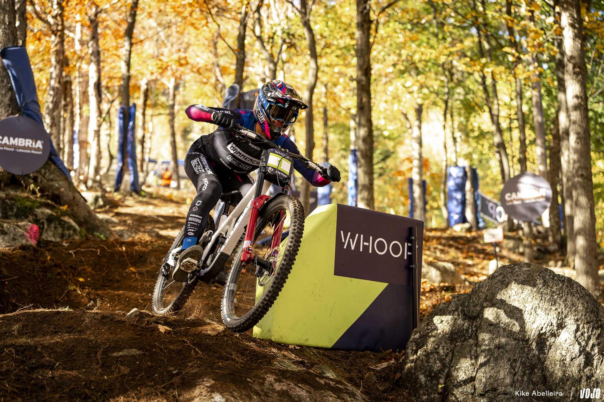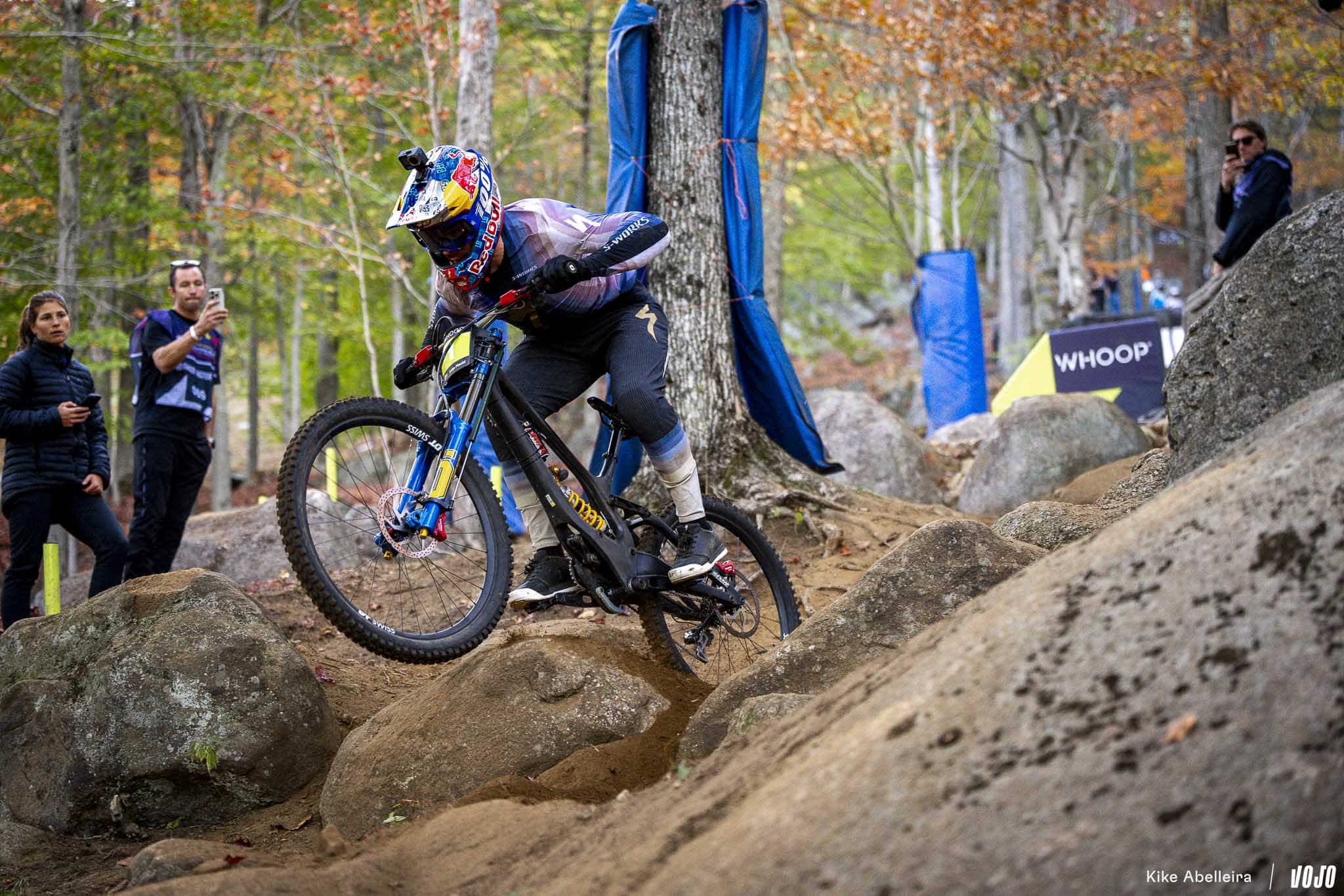 Pour sa deuxième année à accueillir la coupe du monde de VTT, Lake Placid introduisait pour la première fois la descente à son programme. Résultat : un parcours de deux kilomètres sur les flancs de Whiteface Mountain, caractérisé par un sol meuble, de gros trous et des blocs aussi traîtres que spectaculaires. Le tout dans le cadre majestueux des Adirondacks, et sous un ciel changeant typique de l’automne américain. Un terrain pour pilotes complets, où précision, sang-froid et gestion du risque faisaient loi.