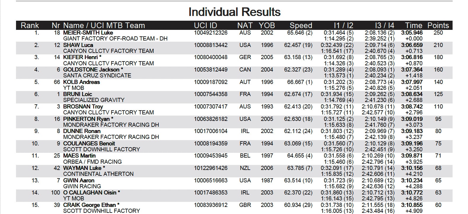 « Je visais un top 5, pas la victoire ! Ce tracé me convenait bien, un peu comme ceux qu’on roule en Australie : physique, rapide, et piégeux. J’ai tout donné sur le bas, et c’est passé », raconte Meier-Smith, encore incrédule sur la ligne d’arrivée.