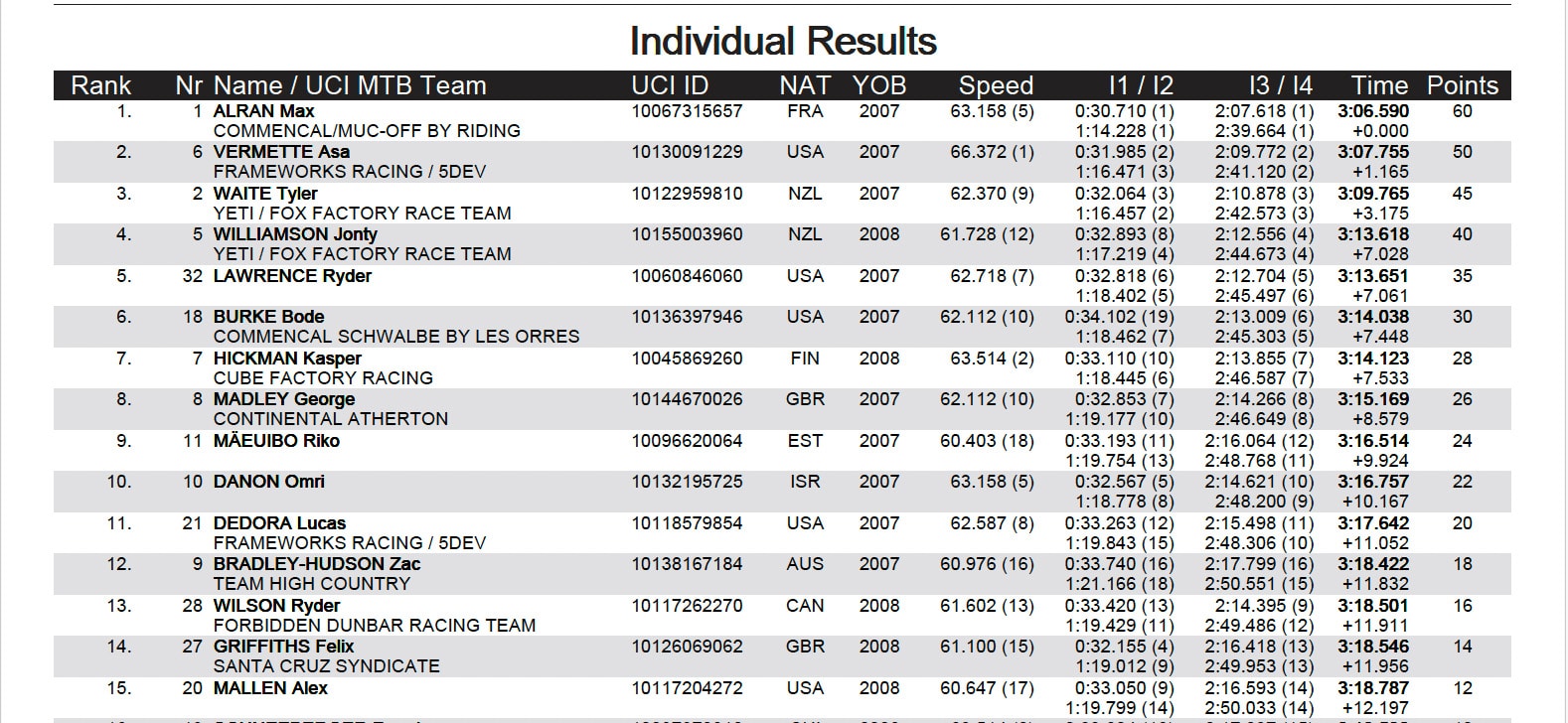 Le jeune prodige de Riding Addiction a dû s’employer face à un Asa Vermette très en forme à domicile, mais s’impose finalement avec une seconde d’avance. Le podium est complété par le Néo-Zélandais Tyler Waite (Yeti/Fox Factory).