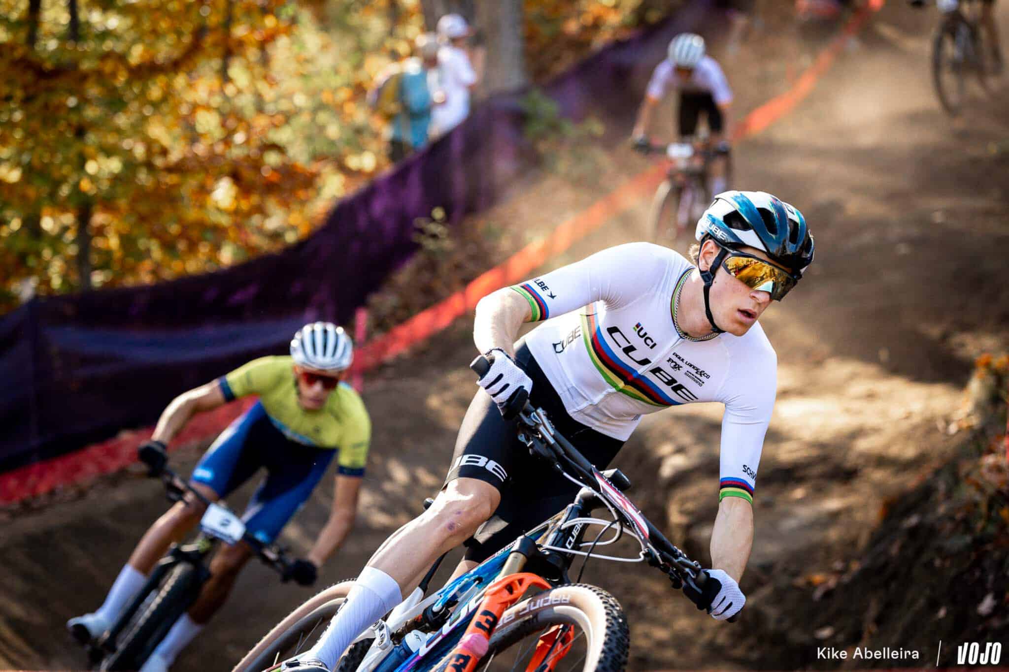 Déjà titré avant même d’arriver à Lake Placid, Finn Treudler (Cube Factory Racing) n’a pas levé le pied pour autant. Après avoir remporté le Short Track, le Suisse a de nouveau dominé les débats sur le XCO. Rapidement, il s’isole en tête avec Thibaut François Baudry (Canyon CLLCTV XCO) et Paul Schehl (Lexware), avant que ce dernier ne parte à la faute.