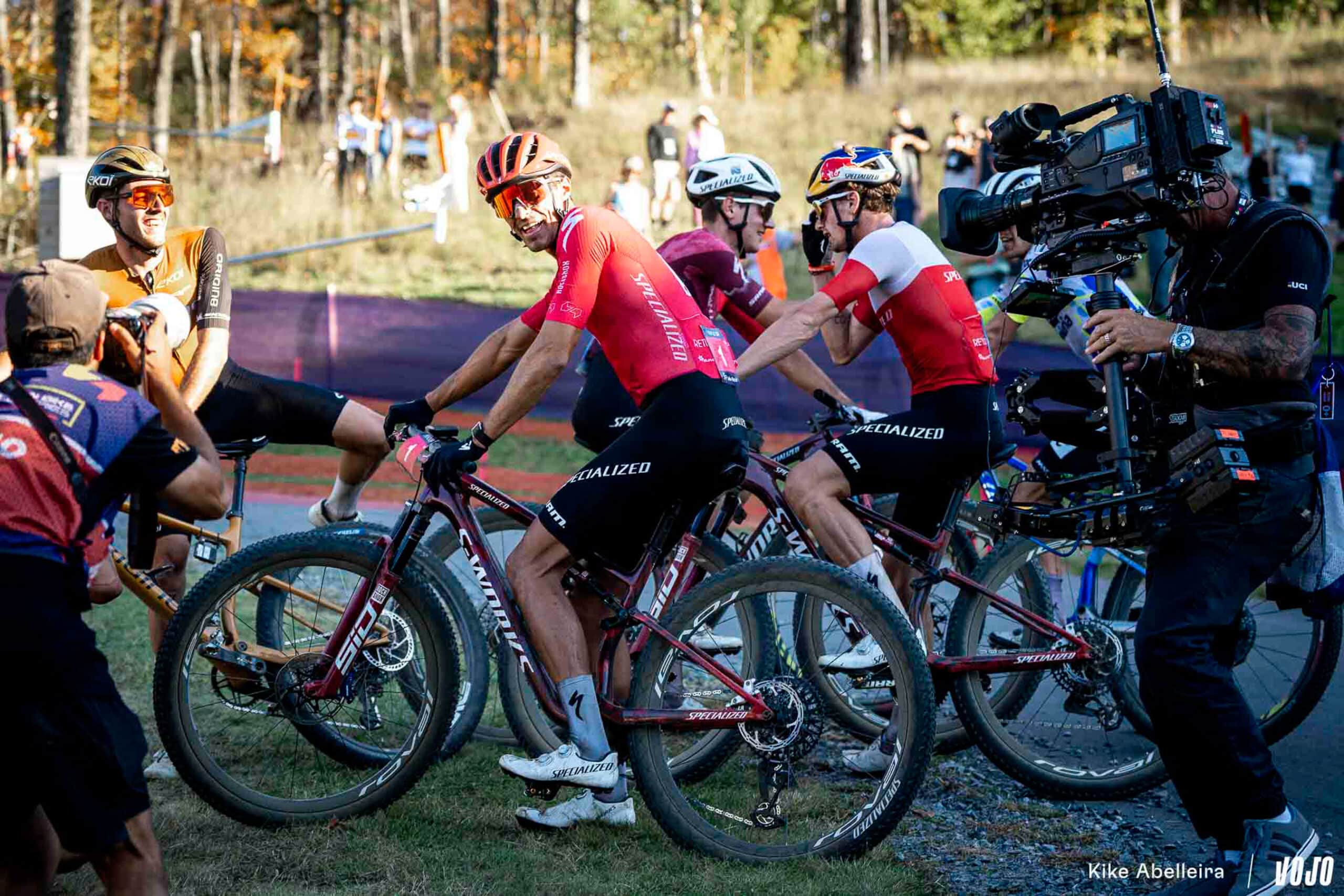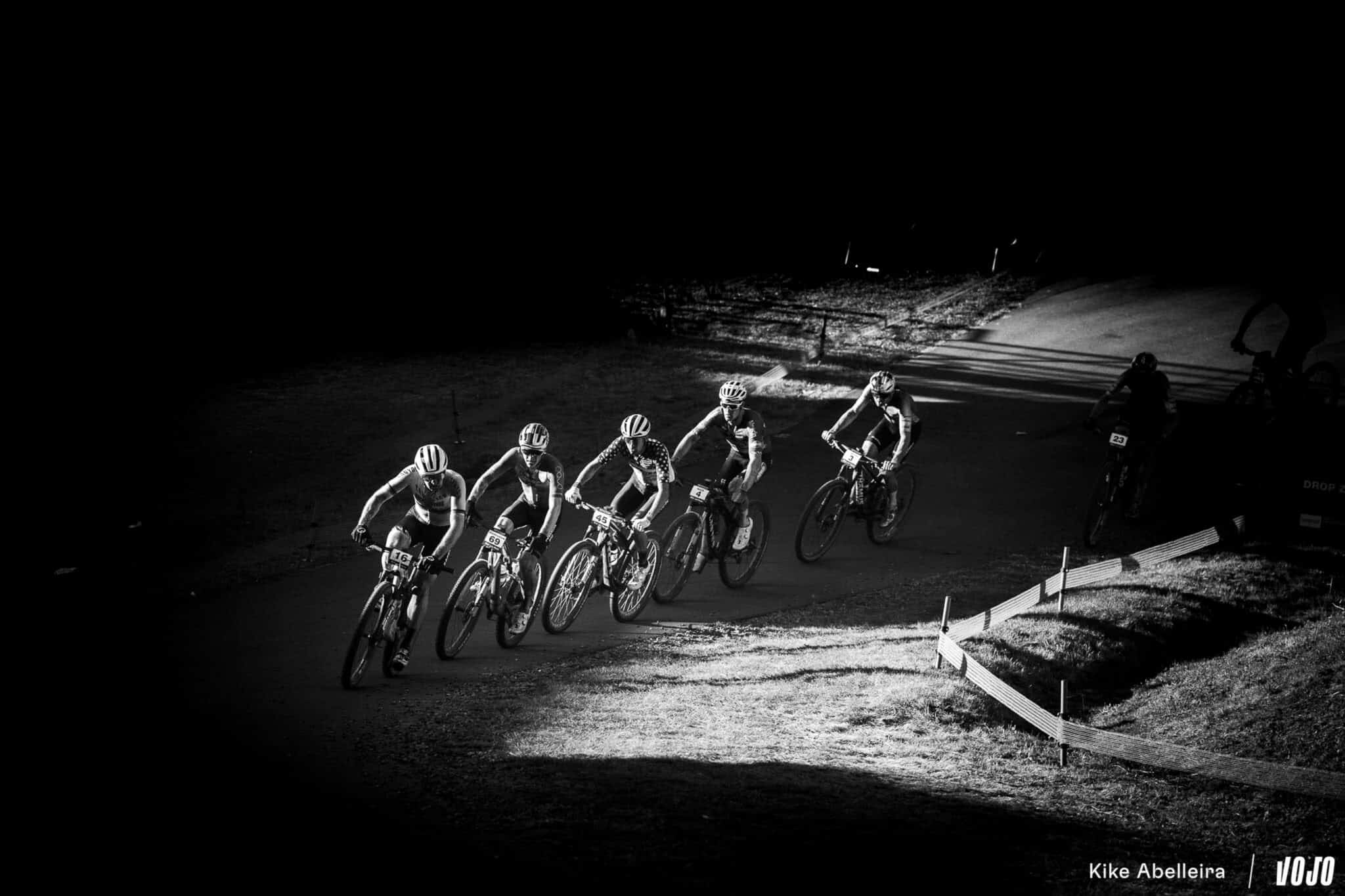 Dès le départ, le peloton s’étire dans la montée menant au pierrier. Ceux partis trop loin de l’avant se voient forcés de poser pied à terre — Charlie Aldridge (Cannondale Factory Racing), victime d’un embouteillage, chute de la 5e à la 24e place dès la première boucle. Devant, l’armada Specialized – Christopher Blevins, Adrien Boichis et Victor Koretzky – impose son tempo.